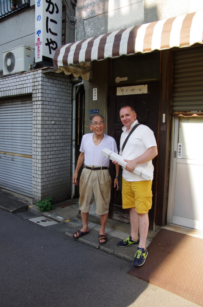 Короче, небольшой типичный японский домик в типичном жилом районе Токио. Находим небольшую вывеску с иероглифами Канаяма, звоним в домофон. Отвечает женский голос, дочь объясняет кто мы и чего домогаемся. Нам отвечают - ОК, сейчас Наоми-сан вам откроет. Повезло, все получилось!