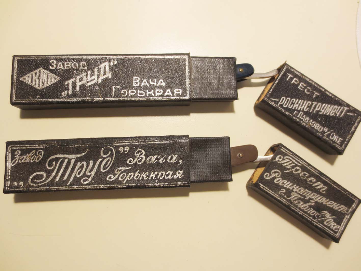 Дальнейшую историю завода "Труд" мы намеренно опускаем, так как производство опасных бритв после 1968 года было прекращено.