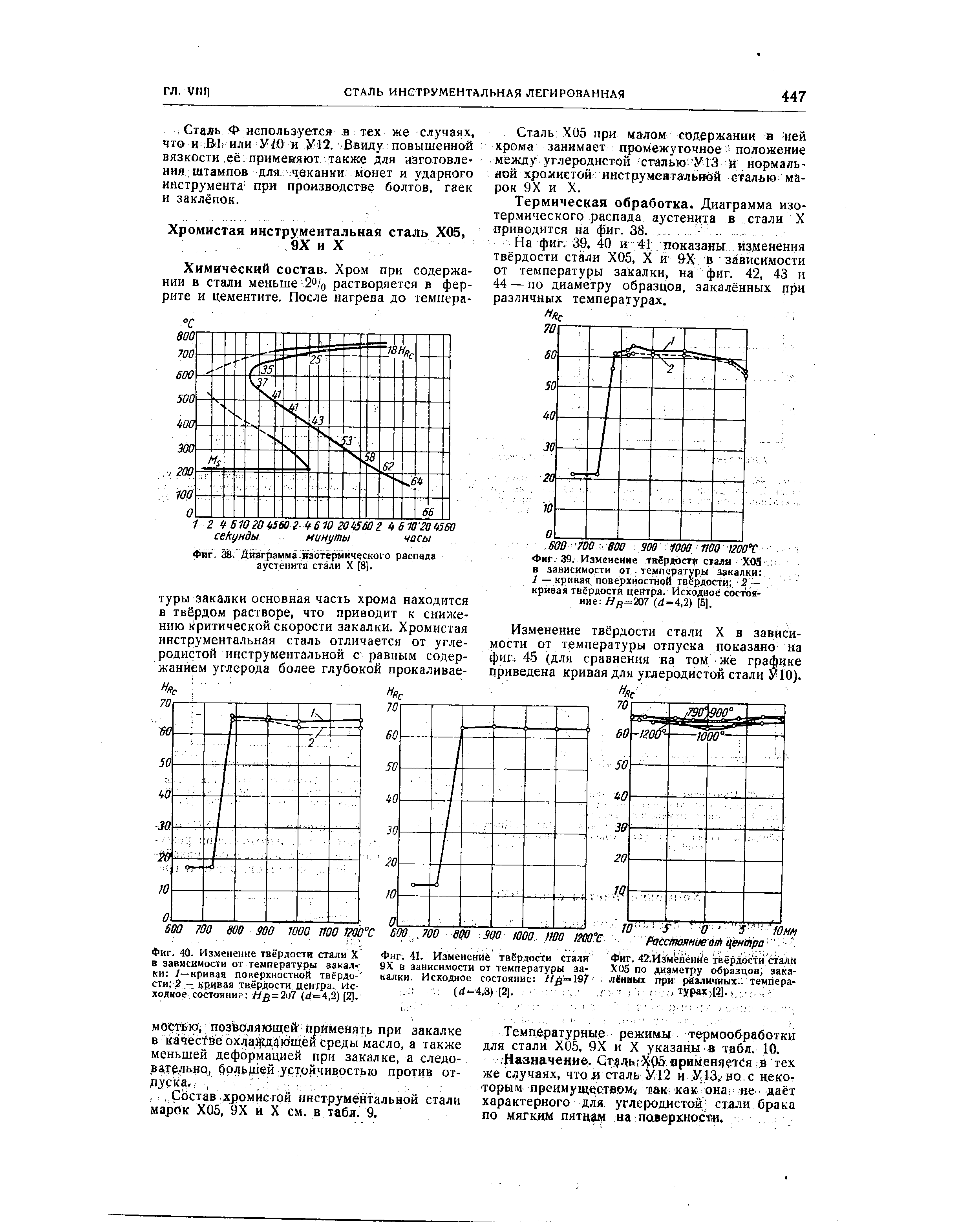 Сталь Х05 при малом содержании в ней хрома занимает промежуточное значение между углеродистой сталью У13 и нормальной хромистой инструментальной сталью марок 9Х и Х.