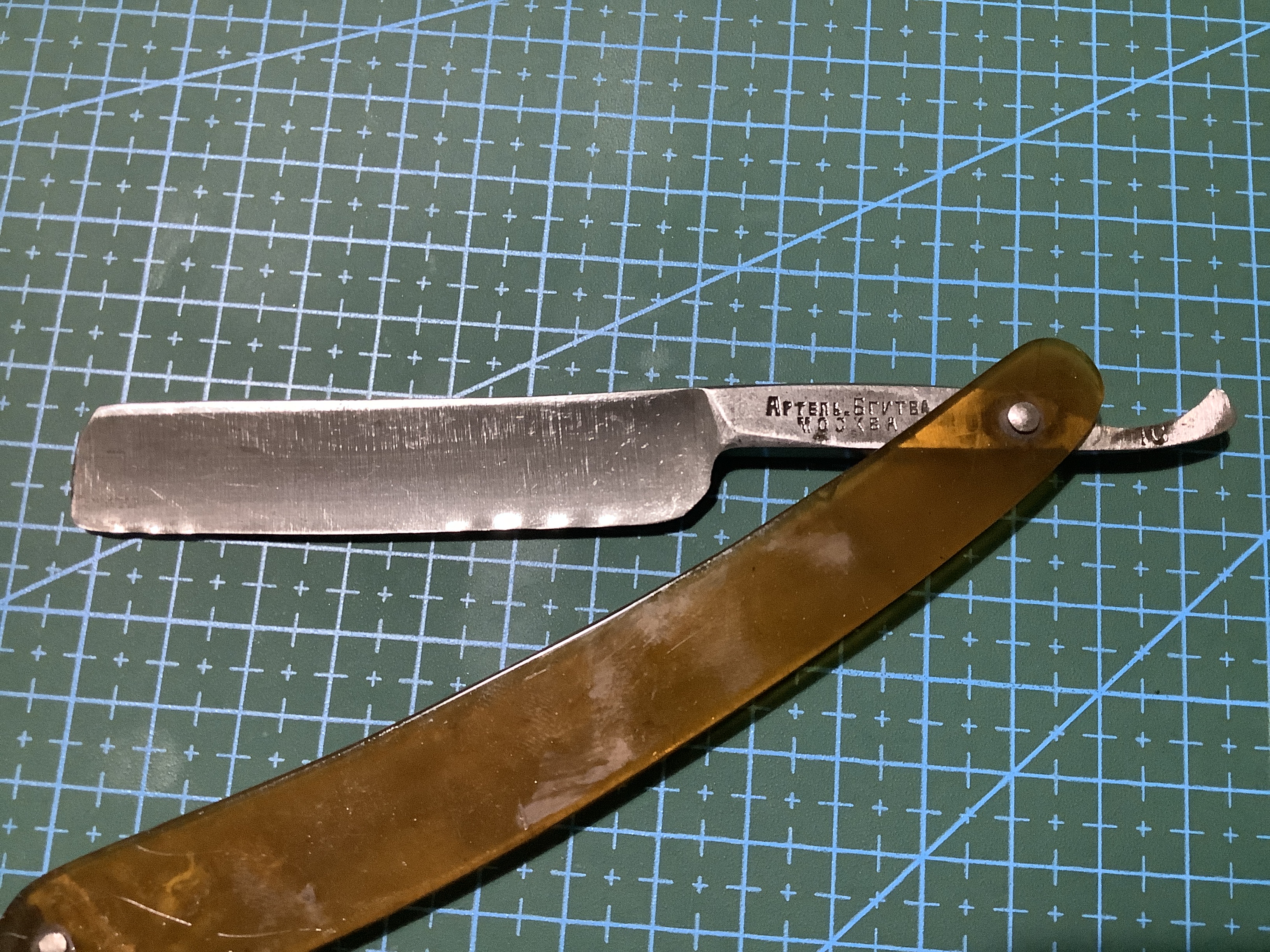 Олег Бритва: Сегодня точил бритву, что за фабрика не понял. На ней надписи "Артбритва Москва" и "1с" (первый сорт).