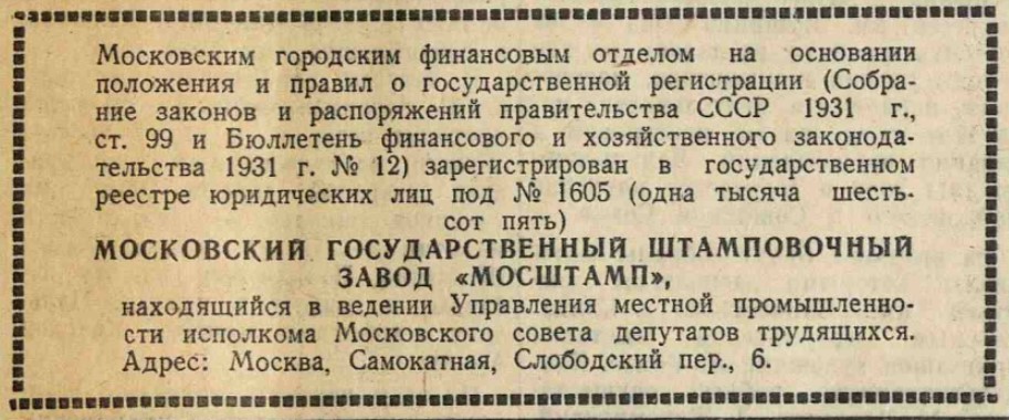 Завод №9 треста МосШтампУважаемый,