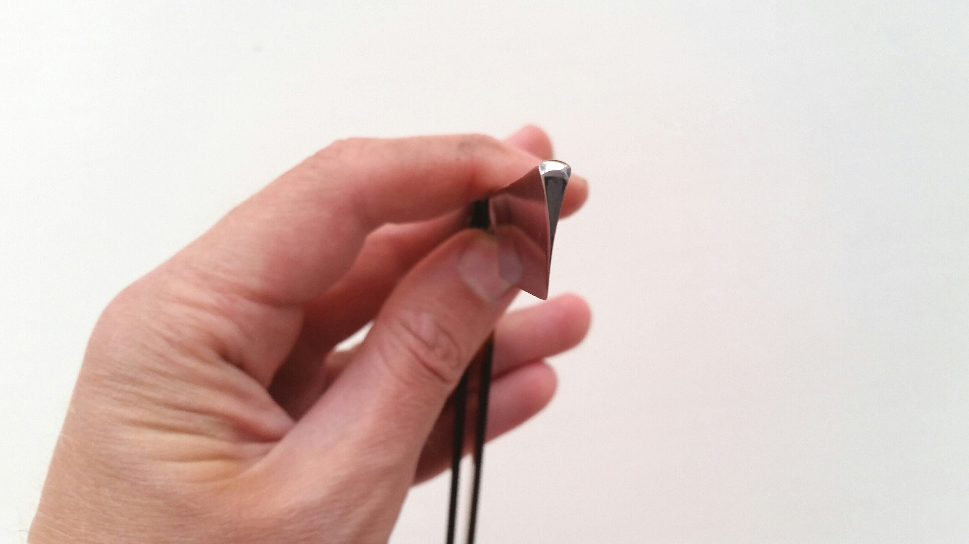 Смущает, что полотно сужается к носу. Завод №9 треста МосШтампanton, да это вроде родная геометрия, там и на спинке прогиб. А вот косяк с осевым есть, к сожалению, да. Не закусывается и не болтается, но закрывается прямо в притирочку к правой стороне, нужно соблюдать аккуратность при закрытии.