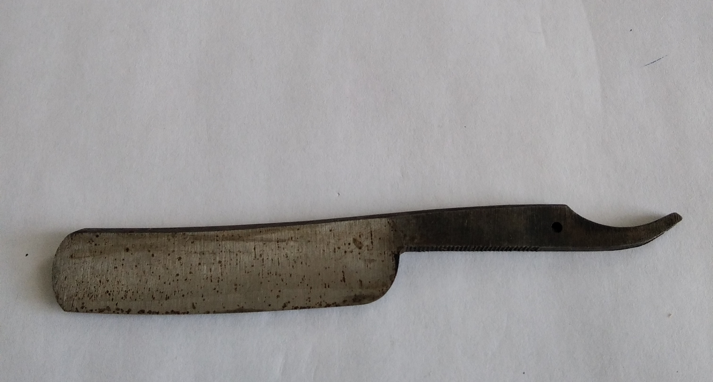 Заготовка бритвы с зачищенной спинкой, с просверленным отверстием на сорочке, отфрезерованной выемкой
