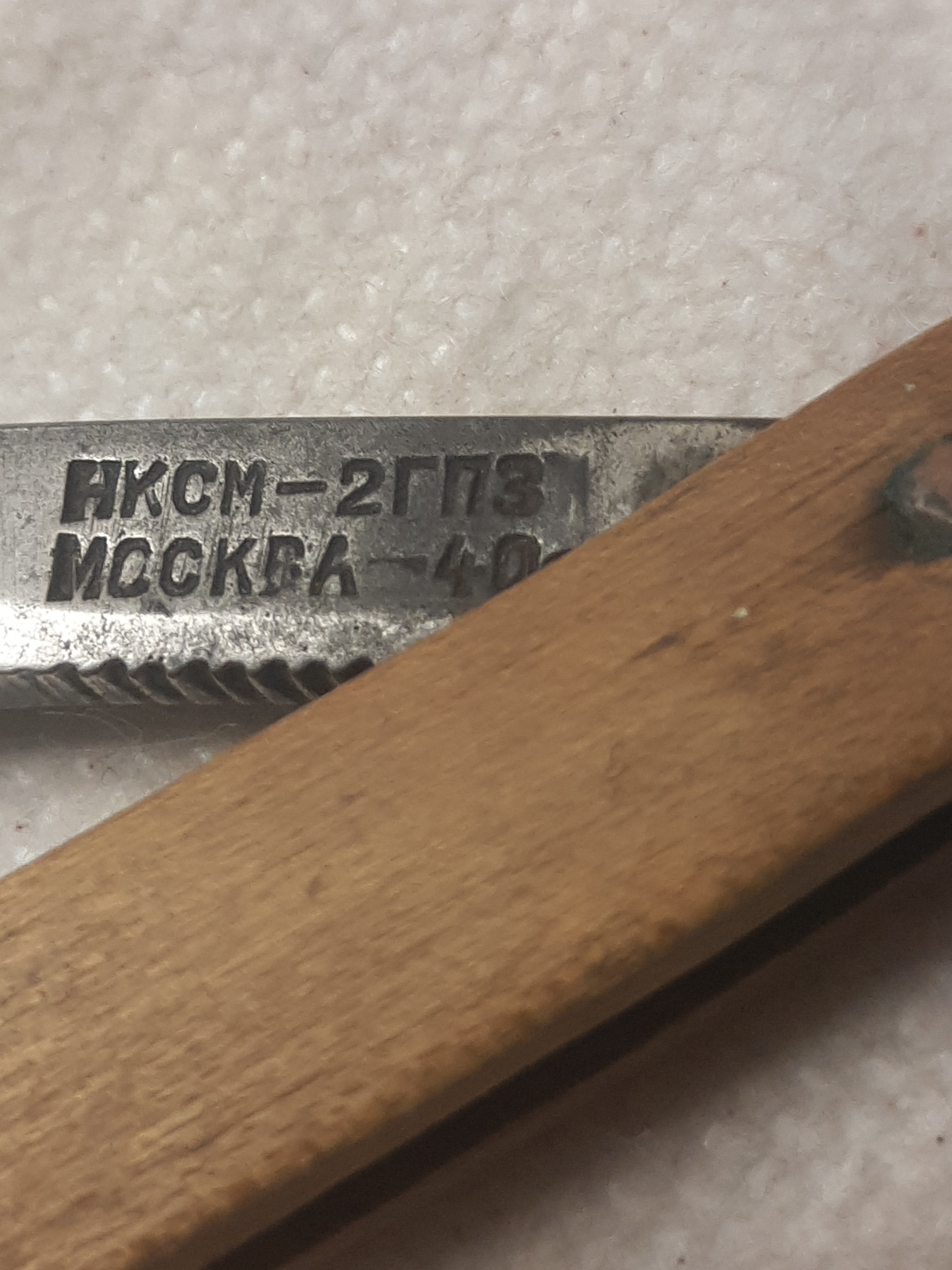 А на бритве 1939 года кто-то вообще его сточил... Из заметки в Рабочей Москве, ясно сколько было выпущено бритв в 1938 году ( синяя коробочка НКМ СССР). Примерно 128 тысяч (верхняя оценка)