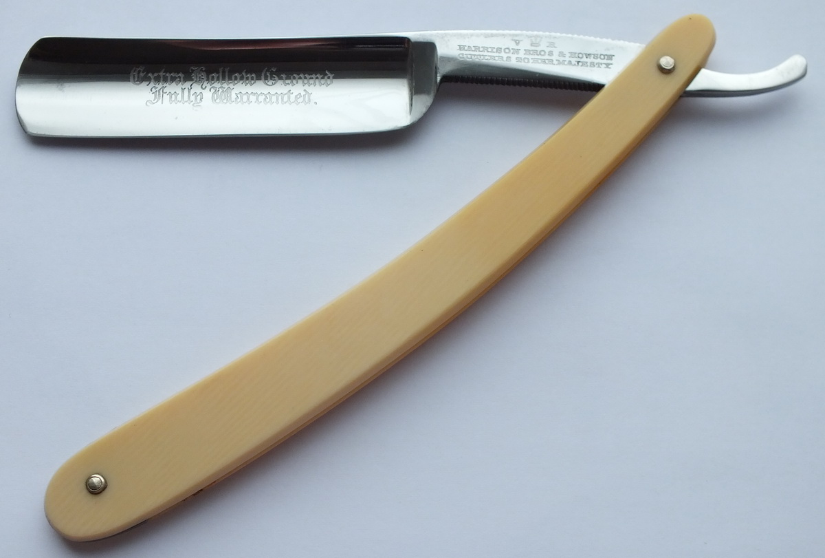 "Среда" из недельного набора Harrison Bros & Howson Cutlers Toher Majesty. За минимум 113 лет очень неплохо сохранилась. Девственница. Я точил впервые. Оправа целлюлоид, клин олово, пины нейзильбер. Клинок 6/8 , вогнутость Extra Hollow Ground, размеры145х21х5,2 мм. Бритва заточена и готова к бритью. Бреет с шипением разъяренной гюрзы, очень мягко и чисто. Продано Harrison Show