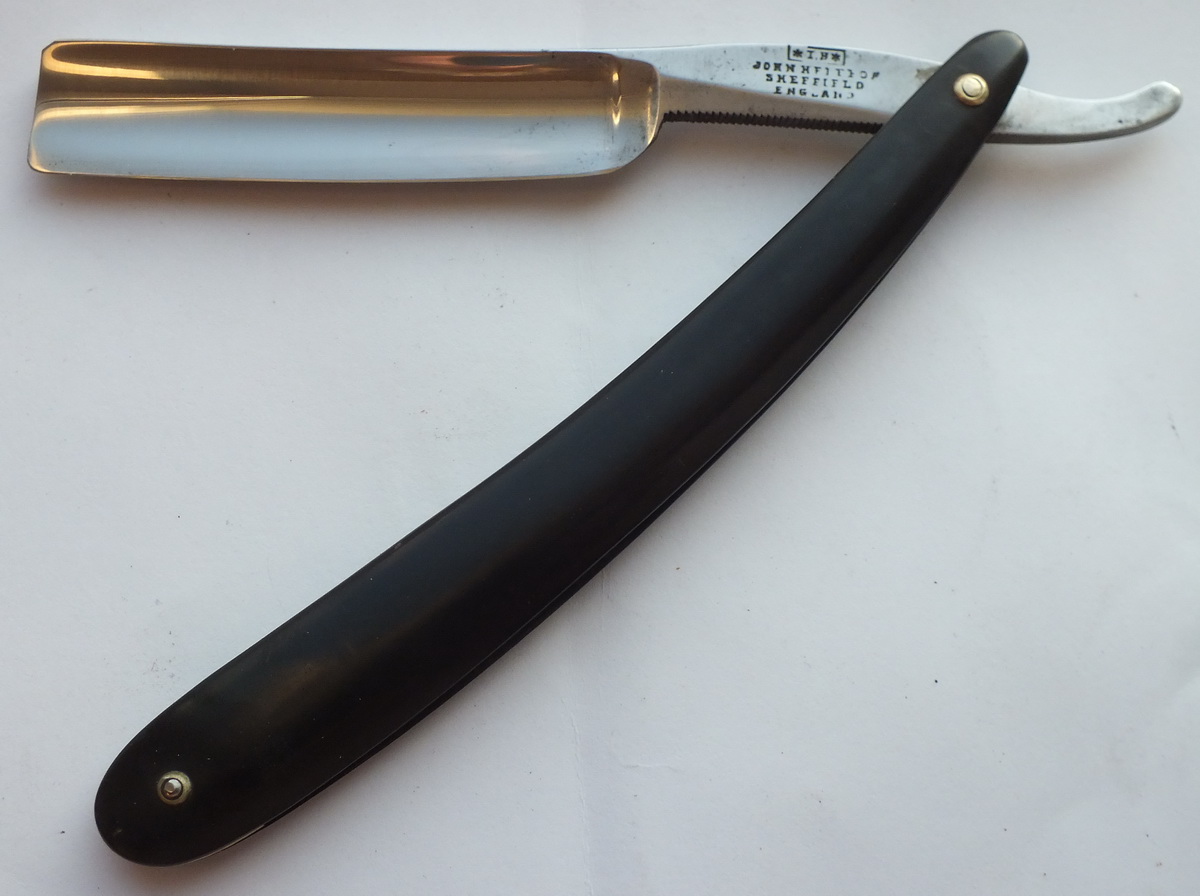 Оправа эбонит. Клинок 5/8, вогнутость полная, размеры 142х17,5х6,2 мм. Бритва заточена и готова к бритью. ПРОДАНО John Heiffor Show