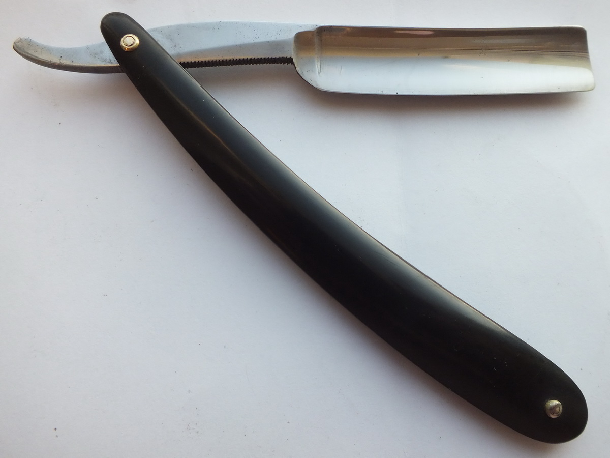 Инфа: http://www.daniel-peres.de/unternehmen_home.html#" onclick="window.open(this.href);return false; , http://oldrazor.ru/books/GermanCutlerma ... 1-1945.pdf" onclick="window.open(this.href);return false; стр.31 Оправа пластик. Клинок 5/8, вогнутость полная, размер 146х18х6 мм. Бритва заточена и готова к бритью. Продано Barrel Show