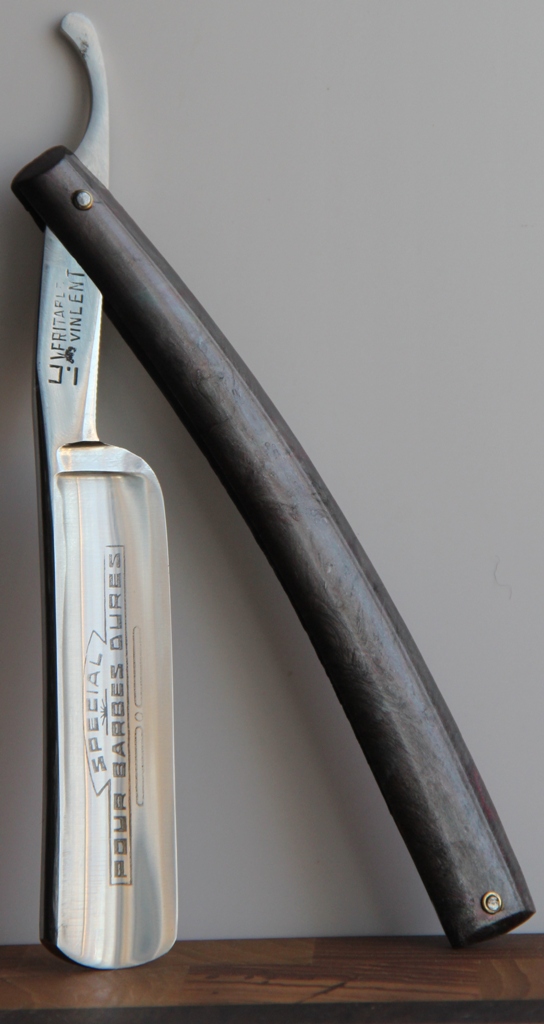 Ручку из натурального рога забрал от старого француза 19 века, почистил полотно, но без фанатизма. На лезвии остались несколько каверн( на фото видно), но это никоим образом не влияет на качество бритья. Сталь чистая, кромка чистая, без проблем. Идеальная геометрия.Бритва заточена впервые, проходит тест на рез волоса. Бритьё мягкое и комфортное.Удобный вариант для новичка и по цене-качеству.