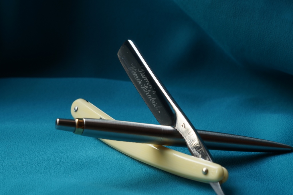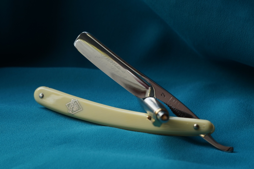 Made in Germany, from Best Puma Steel. Параметры: Размер 9/16 ( 14,3мм) Ручка -целлулоид Бритва без реставрации, легкая полировка и заточка. РК толщиной в ус Пумы. Все нюансы видны на фото, в жизни они не так заметны, но рука не поднялась их убирать, т.к. не увидел в этом необходимости и для её возраста это простительно. Сталь и геометрия бритвы выше всяческих похвал, шикарный рез. Продана киска Puma №7 Show
