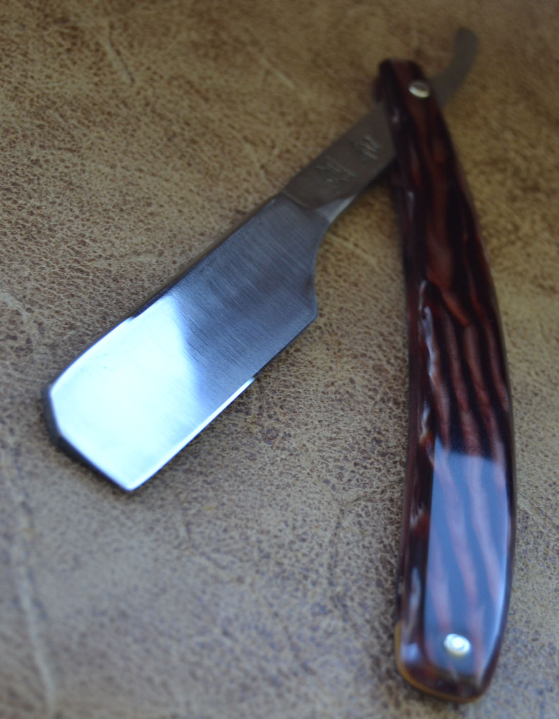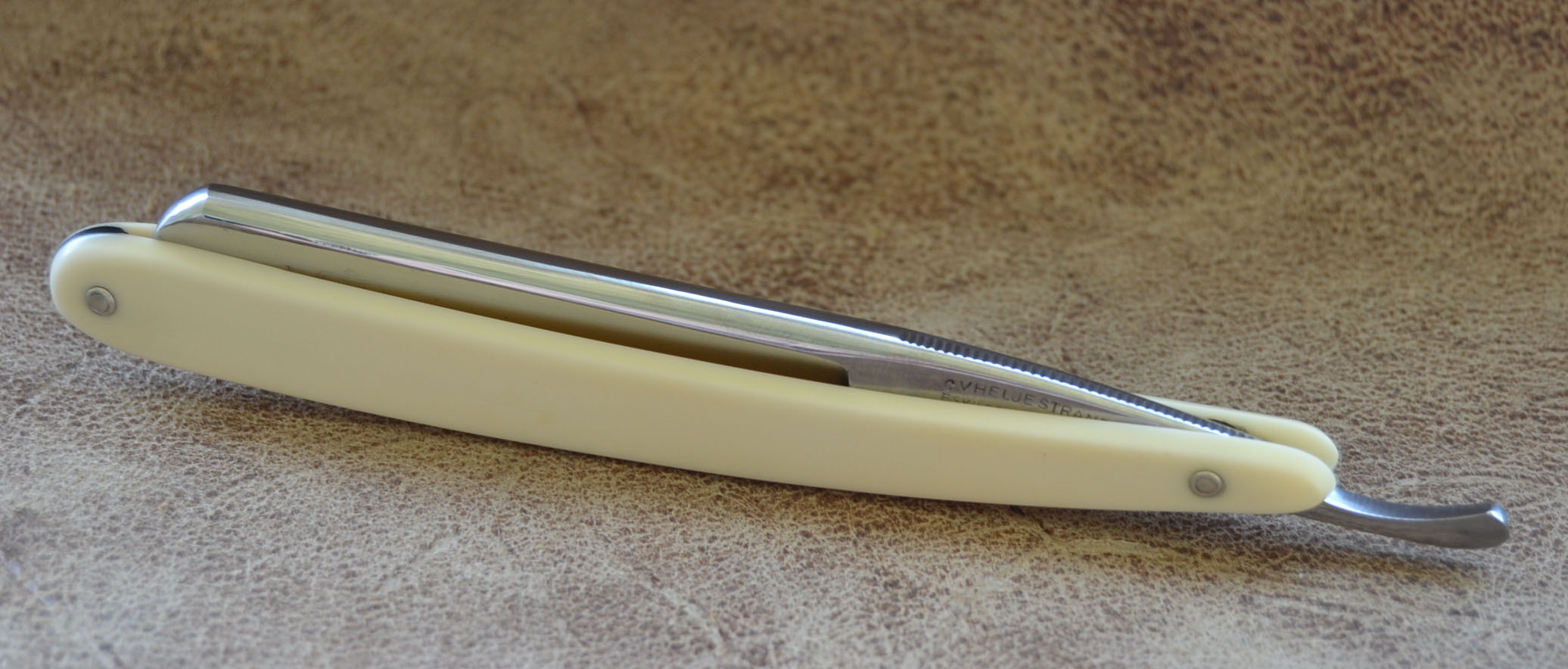 Германия, Золинген. Ширина 6/8, вогнутость полная, трехпиновая рукоять из целлулоида. Неиспользованная бритва после небольших реставрационных работ. Заточена и готова к бритью. Продано Spoiler Show