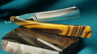 Состояние близкое к идеальному, в использовании не была, точилась мною впервые. Ширина полотна 15 мм, ручка целлулоид. Бритва заточена и готова к бритью, прекрасно подойдет начинающему , т.к. легенькая и маневренная. Продано Omega Show
