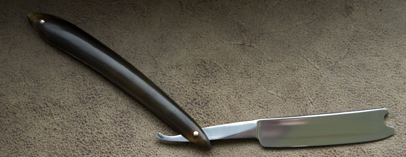 Вогнутость - клин, рукоять из светло -коричневого рога, клинышек - олово. Все родное Ширина 6/8. Полотно очень интересной формы, выполнено из Silver Steel, бритва после небольшой чистки - следов времени практически не имела, (фото ДО могу отправить в ЛС) в пользовании не была и не точилась. Рукоять из рога в отличном состоянии, закрывается ровно и плотно. Заточена, готова к бритью. Продано Spoiler Show