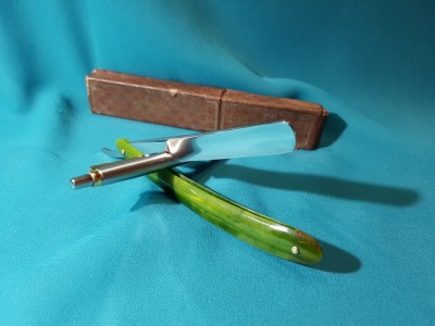 Параметры: ширина 6/8 (19мм) обух 5.2 мм. Ручка из пластика с весьма редким видом фиксации клинка. Состояние: близкое к идеальному, точилась может один раз и то видимо не достаточно, т.к. полотно видно что не пользованное. Возраст бритвы первая четверть 20-го века. Бритва прошла предпродажную подготовку, правильно заточена и готова к бритью. ПС. Данная бритва с такой фиксацией клинка будет удобна для путешествий и командировок, ни когда не откроется случайно, гениальное решение. ПРОДАНО Cintinatus Show