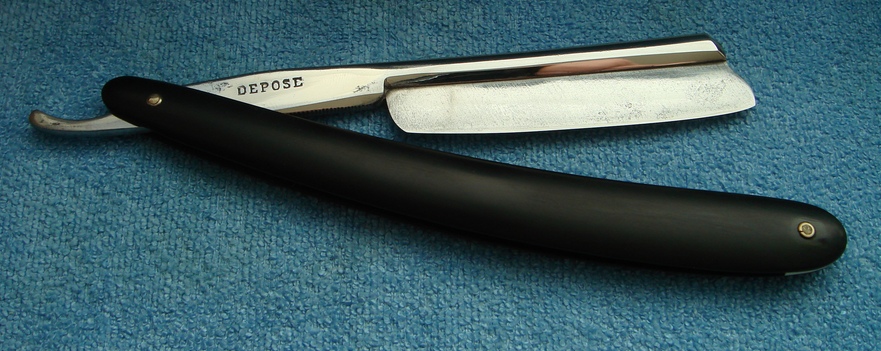 Размер : Длина лезвия 150мм, ширина 21 мм, обух 5/5 мм. Ручка новая сделана мной рог клин олово. бритва массивная с несравненным и присущим французам того времени резом, волос падает при виде бритвы Цена: ПРОДАНО Фото Show