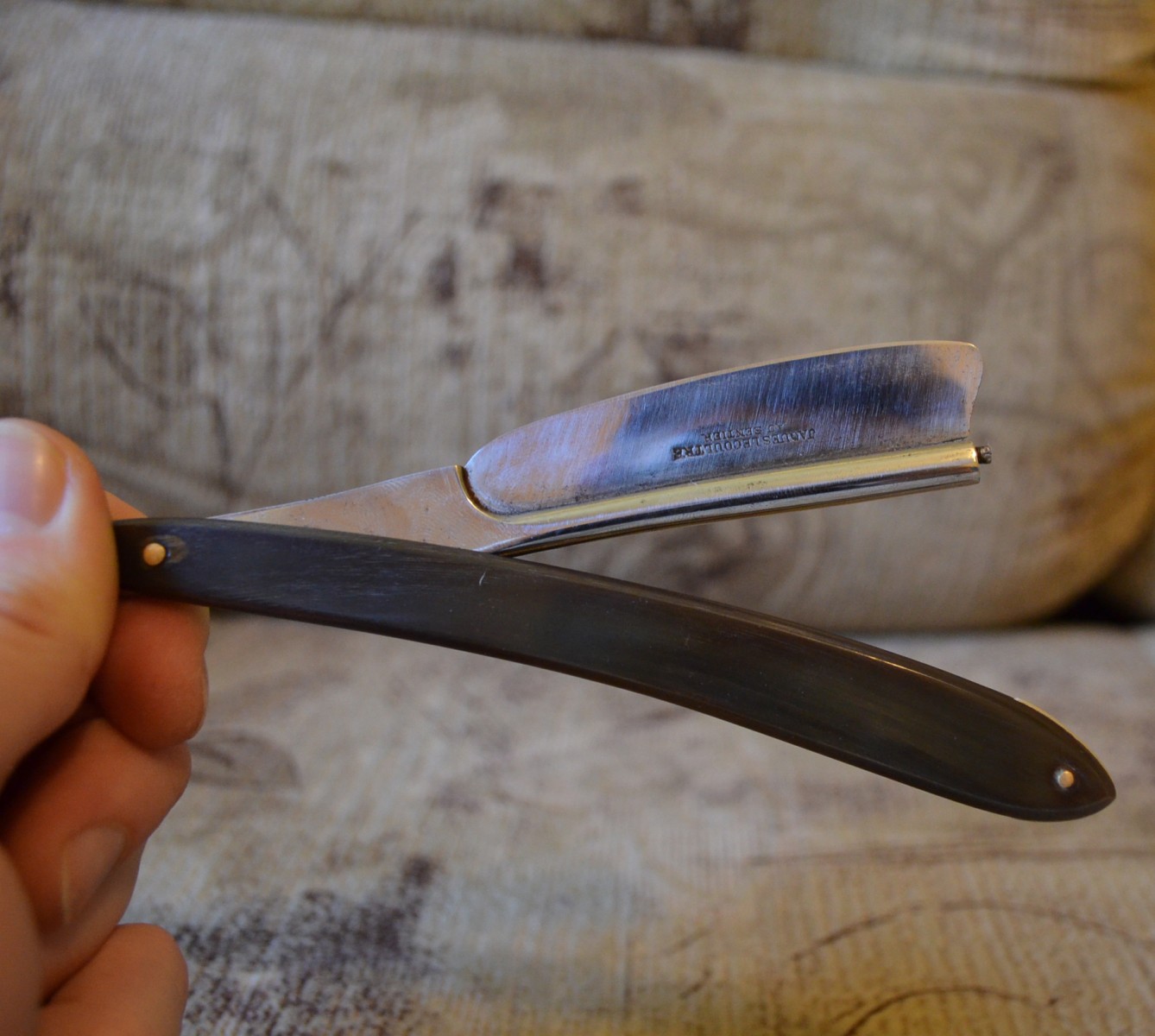 Продаётся от dicarЕсли хотите узкую бритву, рекомендую- англичанка Брукс& Крукс делалась на предприятиях сэра Армстронга и Вайтворта. Начало двадцатого века. По ширине 4/8. (Бритва покупалась у Франса)