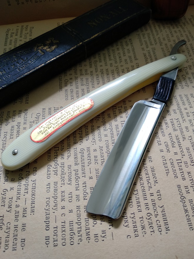 Бритва для Старичка., тот, который давно отбросил стереотипы по поводу ТМ, производителя и т.д. В использовании не была. Была проведена легкая профилактика полотна. Есть мелкие грешки, но они поверхностные.Ручка - целлулоид. Пины родные. 55$. Почта входит в скромную стоимость. Spoiler Show Re: Продаётся от KarangiПривет. Мост 55г с предыдущей странички продан не? Если нет, какая цена?