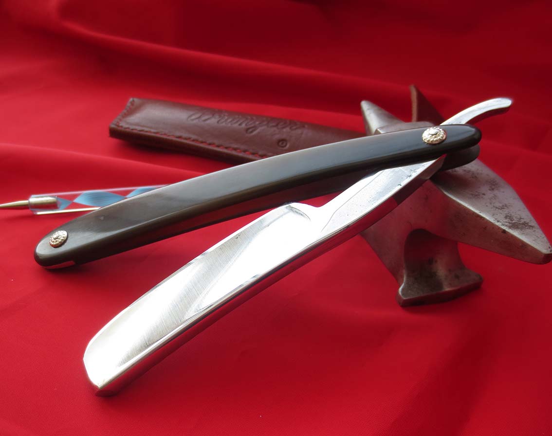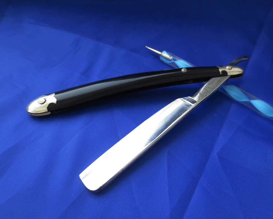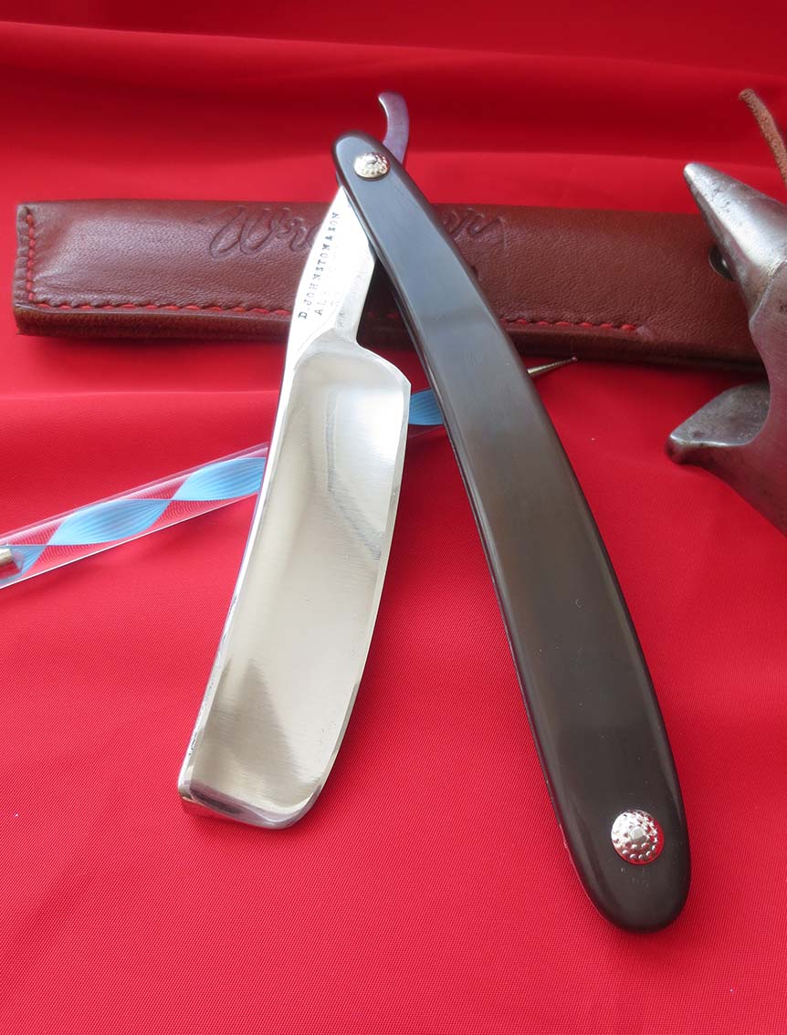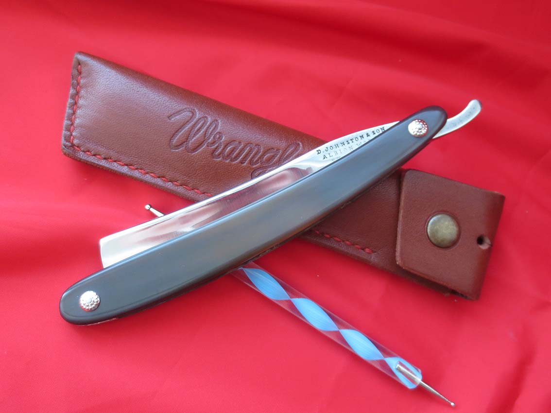 Английская опасная бритва D.Johnston & Son Albion Works Sheffield. Кованая вручную высококачественная ширина клинка - 13/16 дюйма (21мм), новая ручка - рог американского бизона, клинышек - олово, заклёпки - нейзильбер. Инструмент заточен только на натуральных природных камнях и даёт приятное мягкое бритьё. После заточки и теста бритва была продезинфицирована, направлена на чистом кожаном ремне и не использовалась. Очень солидный и увесистый экземпляр не только для человека решившего бриться правильно, но и для желающего обрести весьма статусную вещь. Чехол из натуральной кожи ручной работы для хранения бритвы прилагается. Также есть в наличии всегда ремни для правки бритв, при покупке бритвы и ремня пересылка по РФ за мой счёт. Начинающим подскажу и покажу, как пользоваться и ухаживать за инструментом. Цена "Джонстона" - 15200 рублей. Бесит, когда приходится пользоваться бритвой моложе себя...