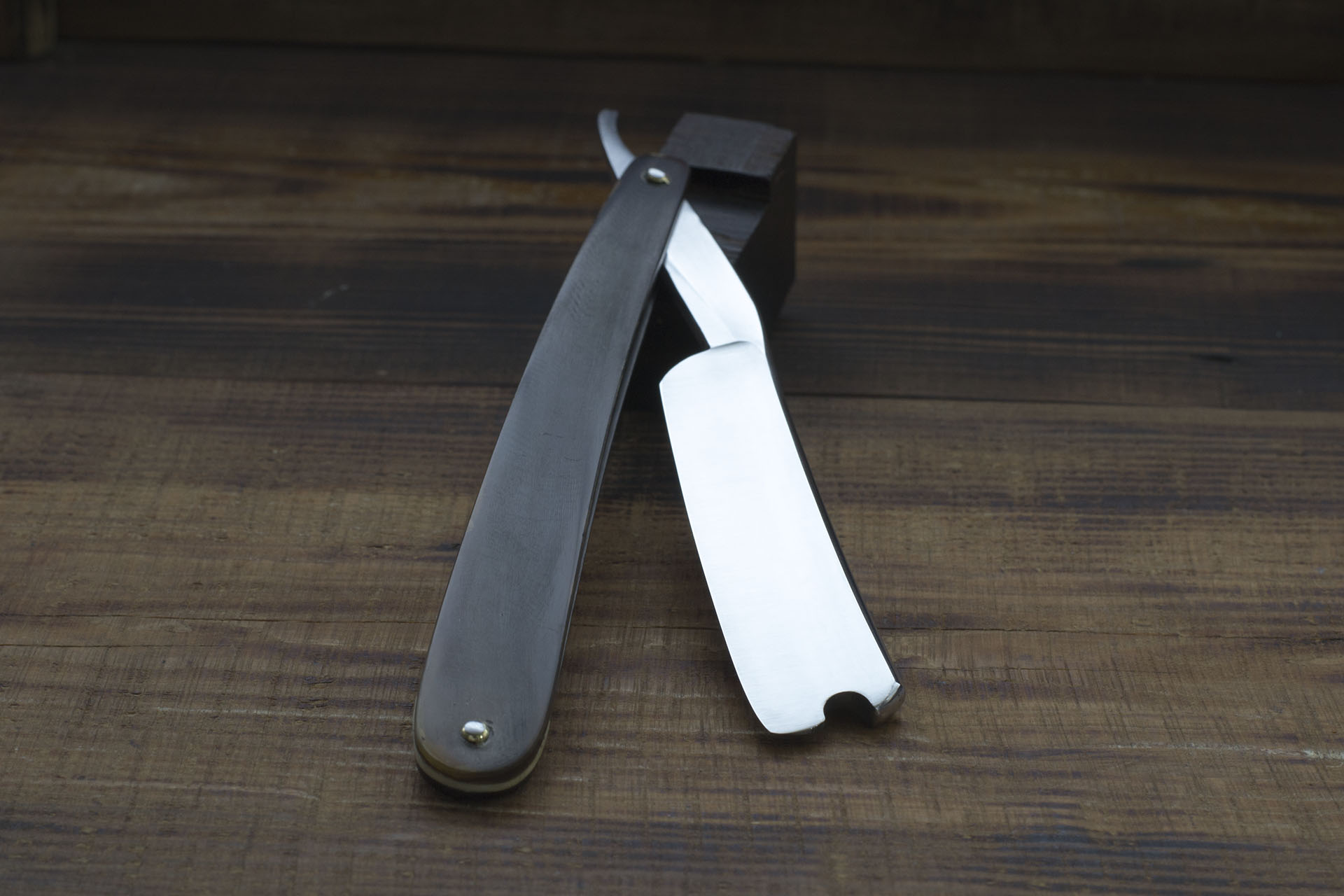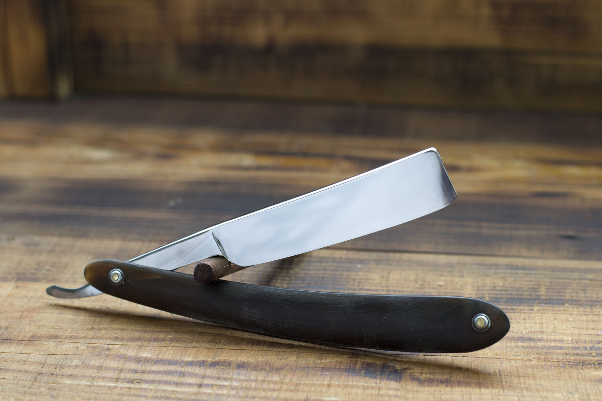 Мощный французский клин от Vincent et Pény, торговой марки I.C. Vincent. Данные бритвы всегда радуют постоянством качества и оригинальной формой полотна, присущей бритвам старой Франции. При реставрации удалось полностью сохранить все оригинальные атрибуты, плоскую роговую рукоять, костяной клинышек и конусные латунные шайбы, встречающиеся лишь на антикварных французских бритвах. Максимальная ширина полотна 22 мм (7/8), массивный обух плавно расширяется к носику, достигая ширины в 6 мм., отличная геометрия, фаска режущей кромки тонкая и равномерная. Бритва изготовлена из качественной углеродистой стали, на мой взгляд одной их лучших. Полотно имеет легкую улыбку и парикмахерский вырез, деталь, делающая бритву гораздо более привлекательной внешне. Так же к достоинствам полотна можно отнести глубокое ударное клеймо на эрле. Очень часто бритвы марки I.C. Vincent имеют неглубокое или неравномерное клеймо, которое частично утрачивалось еще при первичной шлифовке полотна на фабрике. Ориентировочно, бритва изготовлена во второй половине 19 века. Заточена и готова к бритью. Продано vincent Show