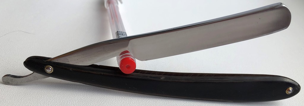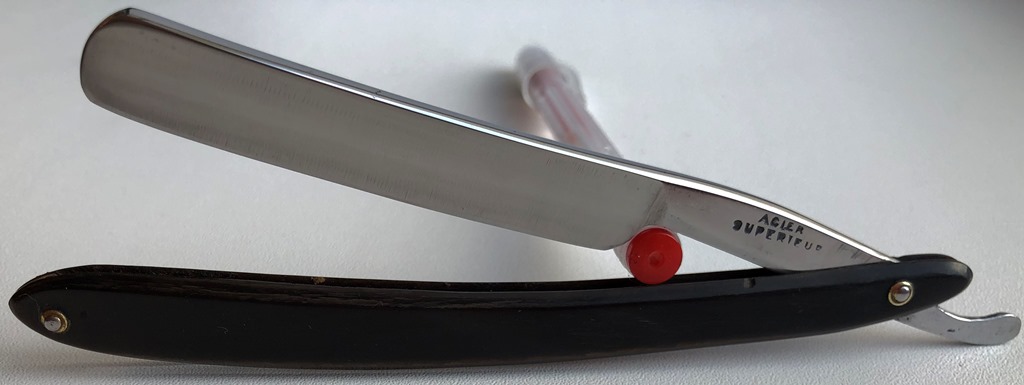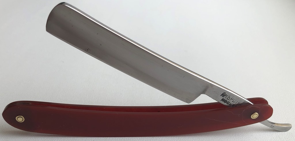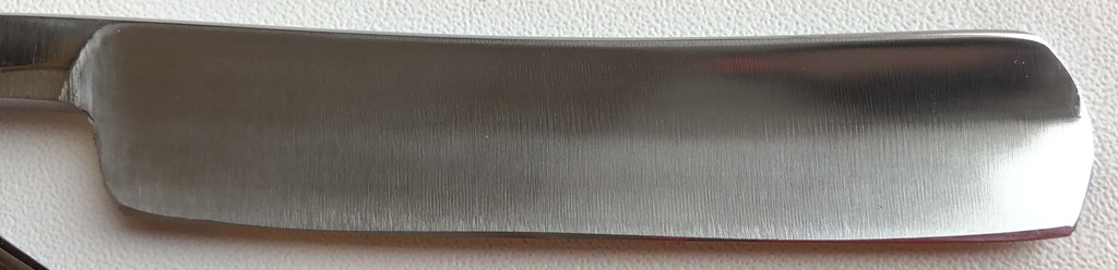 Бритва в прекрасном состоянии. Разобрал, немного освежил металл и снова собрал, сохранив родные пины.Следов активного пользования не заметил. Сталь и кромка чистые, без видимых дефектов.Идеальная геометрия полотна.
