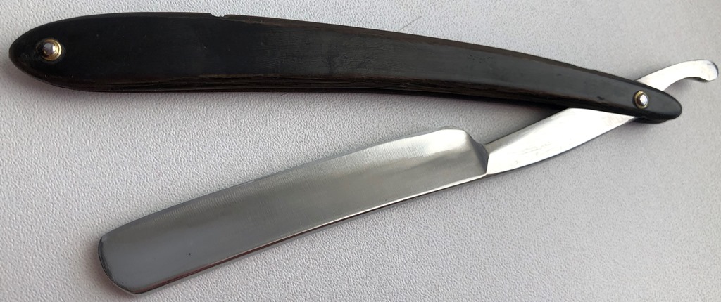 Бритва в очень хорошем состоянии , для своих лет.Мной не разбиралась, а если и разбиралась когда то, то очень давно, так как таких пинов сейчас не делают.Не уточена и имеет чуть заметные следы пользования.Сталь и кромка чистые, без дефектов.Родная роговая ручка также , в очень хорошем состоянии. Бритва миниатюрная, хотя достаточно увесистая, за счет своей формы лезвия. Подойдет не только для бритья, но и для коррекции усов и бороды.Можно порекомендовать опытным пользователям в качестве ещё одной в коллекцию, тем более вариант недорогой, но приятный во всех отношениях. Заточена и готова к бритью.