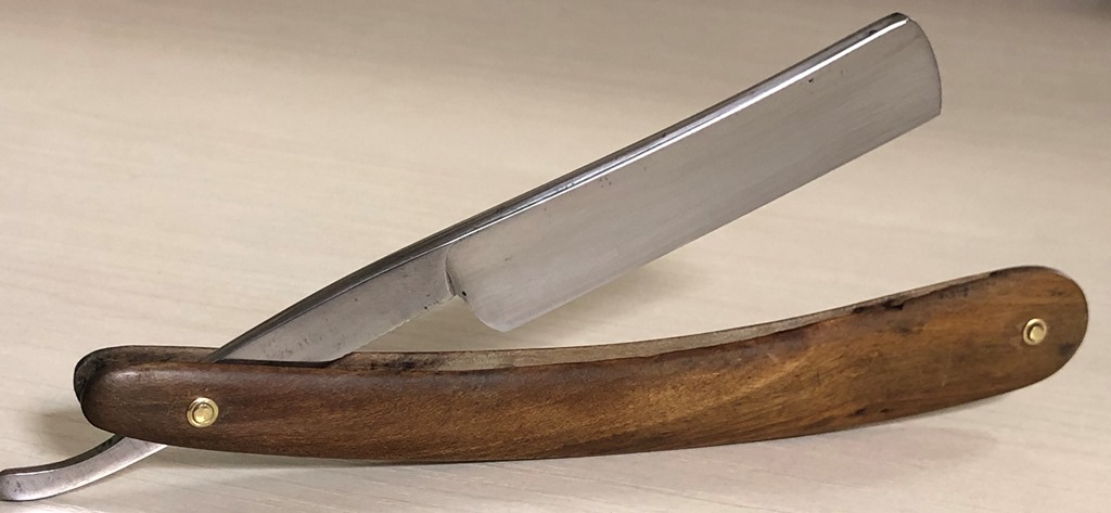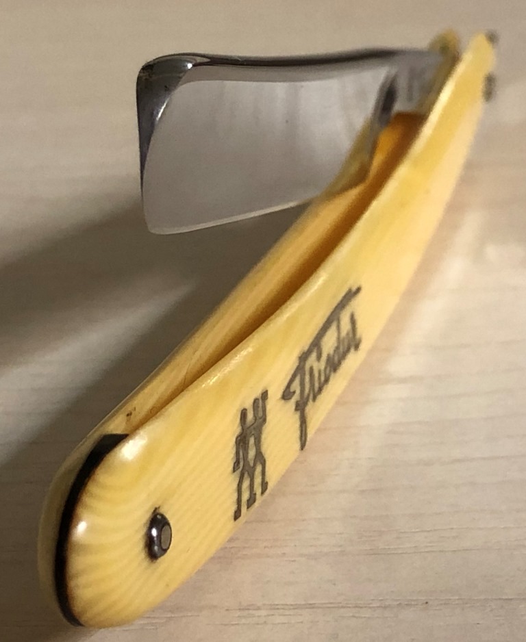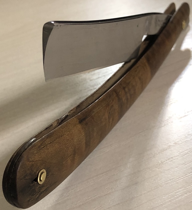 Ширина полотна-17.5 мм Толщина обушка-4.5 мм Форма лезвия-полная вогнутость. Углеродистая сталь. Бритва непользованная, но пришлось разобрать и немного освежить полотно от патины. Пины поменял на немецкие втулки, с добавлением внутренних шайб, для порядка.Сталь чистая, без видимых дефектов.Очень красивая текстура ручки.Наверное, это не бук.Вижу такую ручку впервые, на таких бритвах.Родная коробочка в комплекте!Заточена и готова к бритью.Не пропустите красивый во всех отношениях и редкий экземпляр. Цена-4500 р с доставкой. ПРОДАН Внимание! Важная информация! Spoiler Show