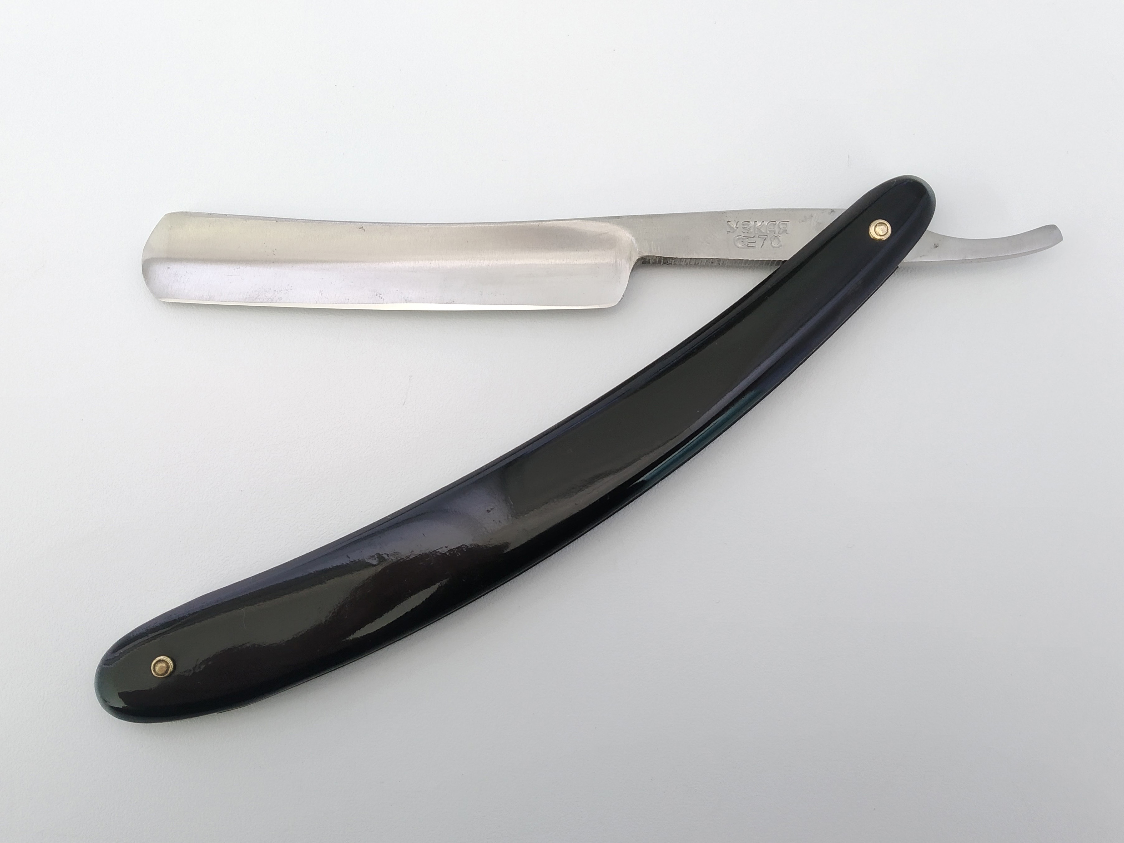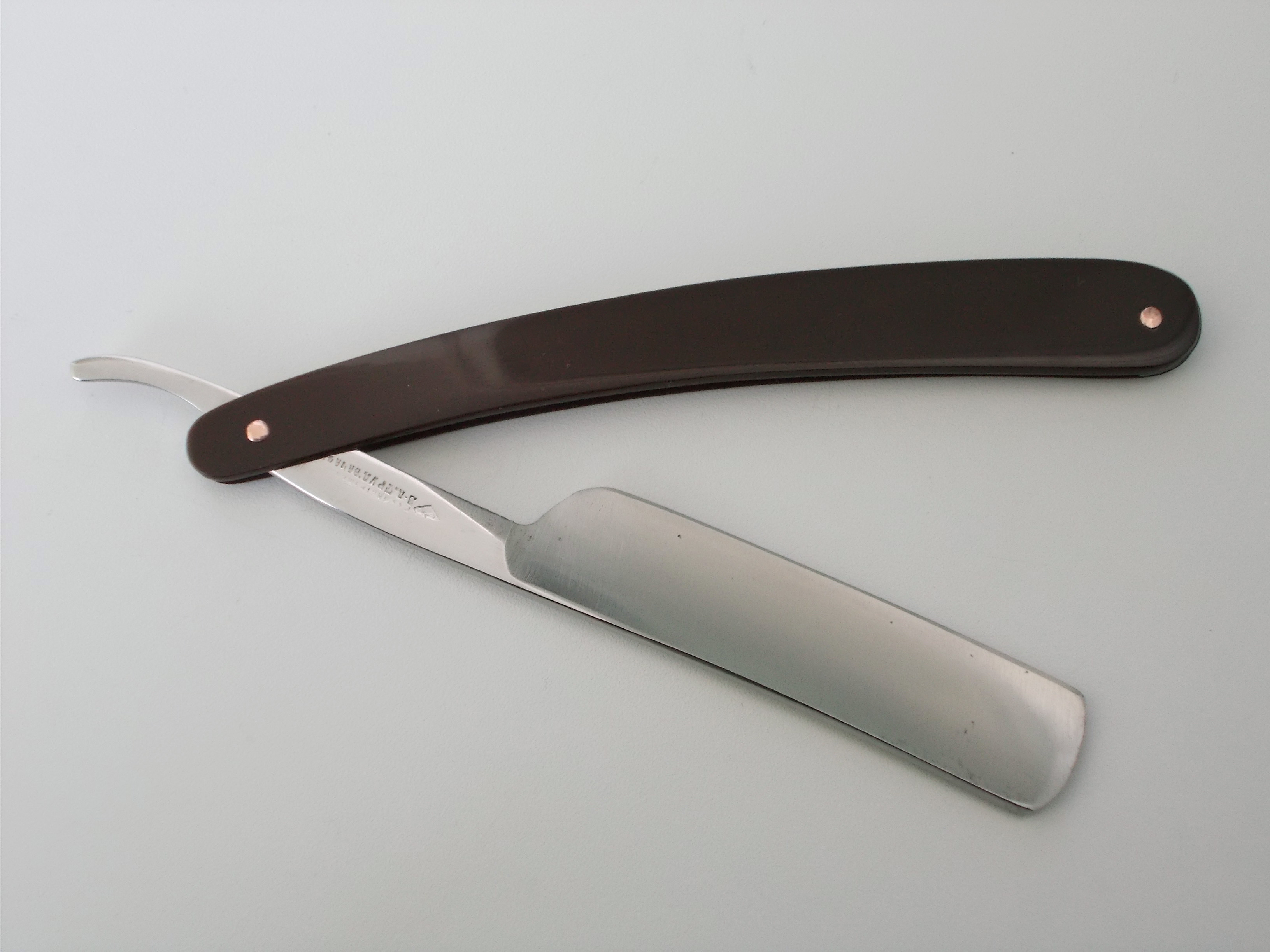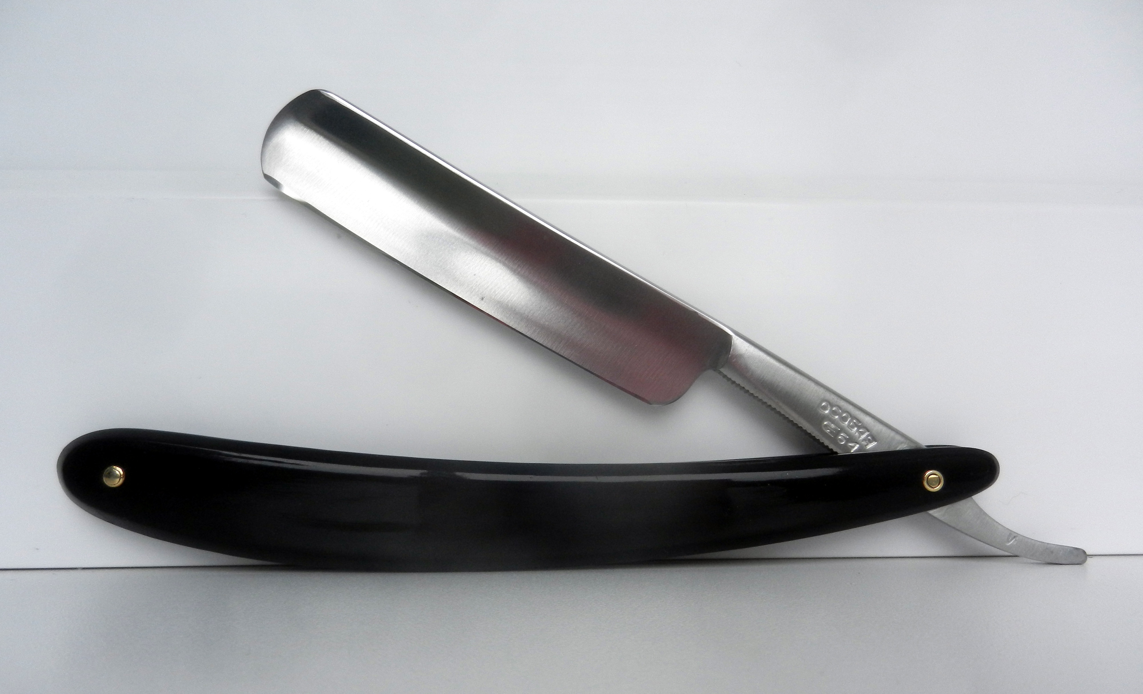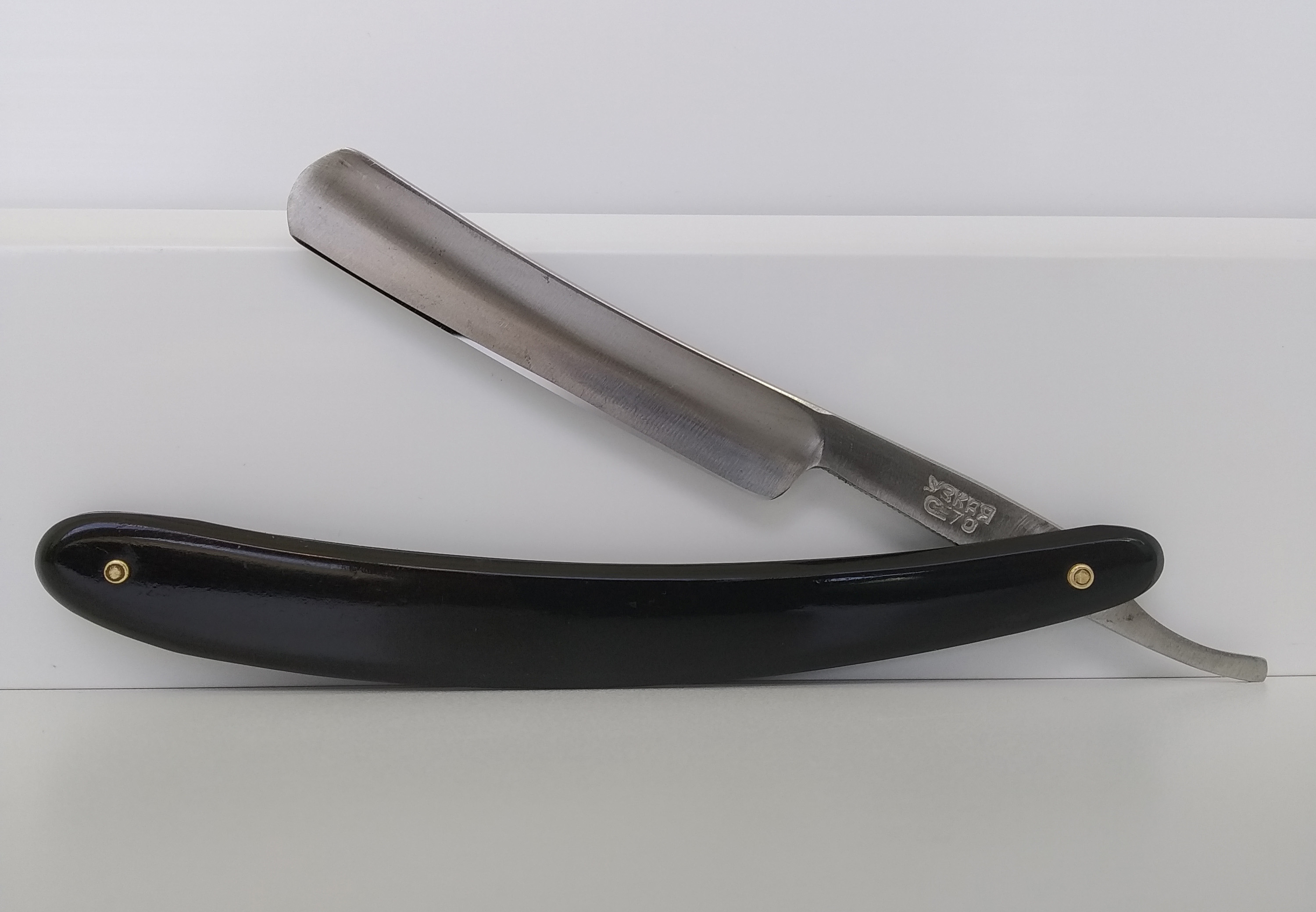 Продам опасную бритву Erik Anton Berg, город Eskilstuna, Sweden. Бритва после ремонта и реставрации, в очень хорошем сохране. Бритва разбиралась, прошла очистку, полировку, собрана с оригинальными заклепками. После сборки клинок в оправе сидит плотно, по-центру, не болтается. Лезвие без дефектов и ржавчины. Ширина полотна - заводские 9/16 (14,3 мм). Полная вогнутость, тончайшее сведение, кромка узкая и равномерная по всей длине. Бритва заточена и готова к использованию. Отправляю почтой, пересыл оплачивается отдельно, по России от 100 до 200 руб. Цена - ПРОДАНО Еще фото Spoiler Show