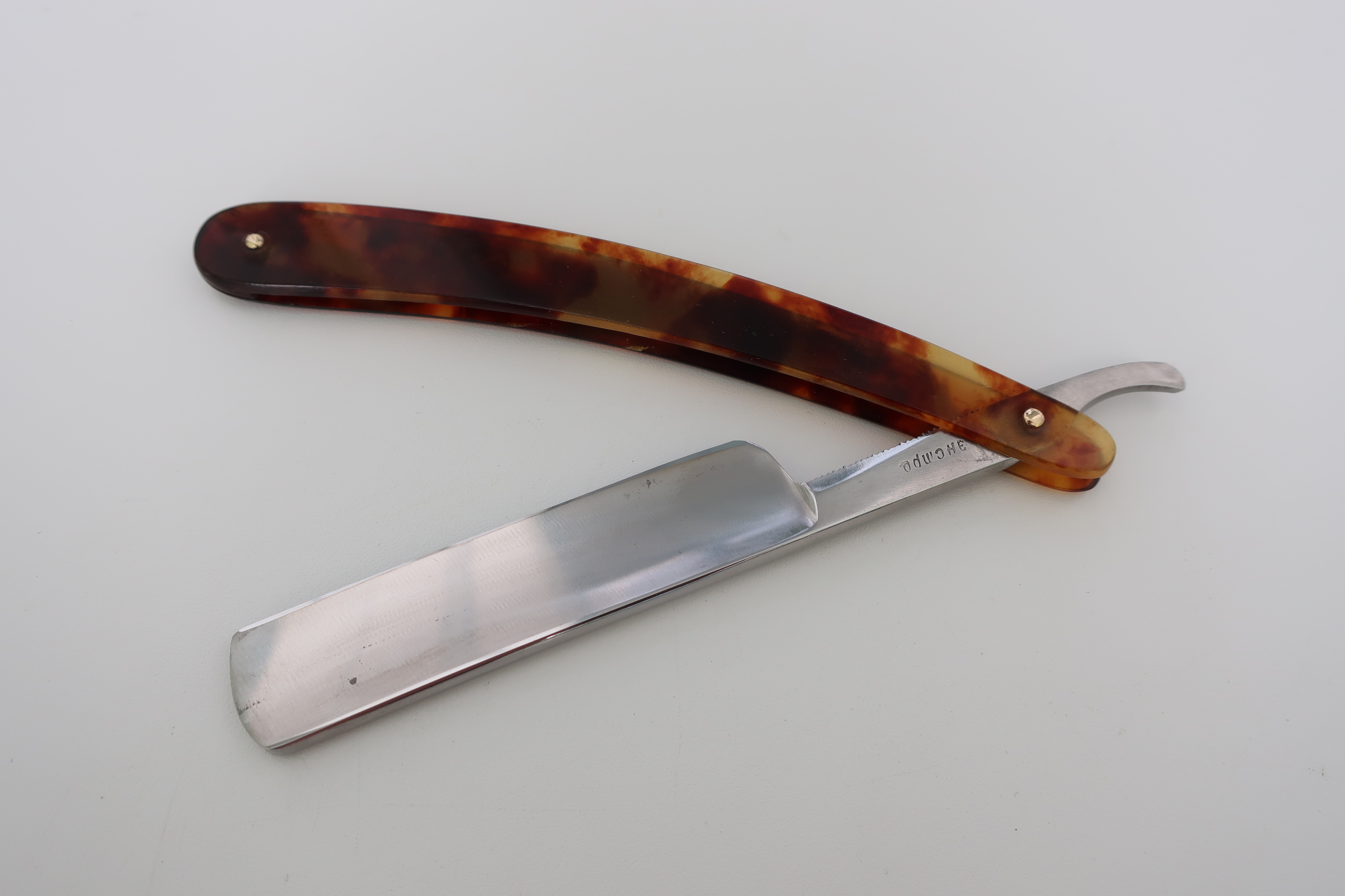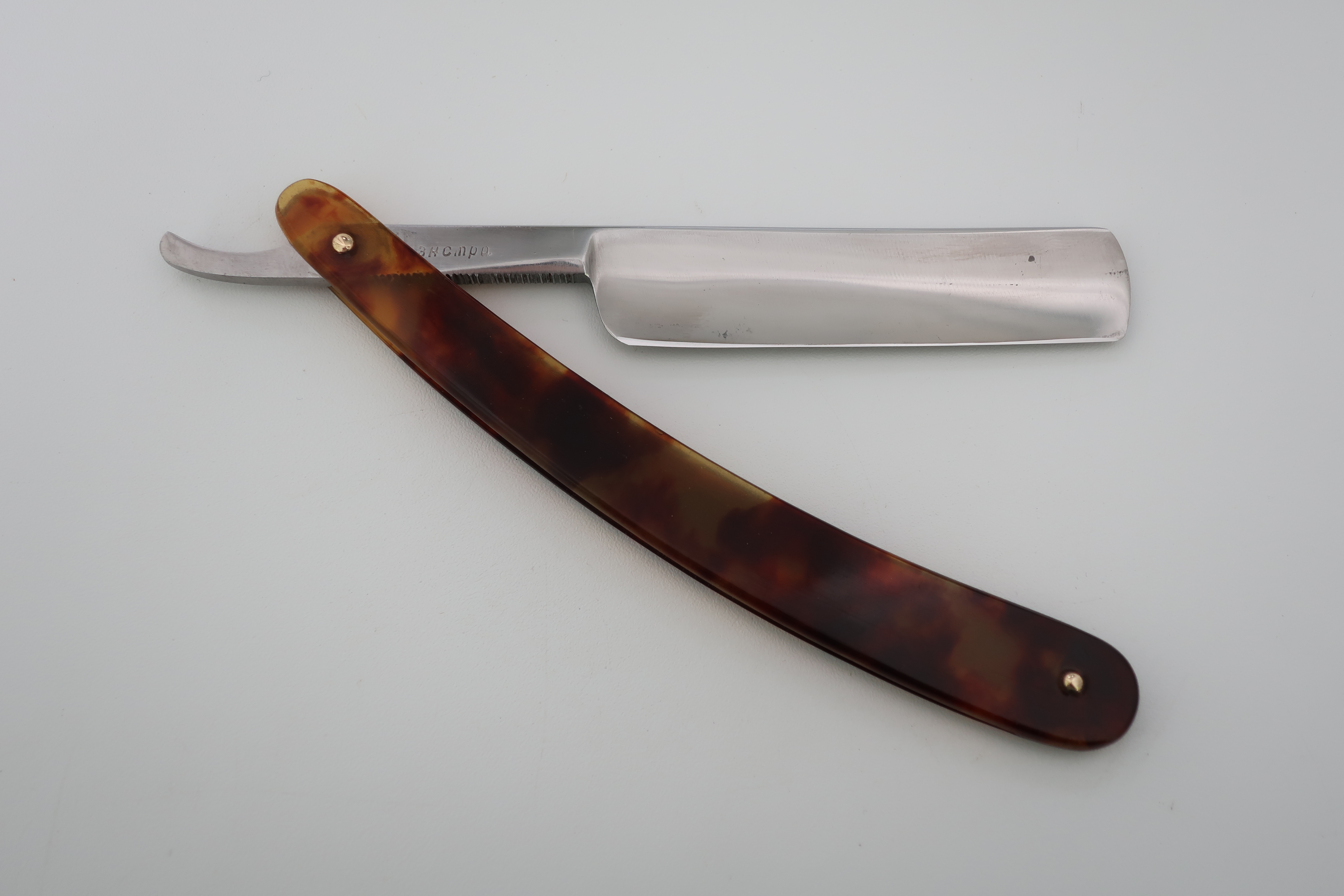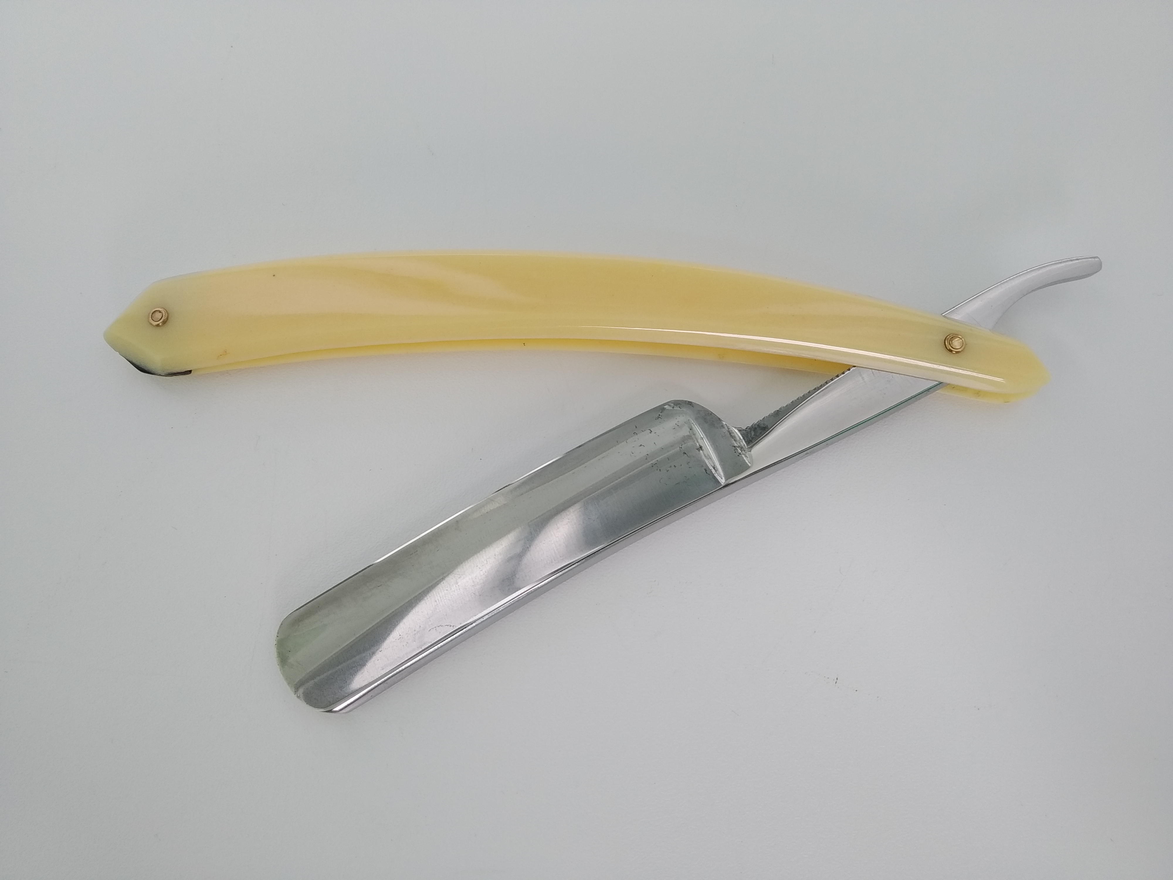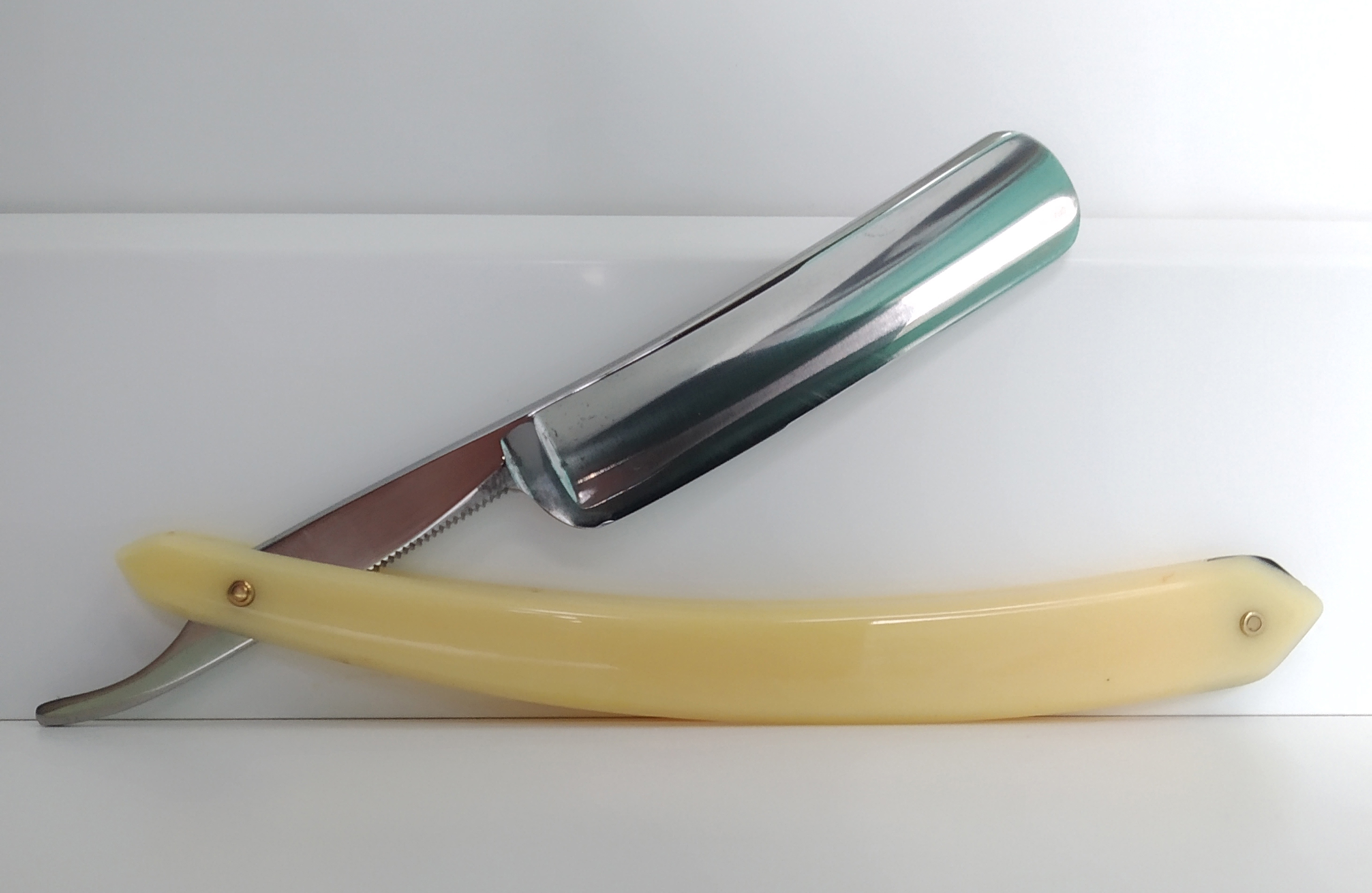 Продам опасную бритву Erik Anton Berg, город Eskilstuna, Sweden. Бритва после ремонта и реставрации, в очень хорошем сохране. Бритва разбиралась, прошла очистку, полировку, собрана с оригинальными заклепками. После сборки клинок в оправе сидит плотно, по-центру, не болтается. Лезвие без дефектов и ржавчины. Ширина полотна - заводские 9/16 (14,3 мм). Полная вогнутость, тончайшее сведение, кромка узкая и равномерная по всей длине. Бритва заточена и готова к использованию. Отправляю почтой, пересыл оплачивается отдельно, по России от 100 до 200 руб. Цена - ПРОДАНО Еще фото Spoiler Show