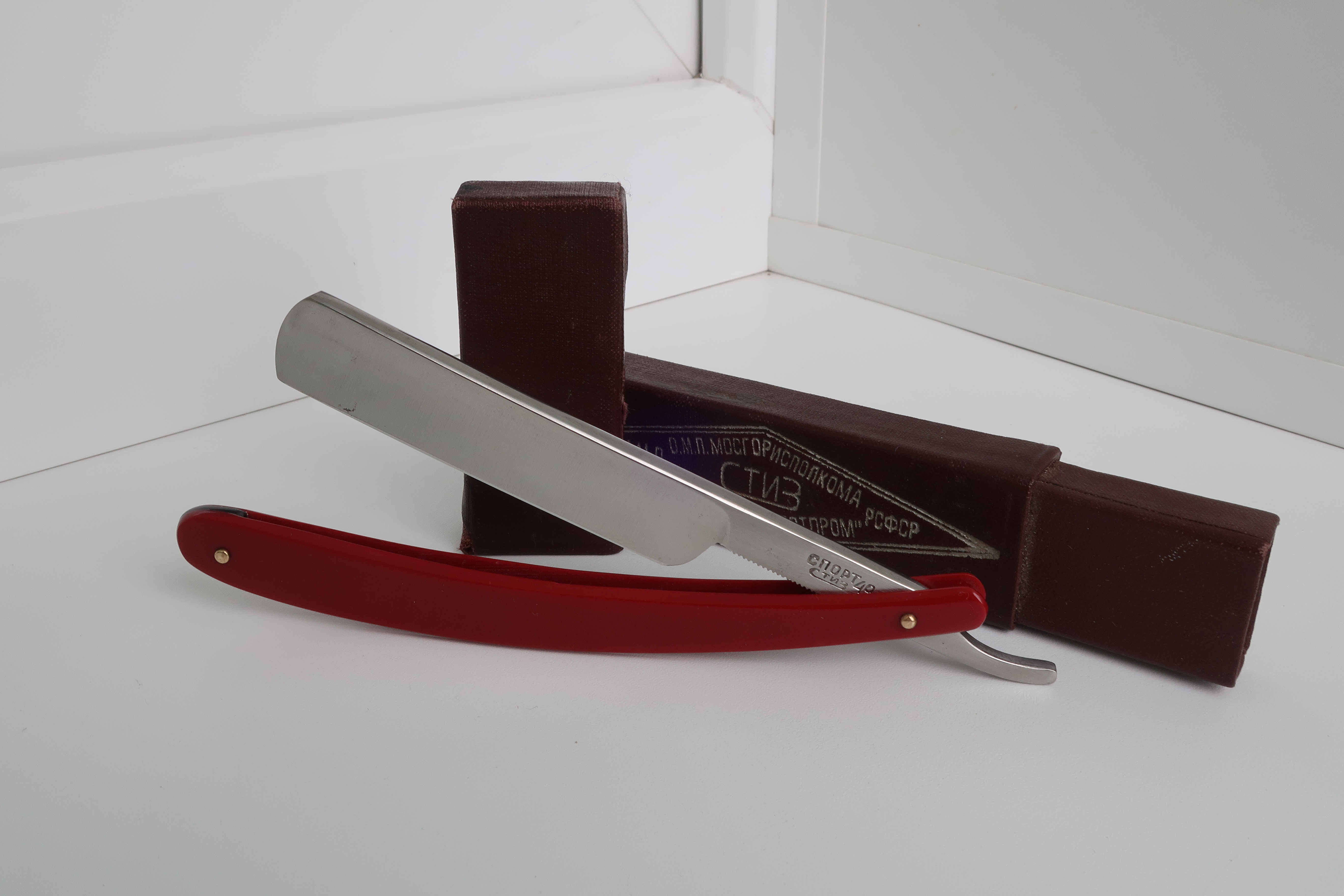 Продам опасную бритву "Узкая" СТИЗ, 1970 г. Бритва не реставрировалась, не разбиралась, все заводское. Бритва прошла лишь легкую очистку и полировку. Остались небольшие следы времени в виде темных точек на полотне. Бритва не имеет следов использования, заточена мной впервые, готова к бритью. В комплекте кофр для хранения. Отличный и недорогой вариант для новичка. Отправляю почтой, пересыл оплачивается отдельно, от 100 до 200 руб., по России. Цена - ПРОДАНО Spoiler Show