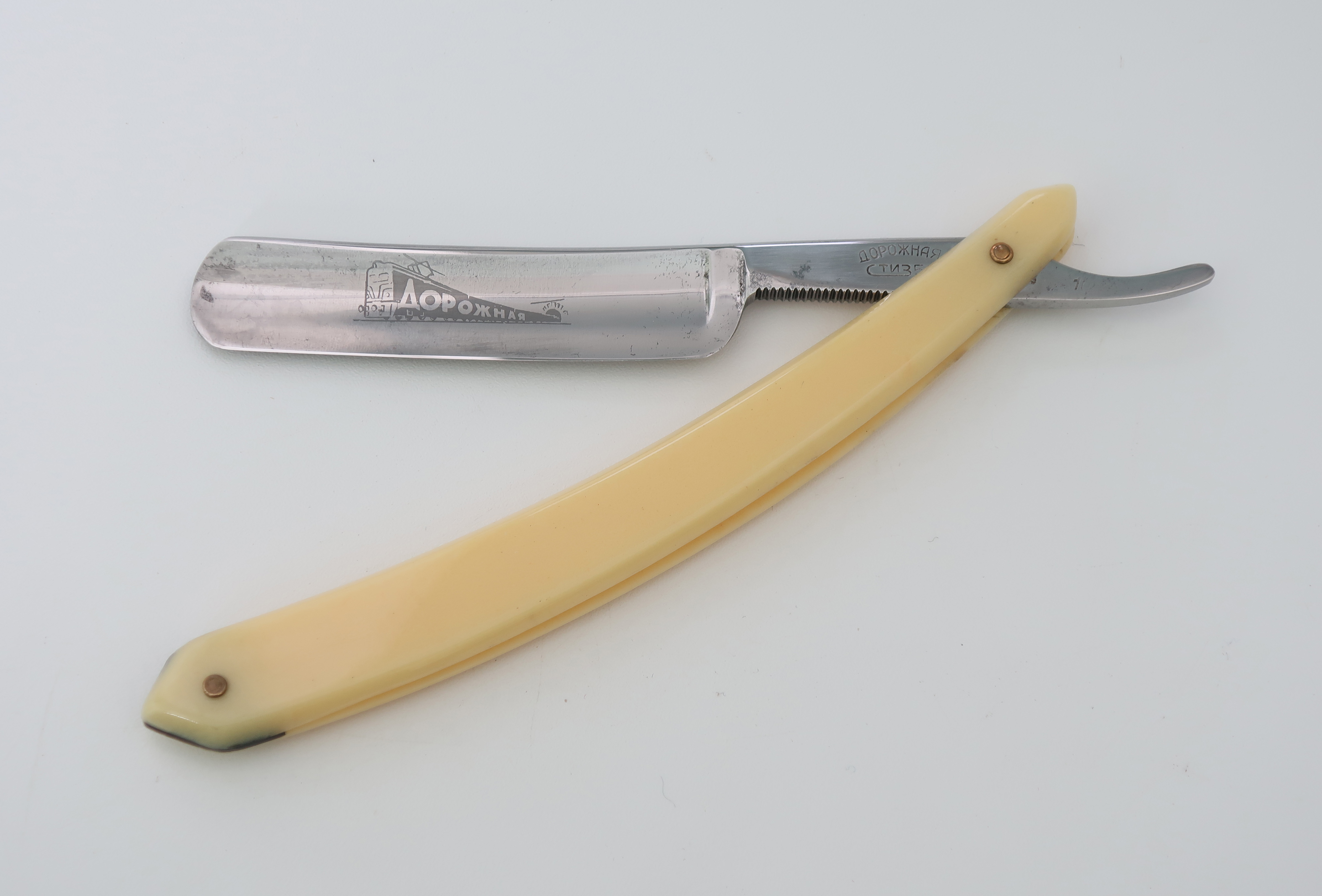 Продам опасную бритву СТИЗ "Дорожная" 1959г. Бритва после реставрации, в очень хорошем состоянии. Ширина полотна - заводские 5/8 (15,8 мм), оптимальный размер. На полотне яркое травление "Дорожная". Бритва разбиралась, прошла очистку, полировку. После сборки клинок в оправе сидит плотно, по-центру, не болтается. Бритва заточена, готова к бритью. В комплекте кофр для хранения. Отличный и недорогой вариант как для новичка, так и для опытного пользователя, для бритья или в коллекцию. Отправляю почтой, пересыл оплачивается отдельно, по России от 150 руб. за заказное письмо. Цена - ПРОДАНО Spoiler Show