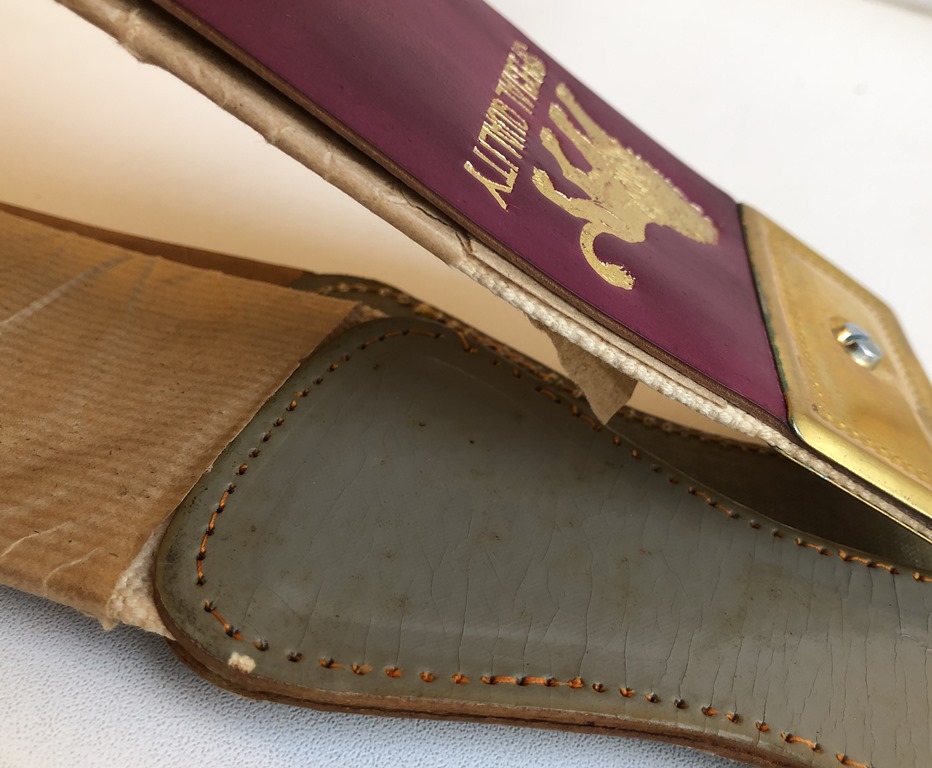 Ремень из старых запасов, совершенно нетронут временем.Кожа мягкая, эластичная, но в тоже время достаточно плотная(не такая"жидкая", как на современных Канаяма).Лошадь отборная, без каких либо природных дефектов, в виде шрамов, прожилок и разного рода царапин и порезов..Как и любой качественно выделанный Кордован, со временем станет ещё эластичнее ,тактильно будет напоминать кусок резины, а также и править станет быстрее и ещё лучше.Вторая часть ремня-льняной холст, также в идеальном состоянии:мягкий и не нуждается в предварительной подготовке. Хотя, кто хочет, то может один раз простирнуть его на деликатной стирке, чтобы убрать струю патину и пыль ."Родная"инструкция или что от неё осталось,также в наличии.Отличный старинный экземпляр, на все случаи жизни. Купи ремень из Кордована и закрой раз и навсегда вопрос с качественной правкой!