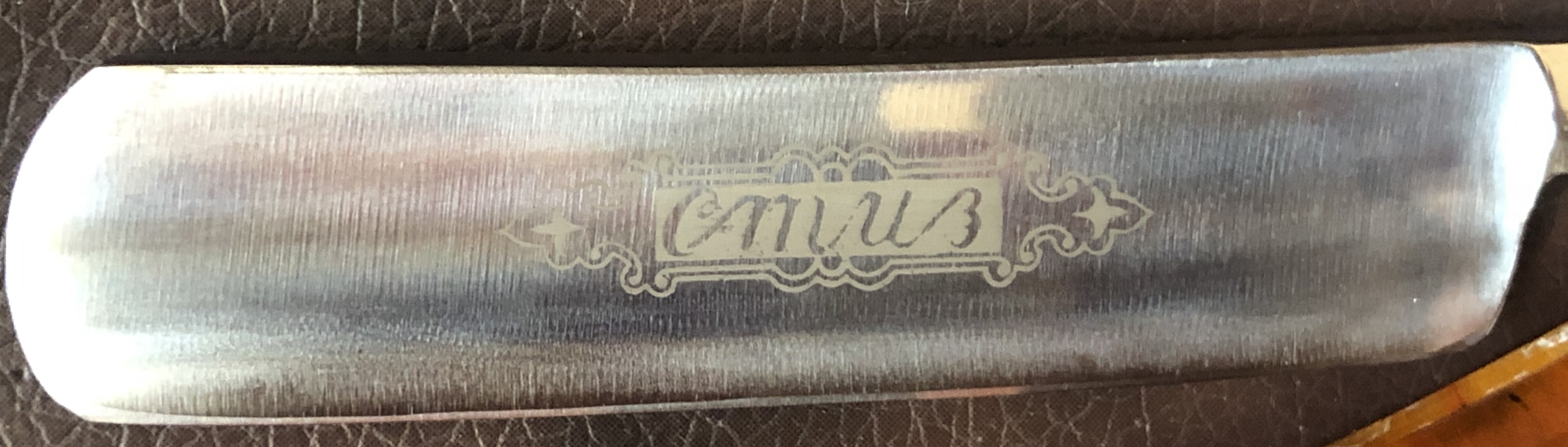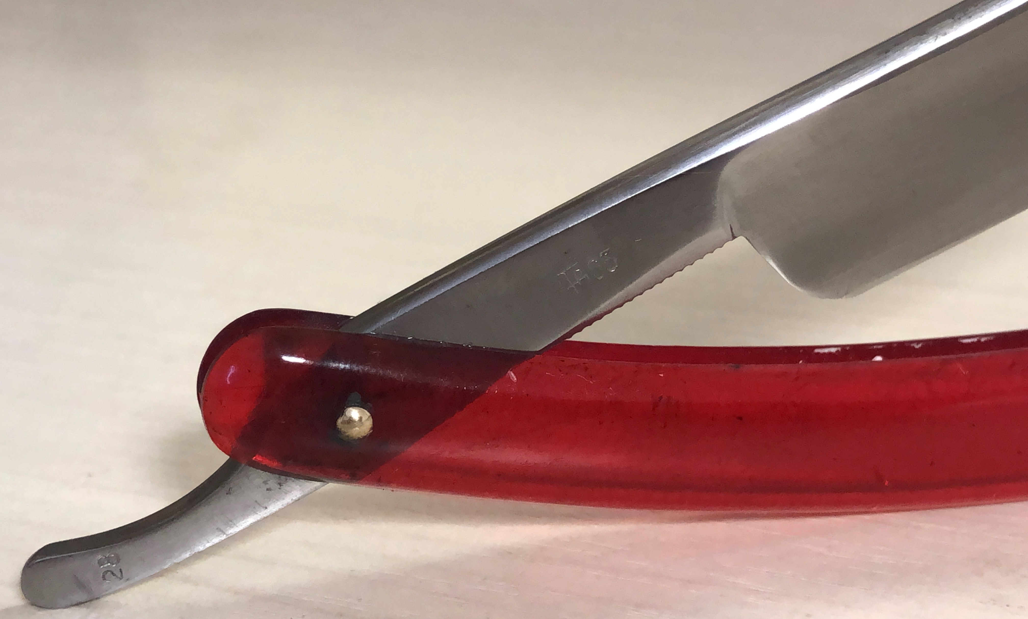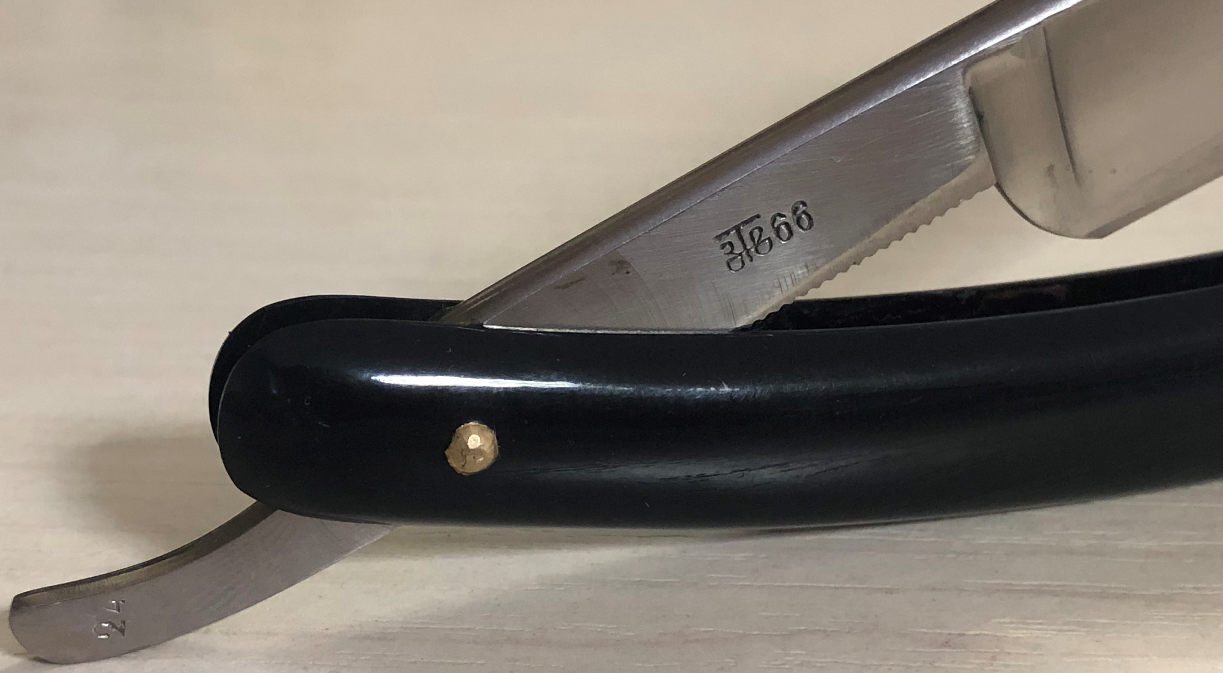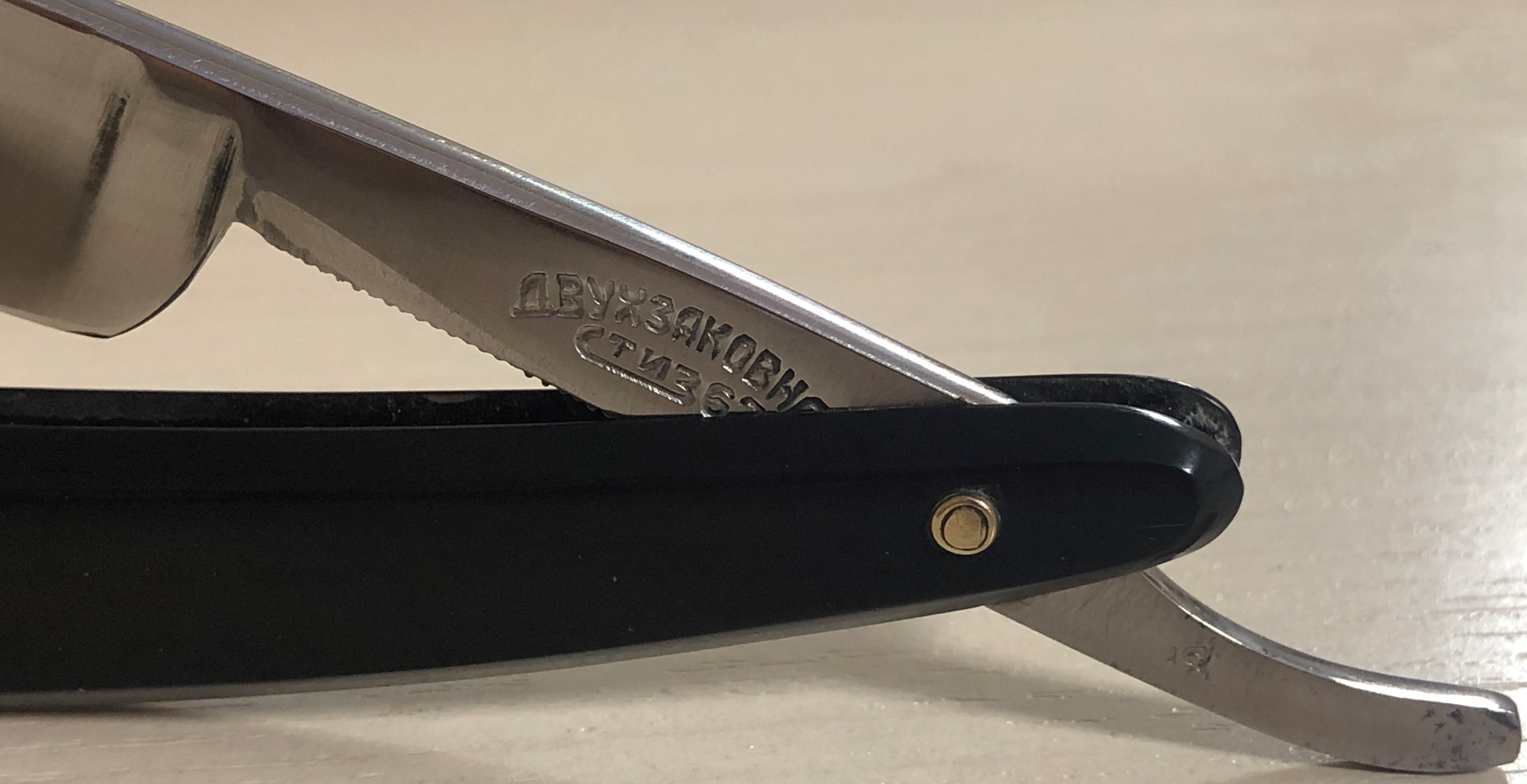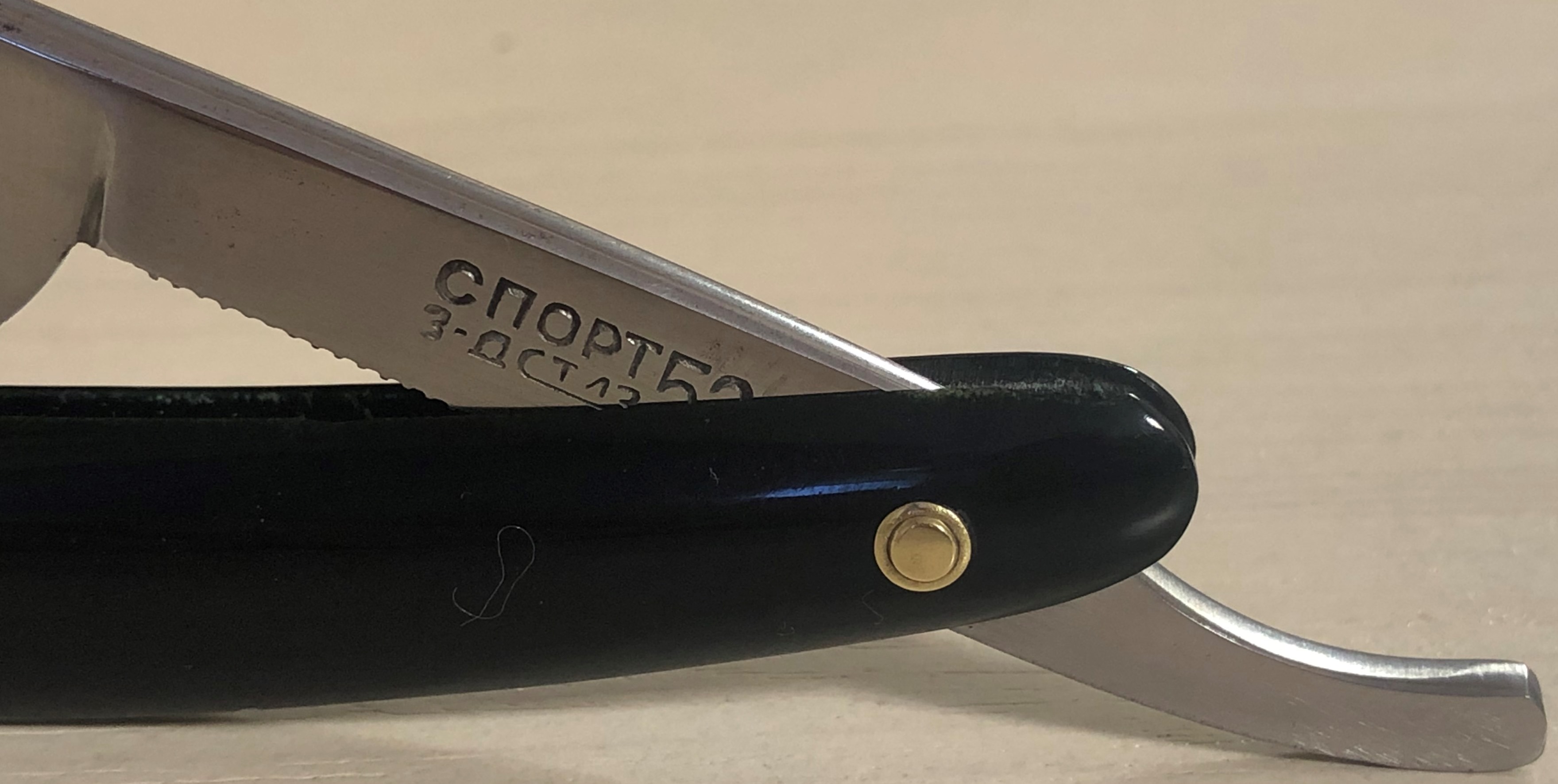Малопользованная, либо вообще не была в деле.Бритву разобрал, немного почистил и отполировал клинок и снова собрал, сохранив оригинальный пин.