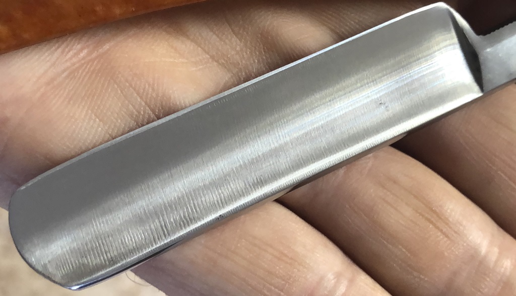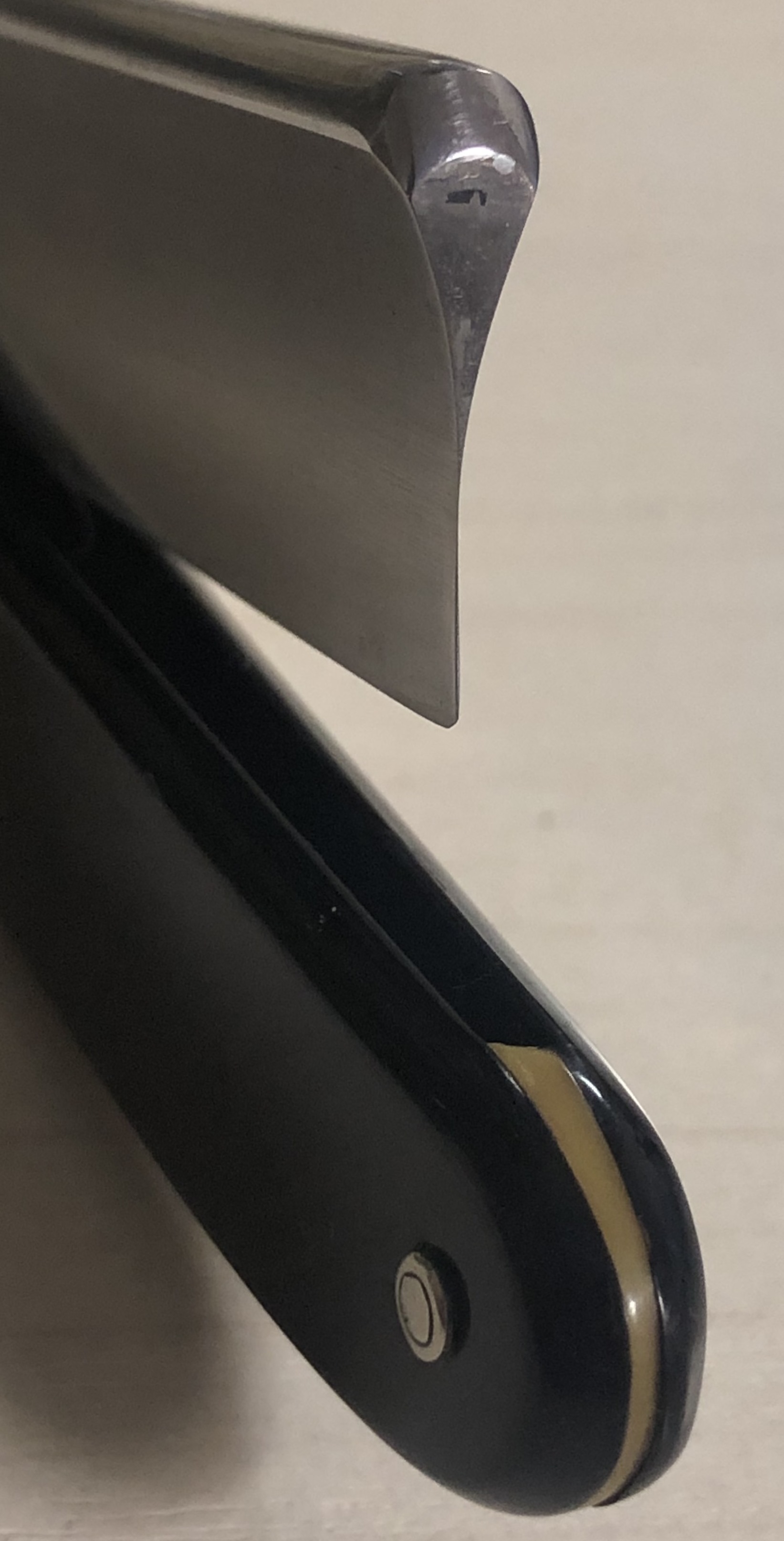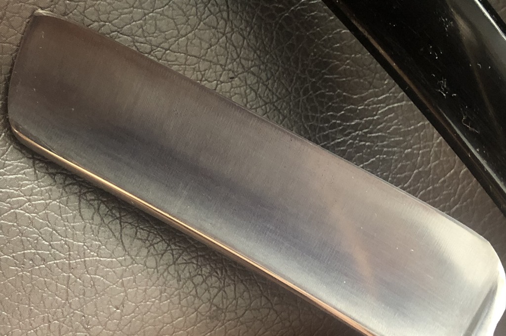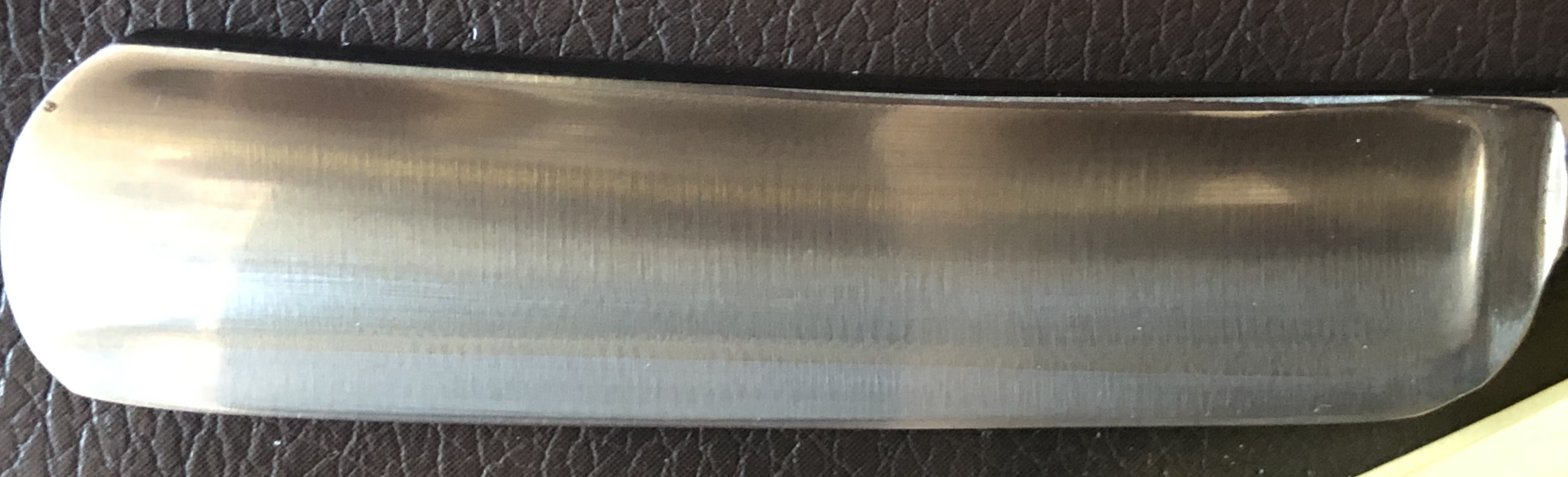 Клинок в очень хорошем состоянии.Немного исправил "обратную улыбку", почистил ,восстановил оригинальный гринд,в меру своих возможностей и отполировал.Касаемо оправы...Роговая, натуральная ручка ,древняя,от французского донора 19-го века.(Немного длинновата, конечно, но в любом случае лучше, чем какой то заводской пластик. ) Так как на оправе имелись довольно большие отверстия под пины, то мною было принято решение поставить именно такие шайбы, возможно крупные,зато надёжные.Сталь чистая, без видимых дефектов. Идеальная геометрия клинка:кромочка равномерна по всей длине.Бритва получилась немного тяжелее, по сравнению с бритвой в оригинальном исполнении.В любом случае,бритва приятна во всех отношениях. Брить должна неплохо. Заточена и готова к бритью.