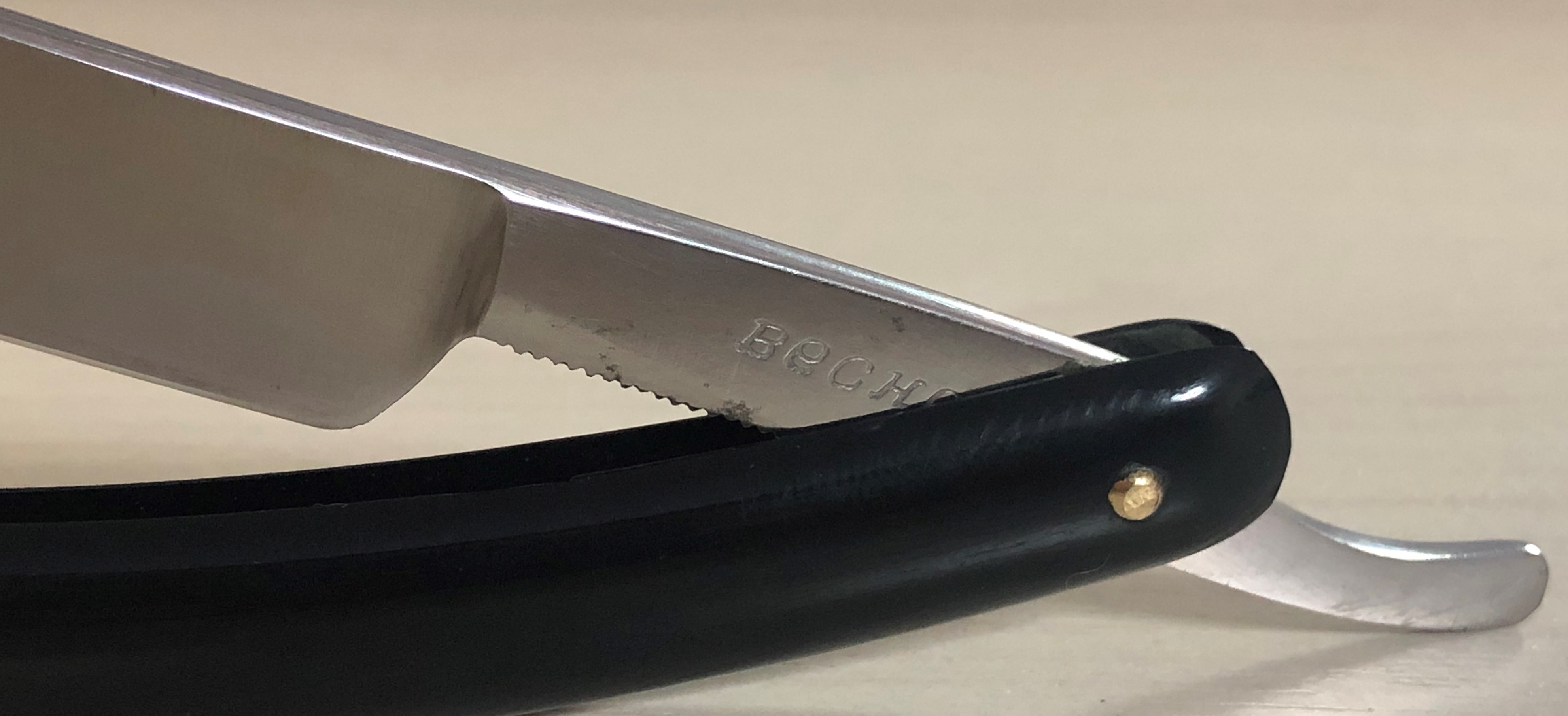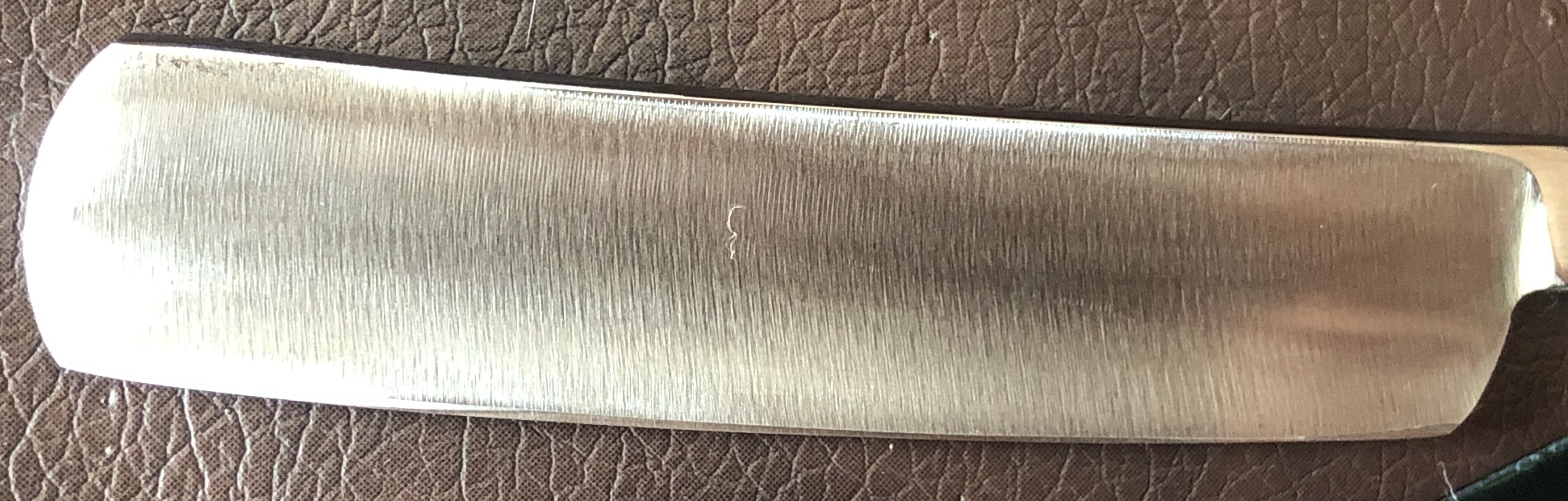 Бритву только оттер от остатков масла с консервации. Естественно, ничего не разбиралась и не ремонтировалось.Совершенно не тронута временем.Сталь не имеет никаких видимых дефектов.Нанесено покрытие от коррозии, а также можно увидеть чёткий переход от электро-химической, заводской заточки. Идеальная геометрия клинка. Бритву не точил пока.После продажи будет по желанию заточена.