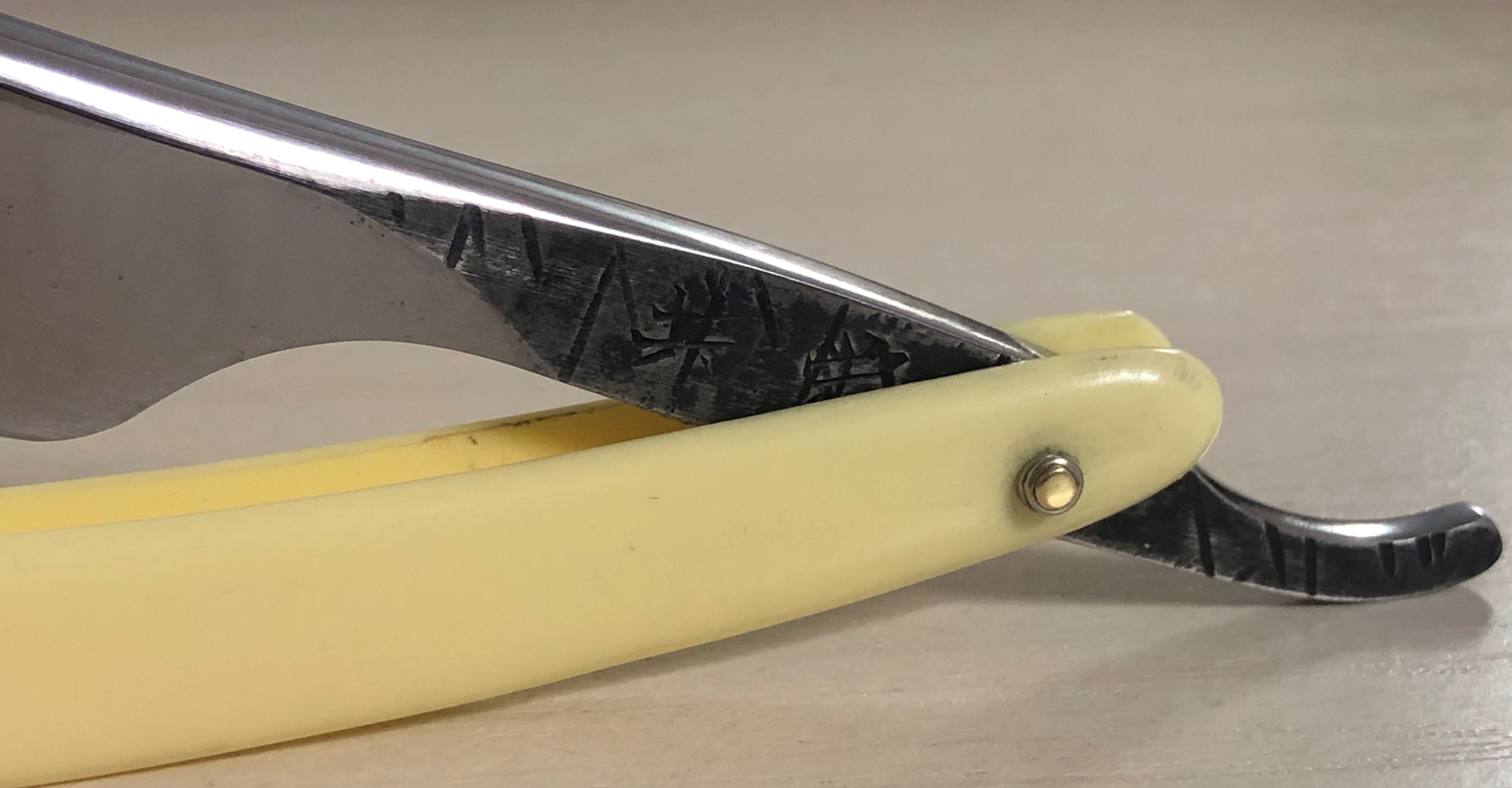 Ещё одна бритва, форма которой не часто встречается у японских производителей прошлого.