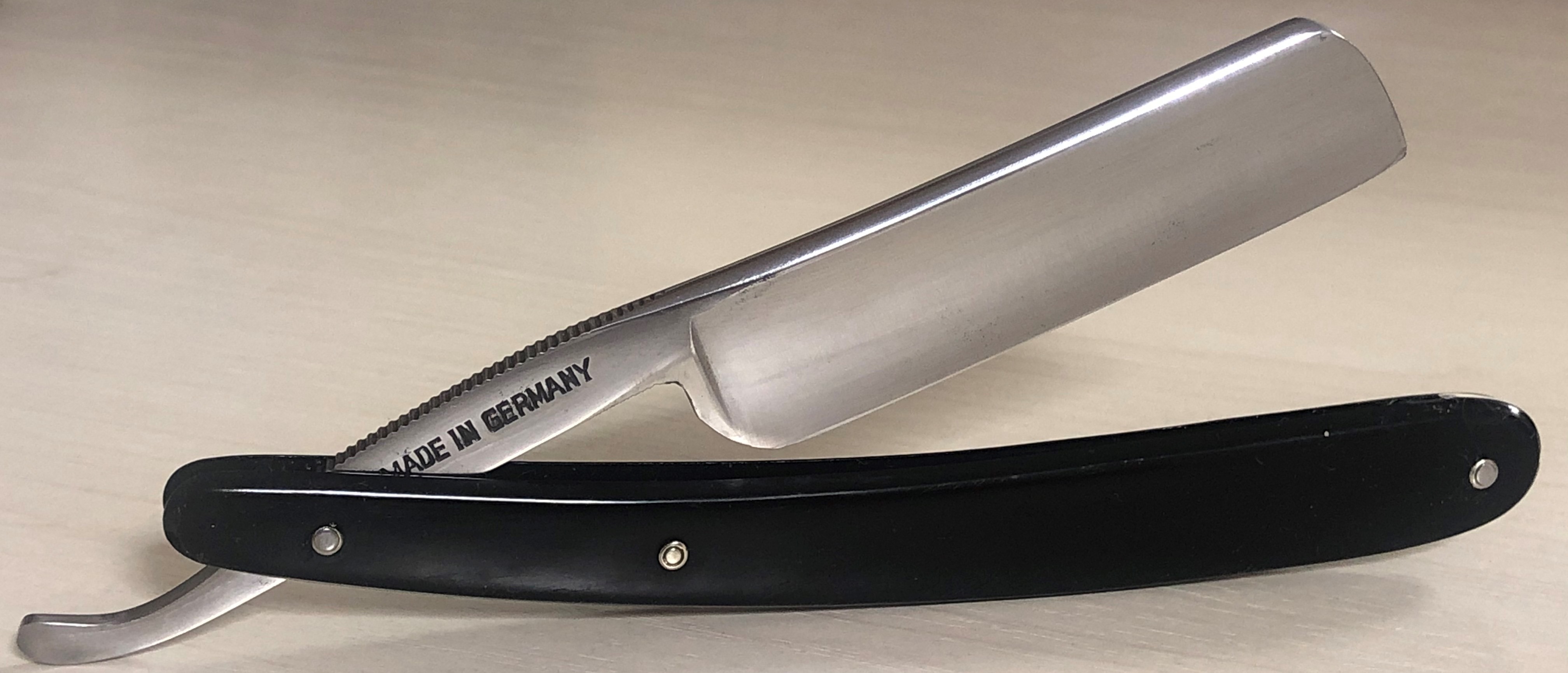 Бритва в очень хорошем состоянии.Малопользованная. Разобрал, немного почистил и отполировал полотно и снова собрал, заменив родной пин на немецкую втулку, с добавлением внутренних шайб. Идеальная геометрия клинка:кромочка равномерна по всей длине полотна.Заточена и готова к бритью. Отличный и недорогой вариант для новичка, не желающего тратить много денег на свою первую бритву.