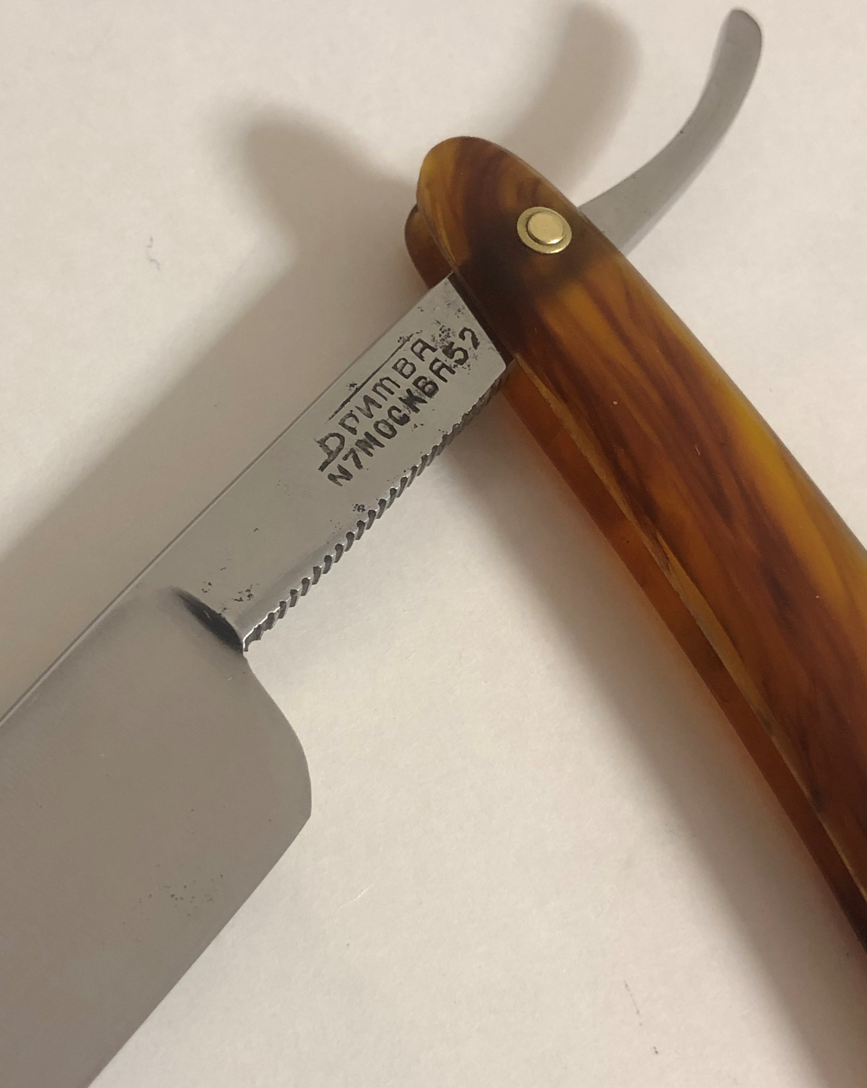 Бритва не разбиралась, а тольно немного чистилось полотно.Какой именно бренд, трудно разобрать, по причине потертости пластиковых накладок, от времени.Можно разобрать только-"Tokyo-Japan" и на обратной стороне-"for barber use-first quality".Исходя из опыта тестирования подобных бритв в прошлом, могу сказать, что бритвы подобного типа имеют отличную"звонкую" сталь, прекрасно точатся и очень удобны в пользовании и уходе, из за своих накладок на эрле.Бритва пользованная, но эксплуатировалась аккуратно.Сталь чистая, без видимых дефектов.Геометрия кромки на уровне. Бритва идеально могла бы подойти для новичка в качестве качественной и совершенно недорогой вещи.Заточена и готова к бритью.