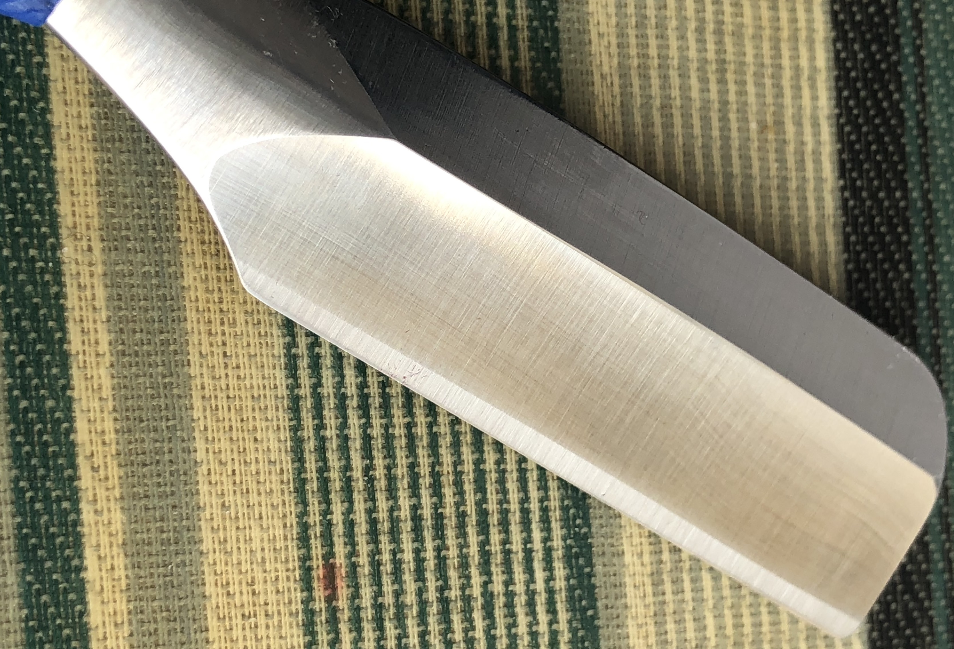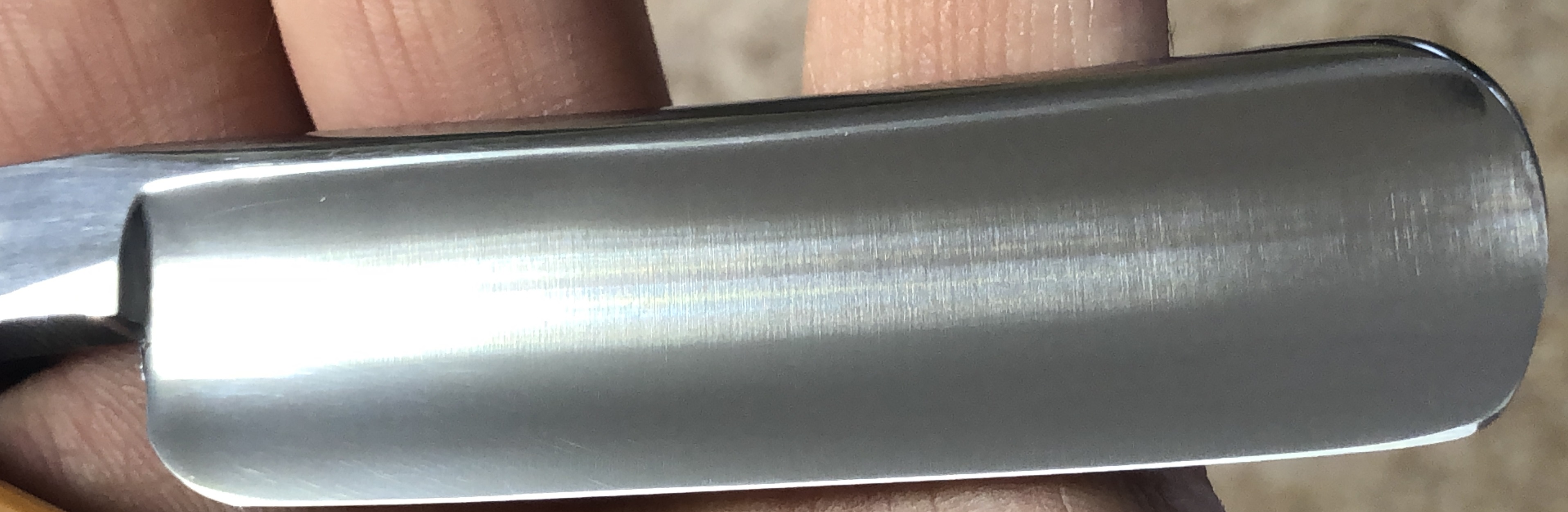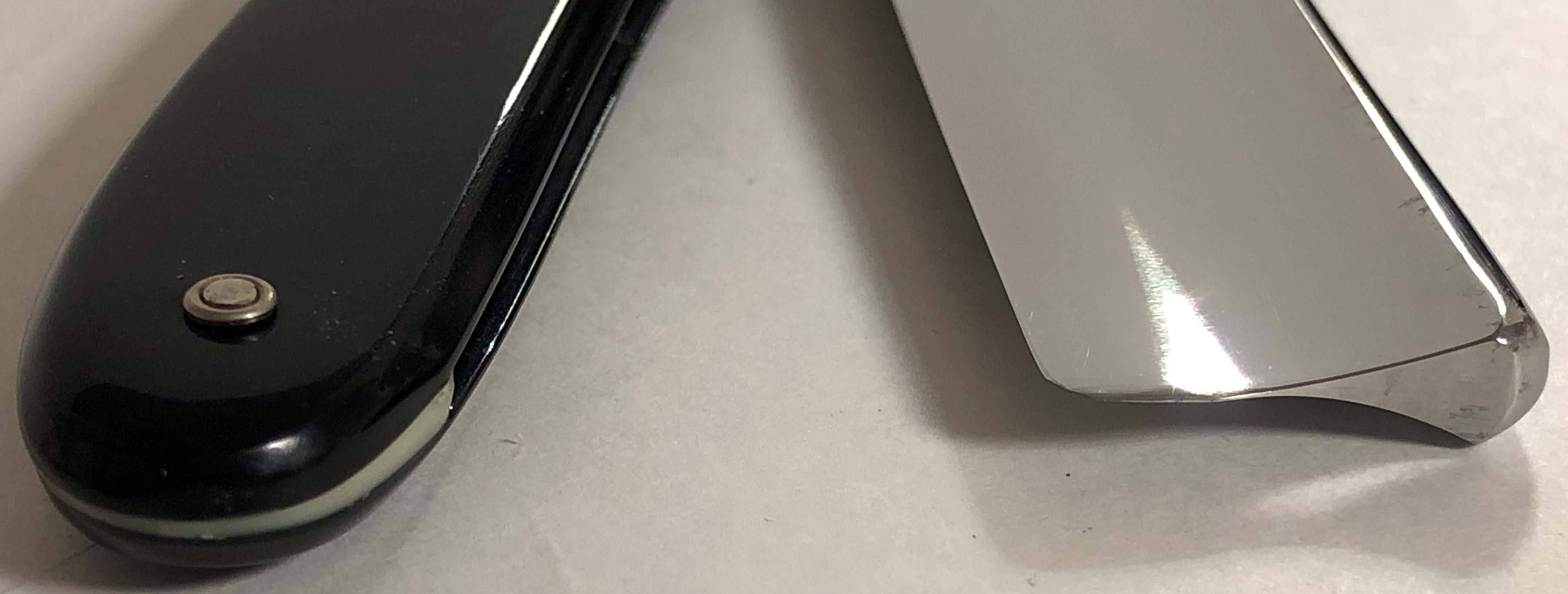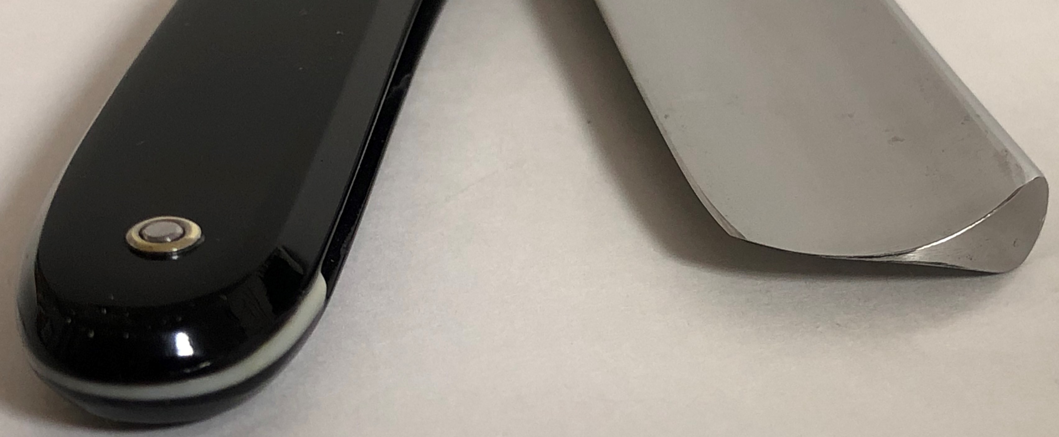 Никаких видимых дефектов не заметил. Все ,как вчера с производства.Элегантная форма клинка, в массе своей несвойственная японским бритвам, в виде тонкого эрля, широкого полотна, с глубокой выработкой .За счет толстого обушка бритва достаточно тяжёлая, что даёт возможность чувствовать ее в руках, при бритье и не резаться часто.Идеальная форма клинка:кромочка равномерна по всей длине и практически незаметна.Отличная "звонкая" сталь способна выдавать качественное и мягкое бритьё. Заточена и готова к бритью.