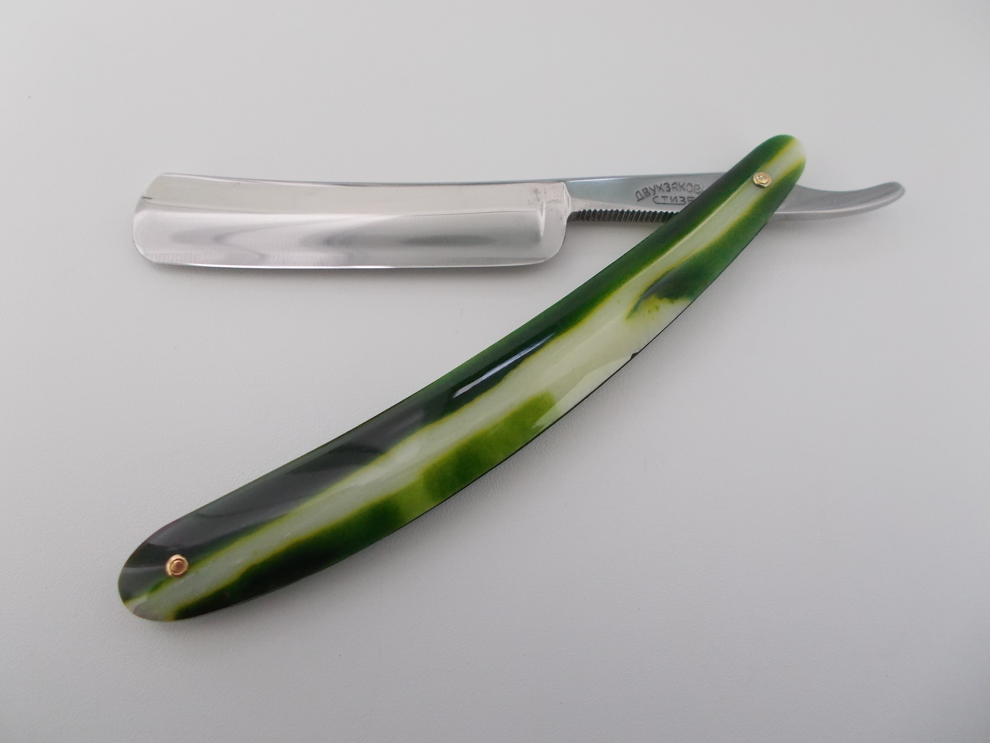 Продам опасную бритву СТИЗ Двухзаковная, 1958 год. Классические 5/8, полная вогнутость. Бритва в отличном состоянии. Все что я с ней делал - это разобрал, освежил метал по оправой и собрал с использованием оригинальных Стизовских заклепок. Бритва не имеет следов использования, заточена мной впервые и готова к бритью. Отличная геометрия, фаска тонкая и равномерная по всей длине полотна. Футляр в комплекте, все как новое. Отправляю почтой, пересыл оплачивается отдельно, по России 150 руб. за заказное письмо. Цена - ПРОДАНО Spoiler Show