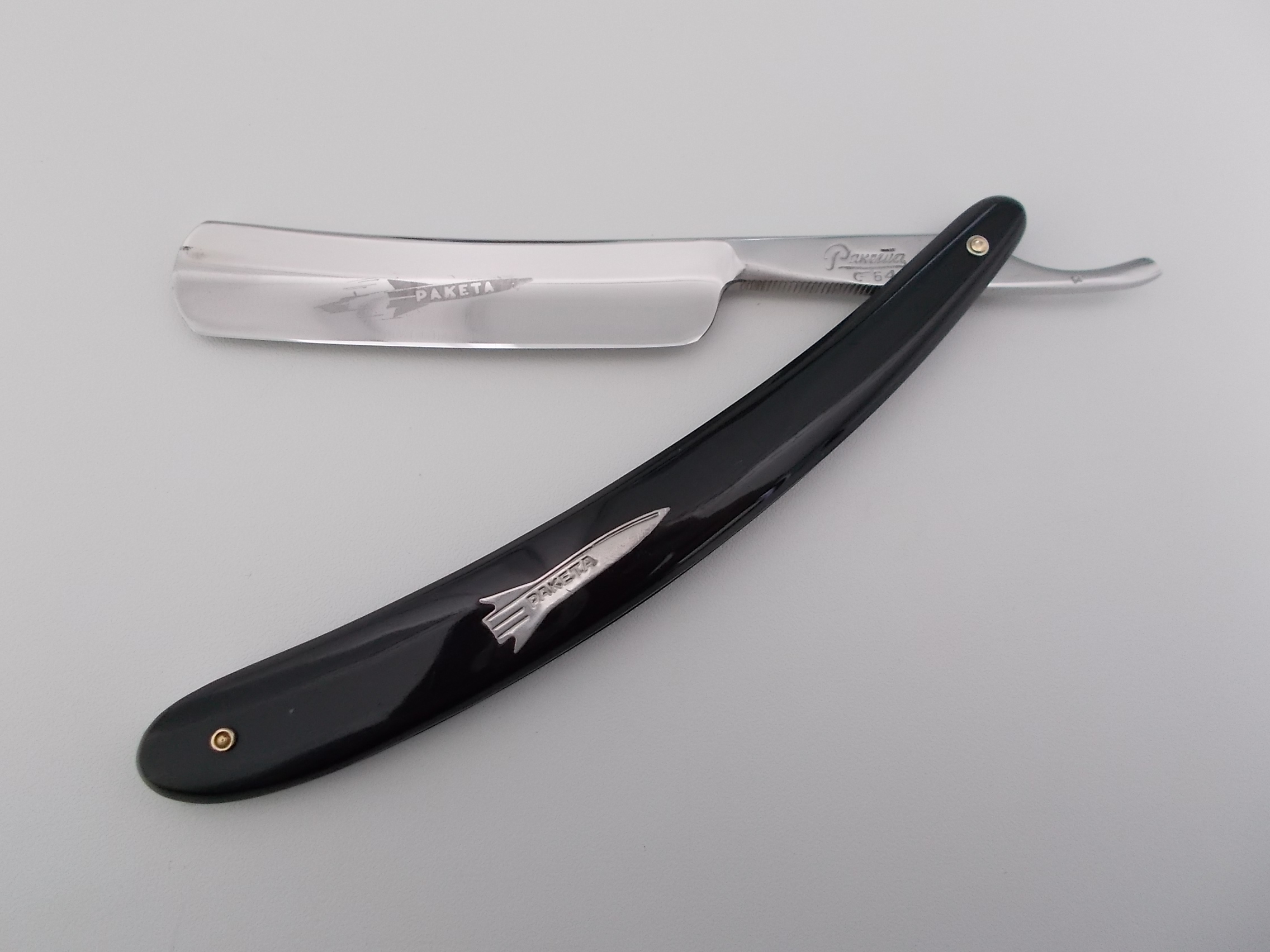 Бритва СТИЗ Ракета 1964 Продам опасную бритву СТИЗ Ракета 1964. Бритва разбиралась, чистилась только в районе осевого пина. Заводской сатин на полотне. Собрана с осевыми шайбами. Клинок в оправе сидит плотно, по-центру, не болтается. На полотне яркое травление "РАКЕТА". В комплекте футляр для хранения, от такй же ракеты 1961 г.в. Бритва заточена, дает очень мягкий и комфортный рез. Отличный и недорогой вариант как для новичка, так и для опытного пользователя, для бритья или в коллекцию. Отправляю почтой, пересыл оплачивается отдельно, 150 руб., по России. Цена - ПРОДАНО Spoiler Show