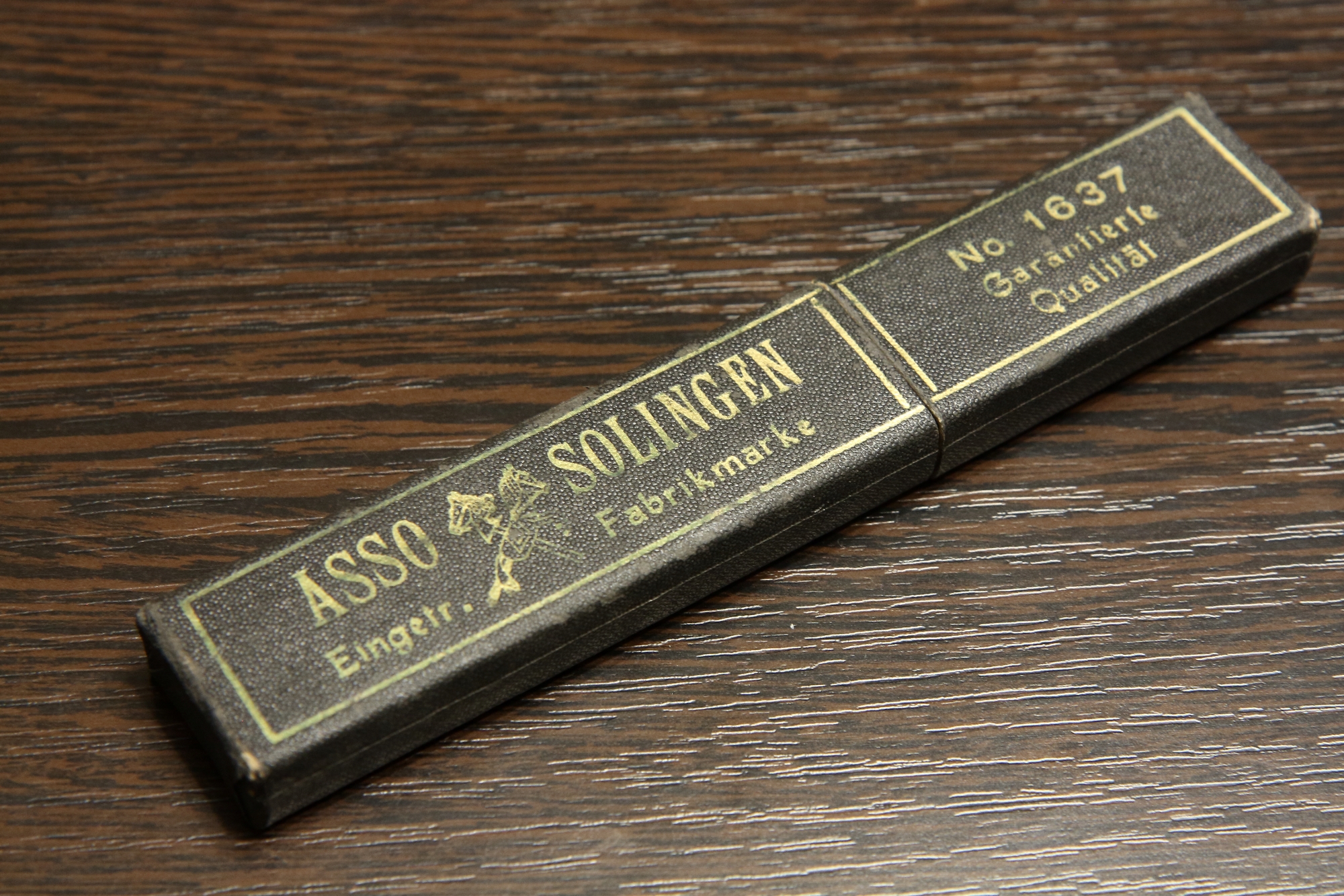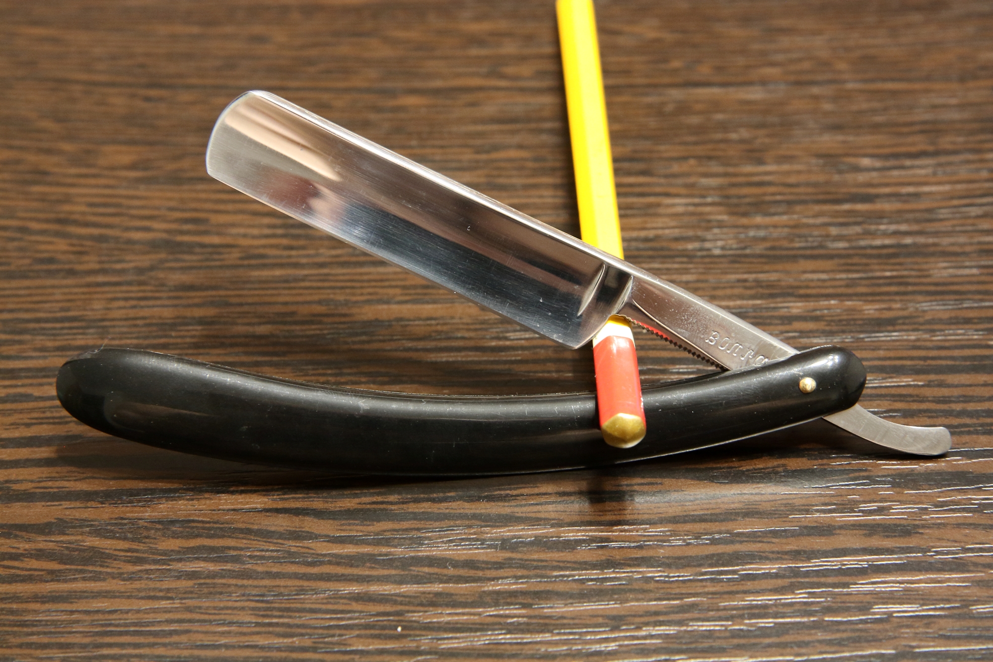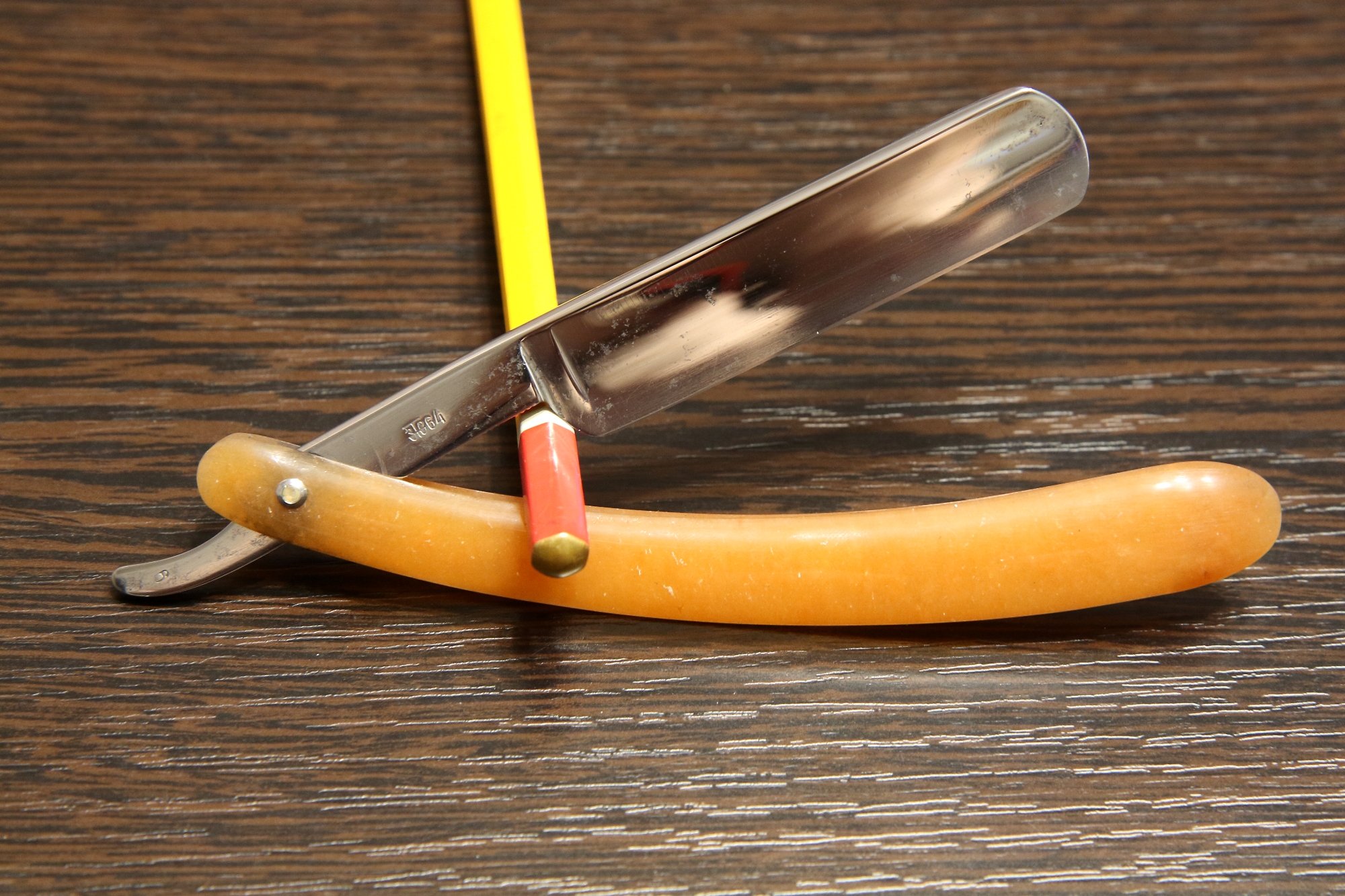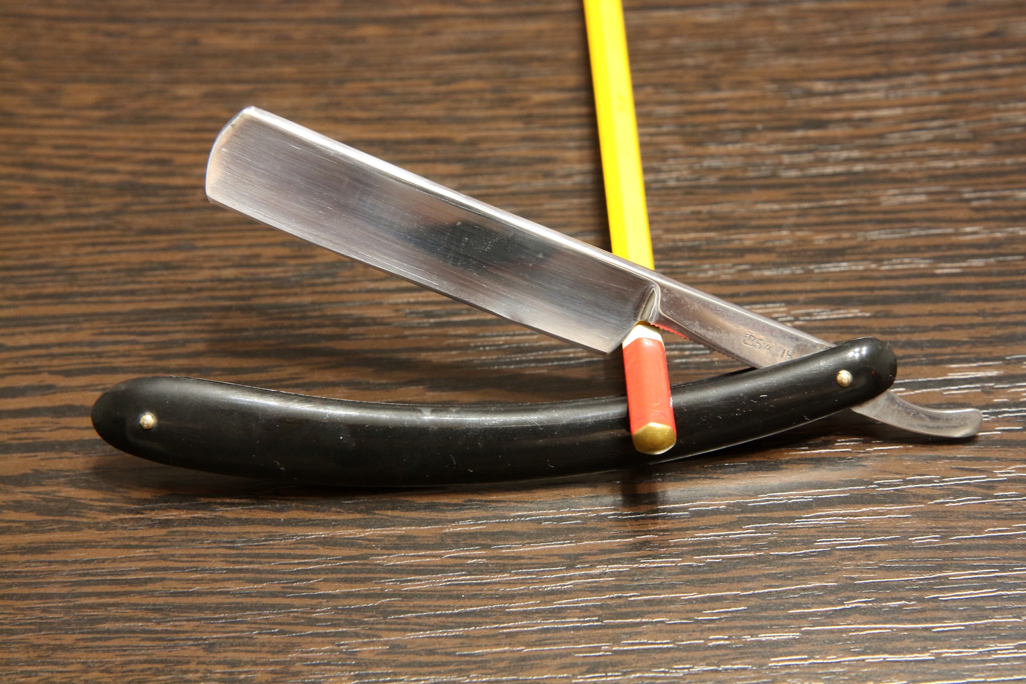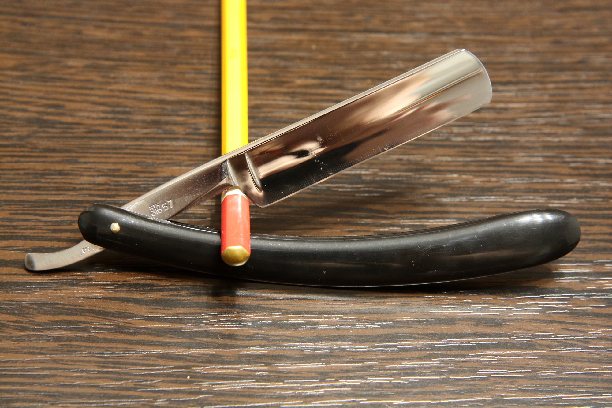 Опасная бритва Bonsa Solingen, сделана в Германии в г. Золинген, ширина полотна 18 мм, все родное. Ко мне попала с заводской заточкой и в отличном виде, с позолоченным гербом Золингена на полотне. Прошелся немного пастами вручную, продезинфицировал и подготовил к бритью. Удобная и красивая бритва с поющей немецкой сталью на полной выборке. Цена - руб. К бритве рекомендую приобрести ремень для правки опасных бритв моего изготовления из итальянской кожи (подробнее на странице 4, объявления 56-58 и странице 9, объявления 127). Spoiler Show