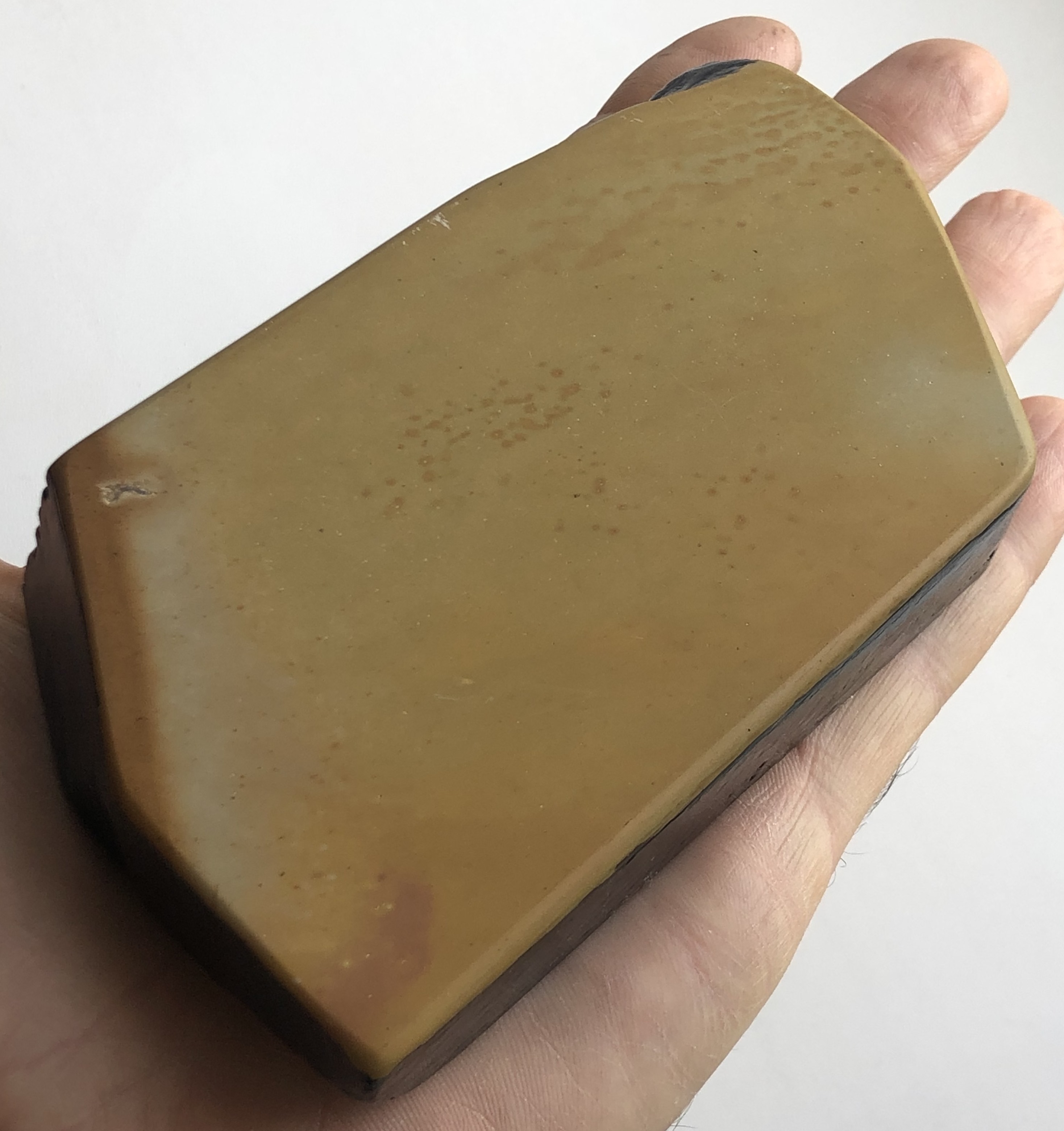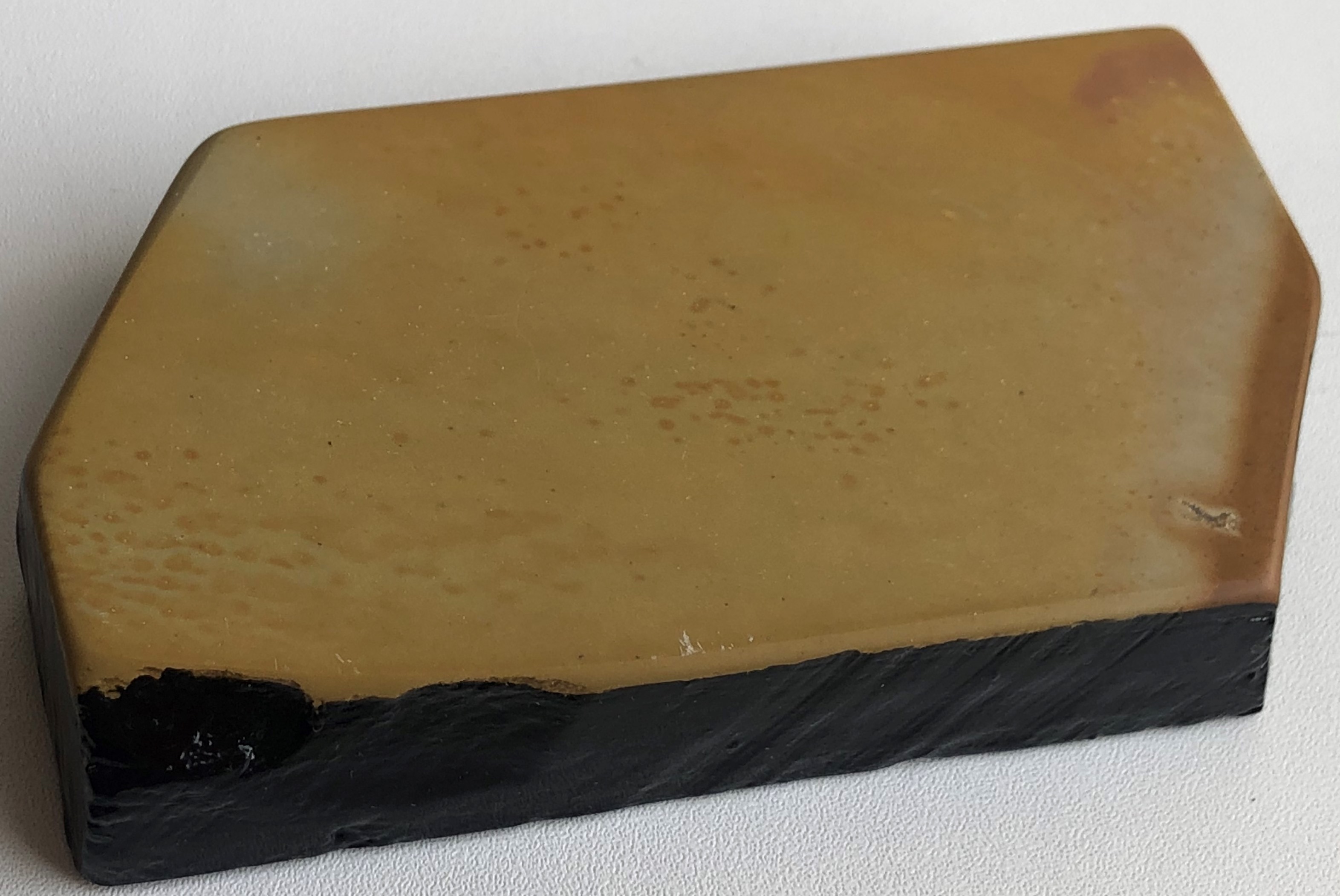 Отличный финишник.Твердый, гладкий.Поверхность камня без посторонних включений, прожилок, трещин и т.д.Покрыт черным лаком для волос, после того как был отклеен от подставки.Прекрасно будет работать с нагурами.Притерт и готов к работе.