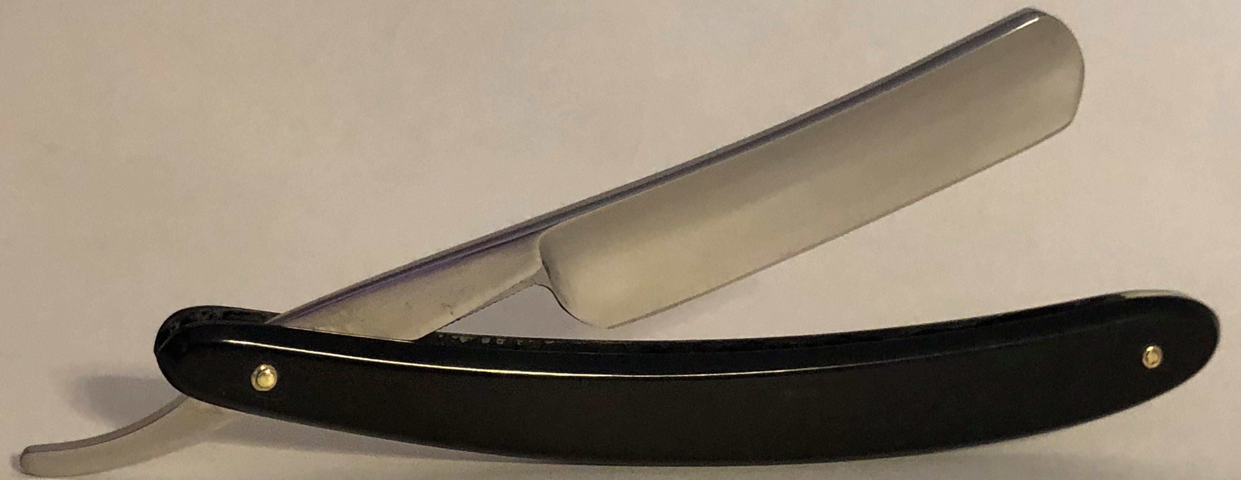Бритва в очень хорошем состоянии. Бритва разбиралась, было освежено полотно и снова собиралась, с сохранением оригинальных пинов.Сталь и кромка чистые.Идеальная геометрия клинка:кромочка равномерна по всей длине.Тяжёлая бритва , с прекрасной сталью, способной выдать мягкое и комфортное бритьё.Заточена и готова к бритью.