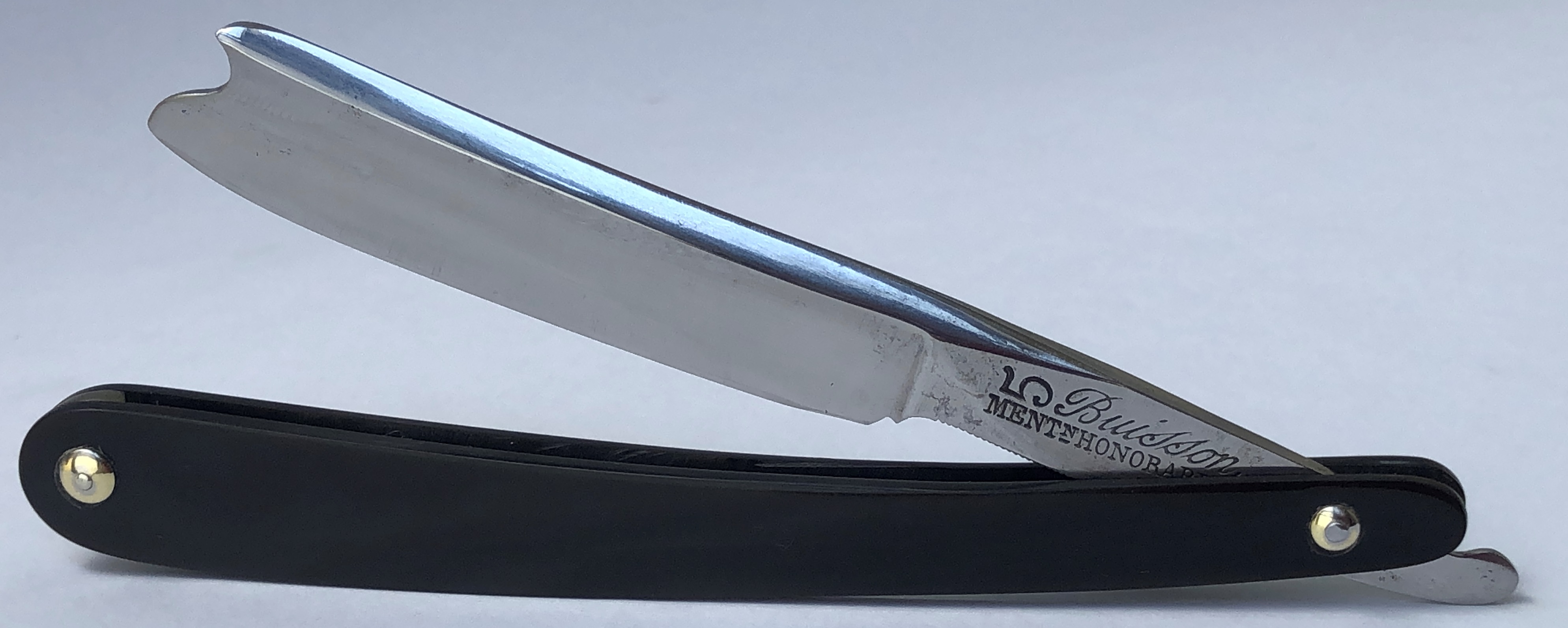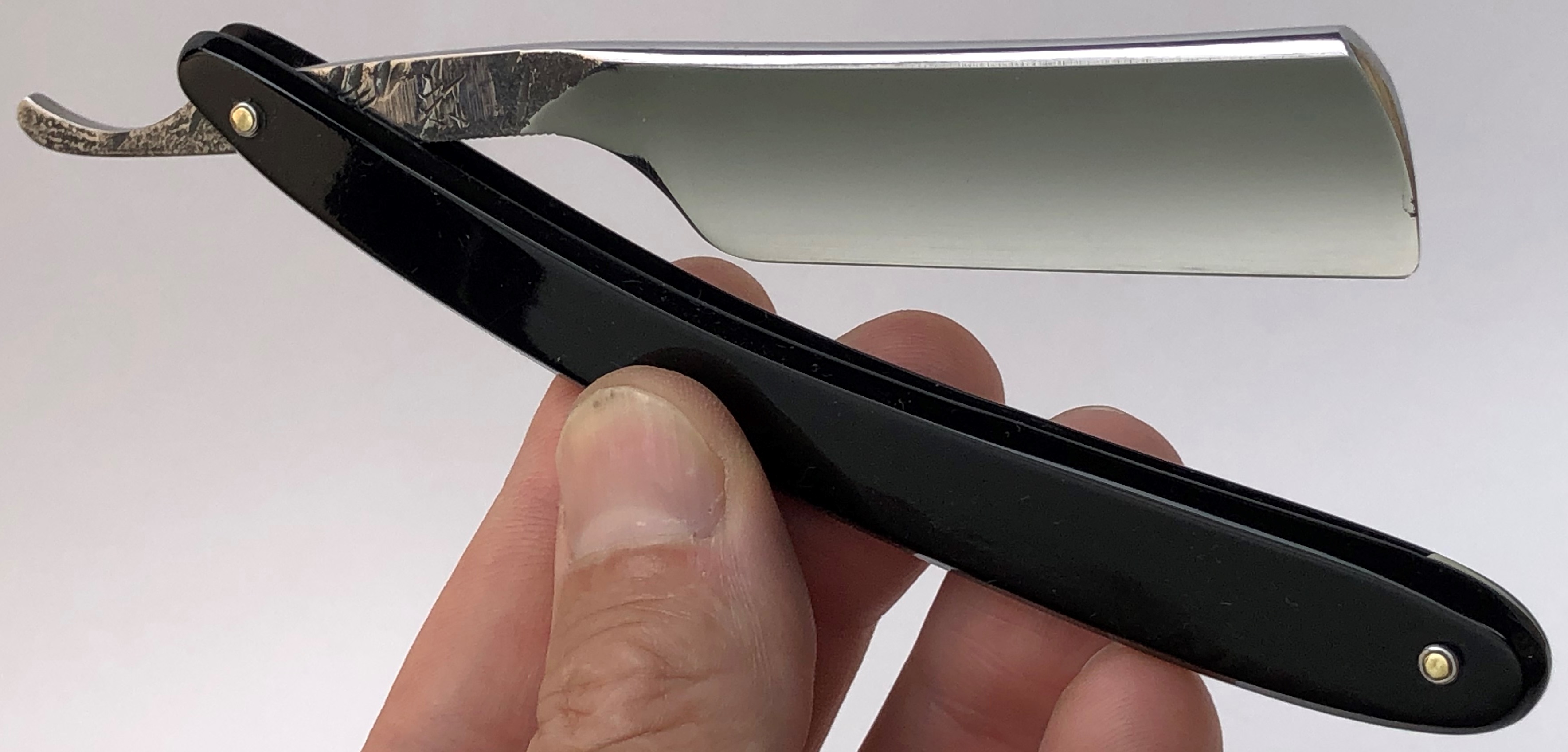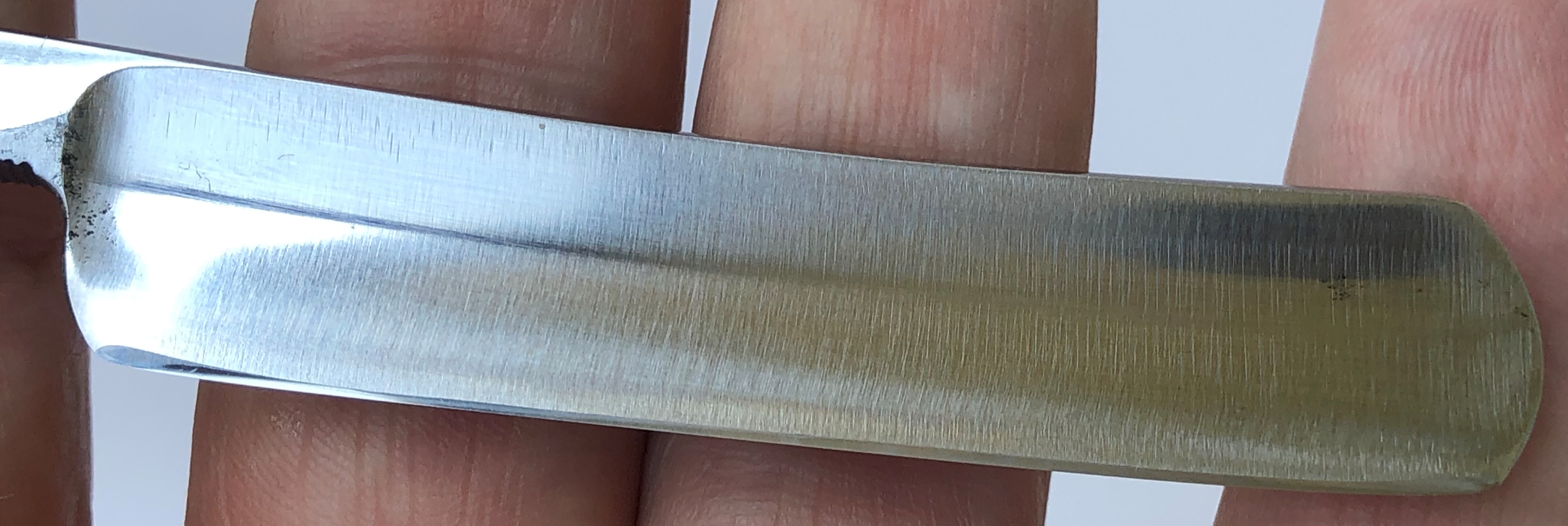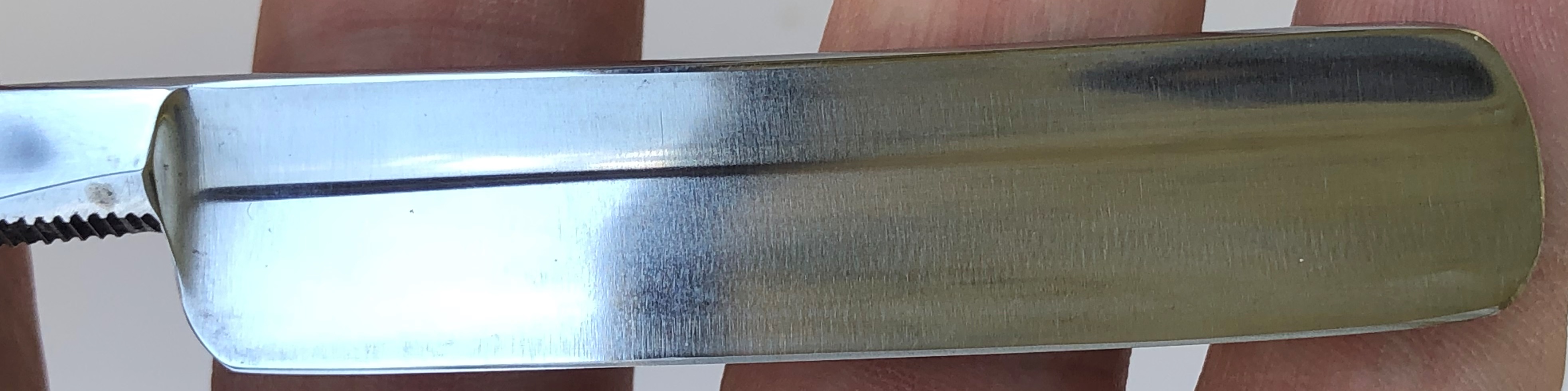 Бритва в очень хорошем состоянии. Реставрация клинка от Frans, новая роговая оправа тоже от него. Мои доработки также присутствуют. Хорошо сохраненная геометрия полотна.Кромочка равномерна по всей длине.Несколько мм у пятки не проточено, чтобы не испортить клинок камнями.Эффектный граненый обушок. В общем и целом красивая французская классика, в отличном и боевом состоянии. Заточена и лично протестирована. Все на очень приличном уровне.