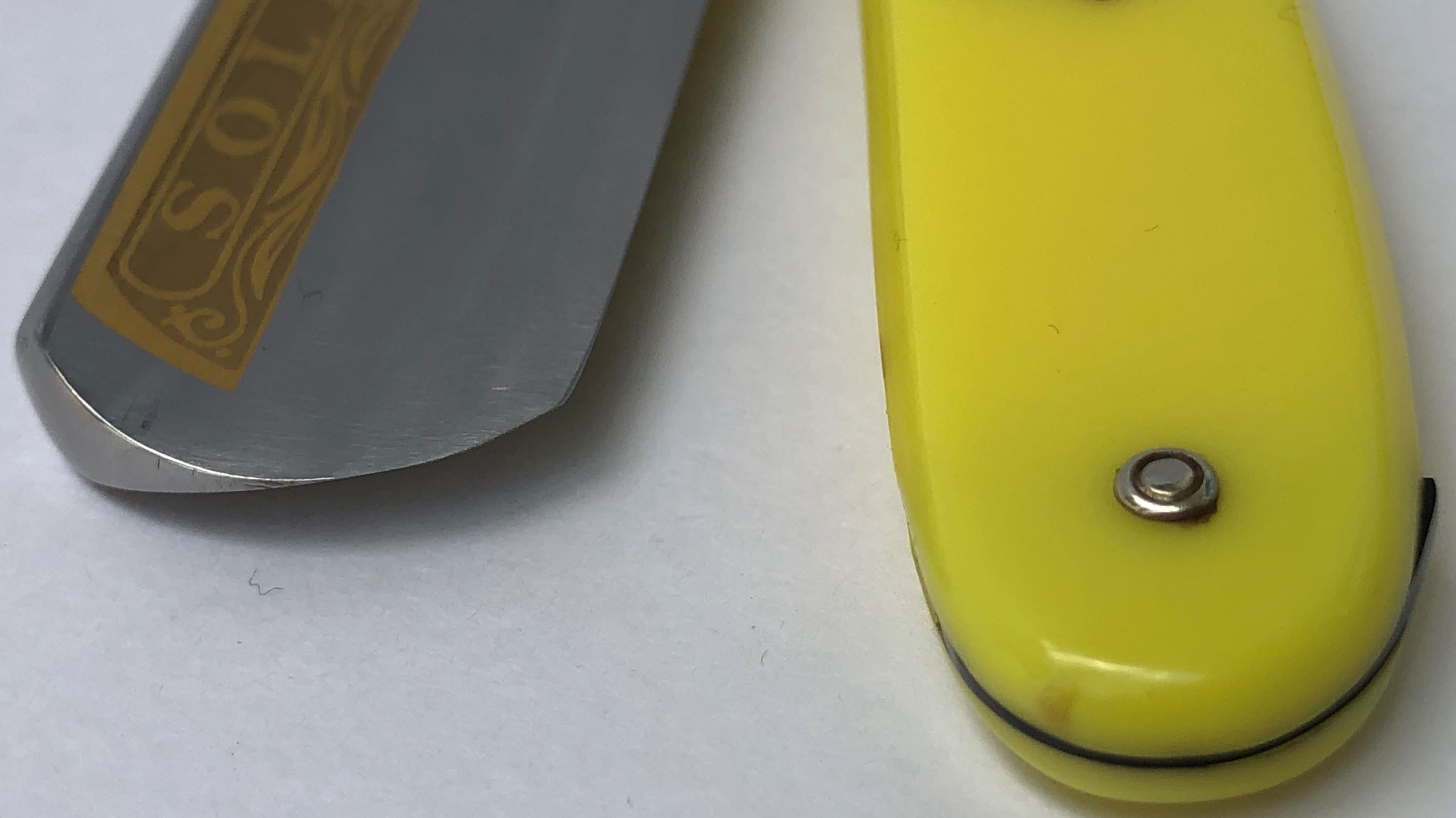 Бритва была разобрана, для добавления внутренних шайб(для надёжности), а также для проклейки небольшой трещинки. Трещина на ручке была намертво заделана и практически незаметна. Оригинальный осевой пин был аккуратно снят и затем заново установлен.Бритва, как будто вчера с завода.Не пропустите редкую бритву в таком состоянии. Идеальна для новичка, в качестве первой, а также в коллекцию.