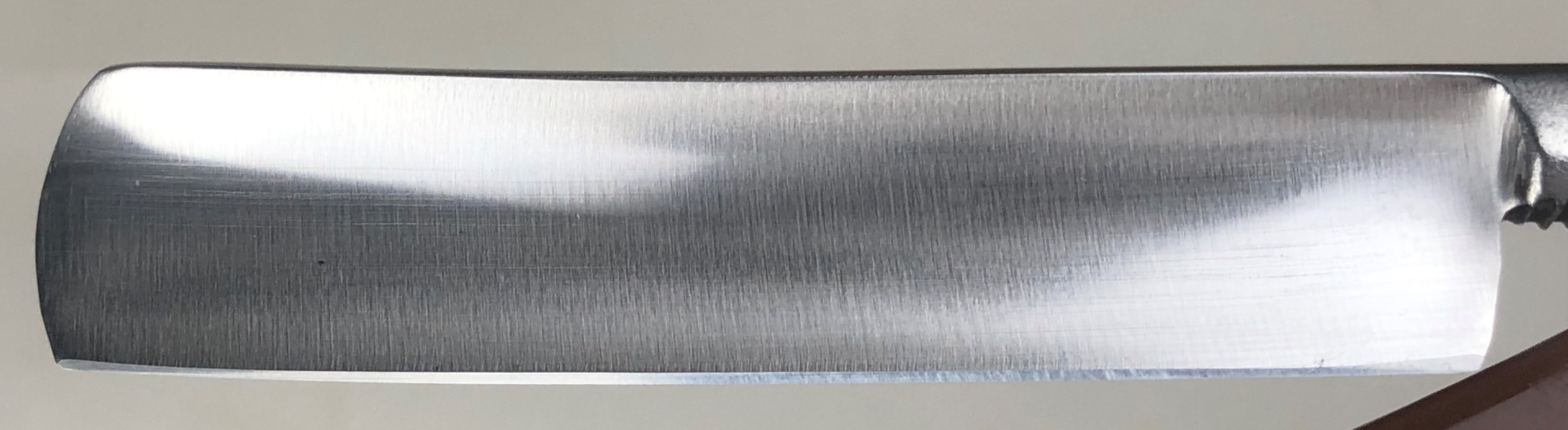 Бритва не разбиралась и не ремонтировалась.Без следов пользования. Оригинальная шлифовка. Полирнул немного, для восстановления былого блеска.Сталь чистая, без дефектов. Идеальная геометрия полотна.Заточена и готова к бритью. Совершенно бюджетный вариант для новичка.