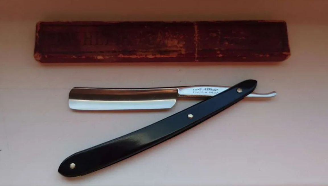Производитель: Heljestrand, C. V. Швеция, г. Эскильстуна Углеродистая сталь, ширина 4/8 (15 мм), вогнутость 1/2. Ручка из целлулоида, черная, с тремя заклепками. Бритва заточена и готова к бритью. Состояние бритвы на фото, какие-либо следы времени отсутствуют. В комплекте имеется оригинальный картонный пенал. ПРОДАНО 11) C. V. Heljestrand, MK №7, 4/8 Show