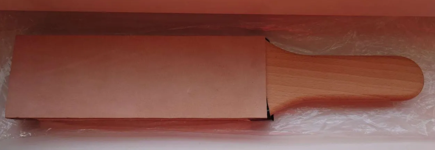 Производитель: Kanayama Razor Strop Co. Япония, г. Токио. Японский ремень для правки опасных бритв, на деревянном основании. Лицевая сторона из кордована, обратная сторона из замши для предварительной правки. Под лицевой частью имеется амортизирующая мягкая подложка. Ремень новый, в использовании не был. ПРОДАНО 12) Kanayama Show