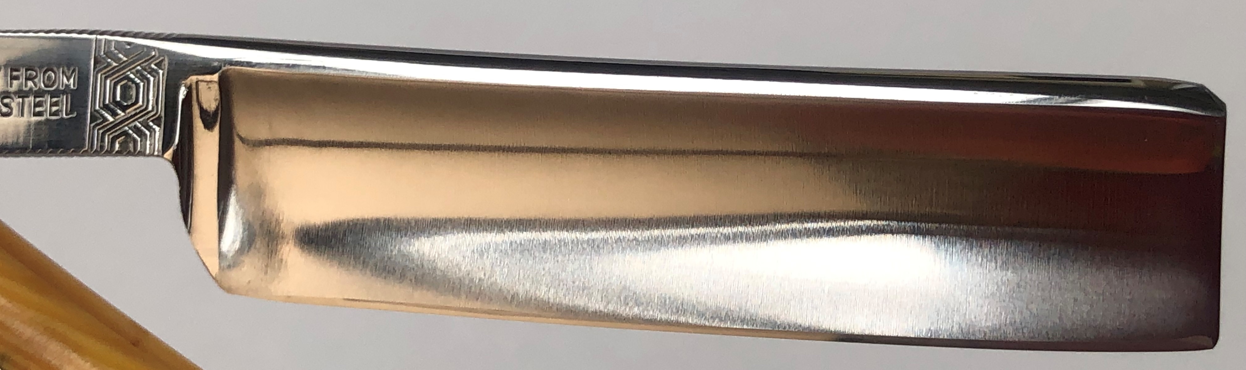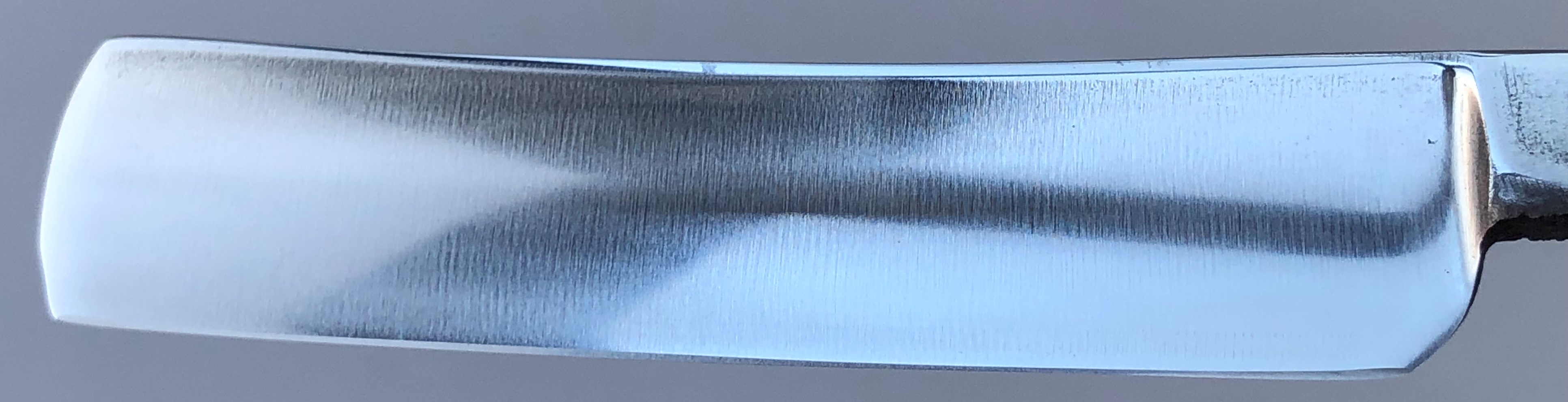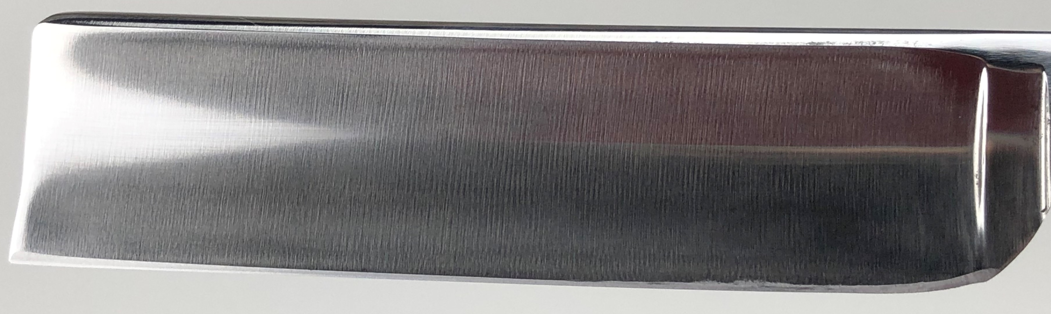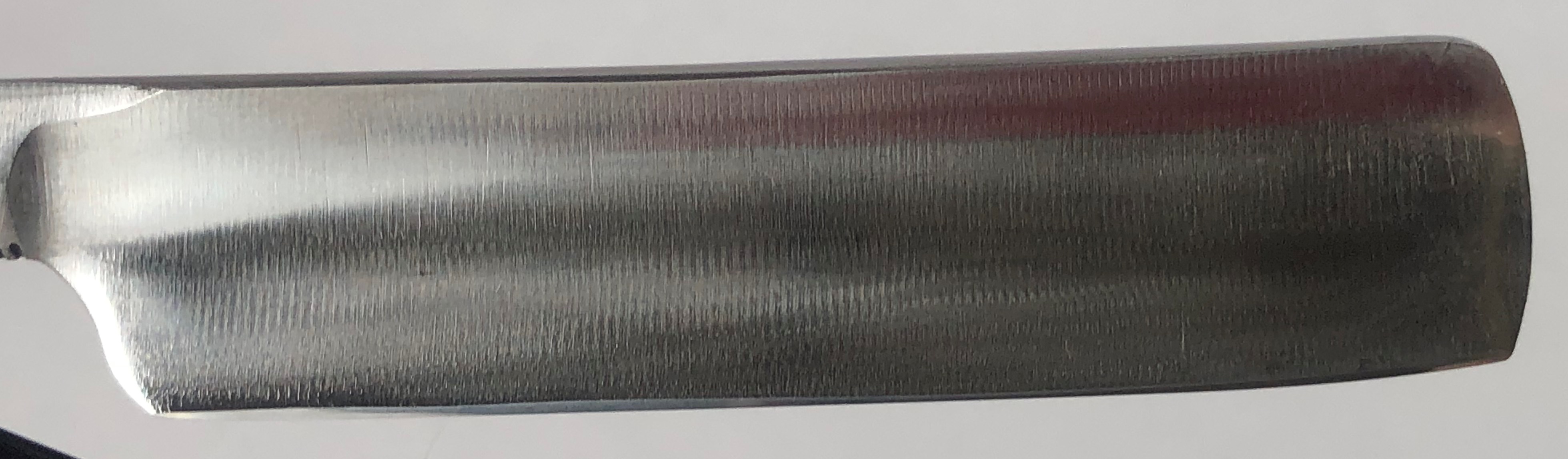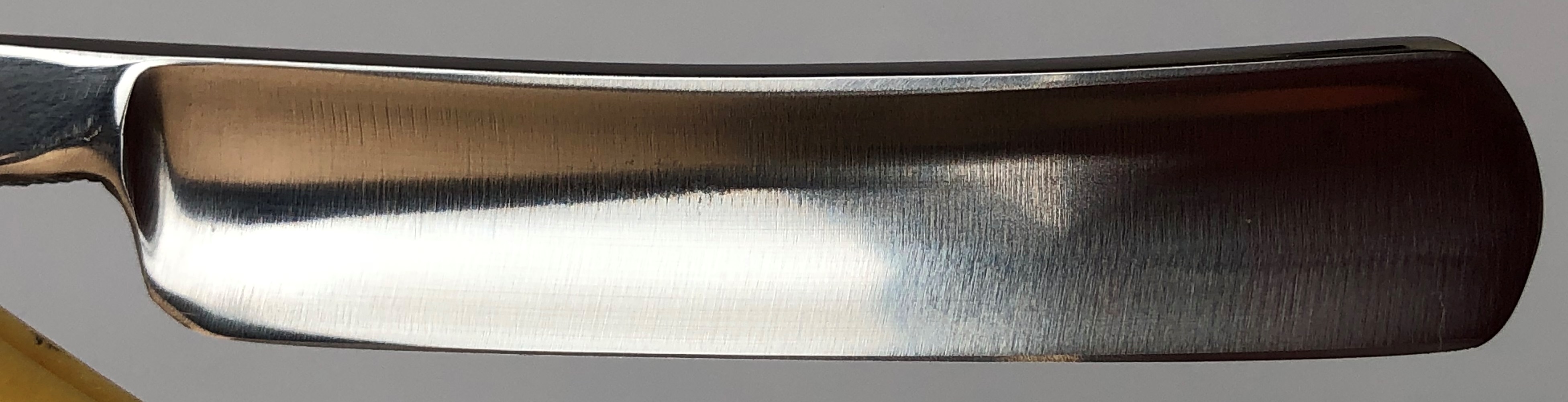 Бритва не разбиралась и не ремонтировалась. Все в оригинале. Заводская заточка была переделана под нормальное бритье.За исключением небольшого и малозначительного окисления с одной стороны полотно, все чисто, без дефектов. Геометрия приближена к идеальной.