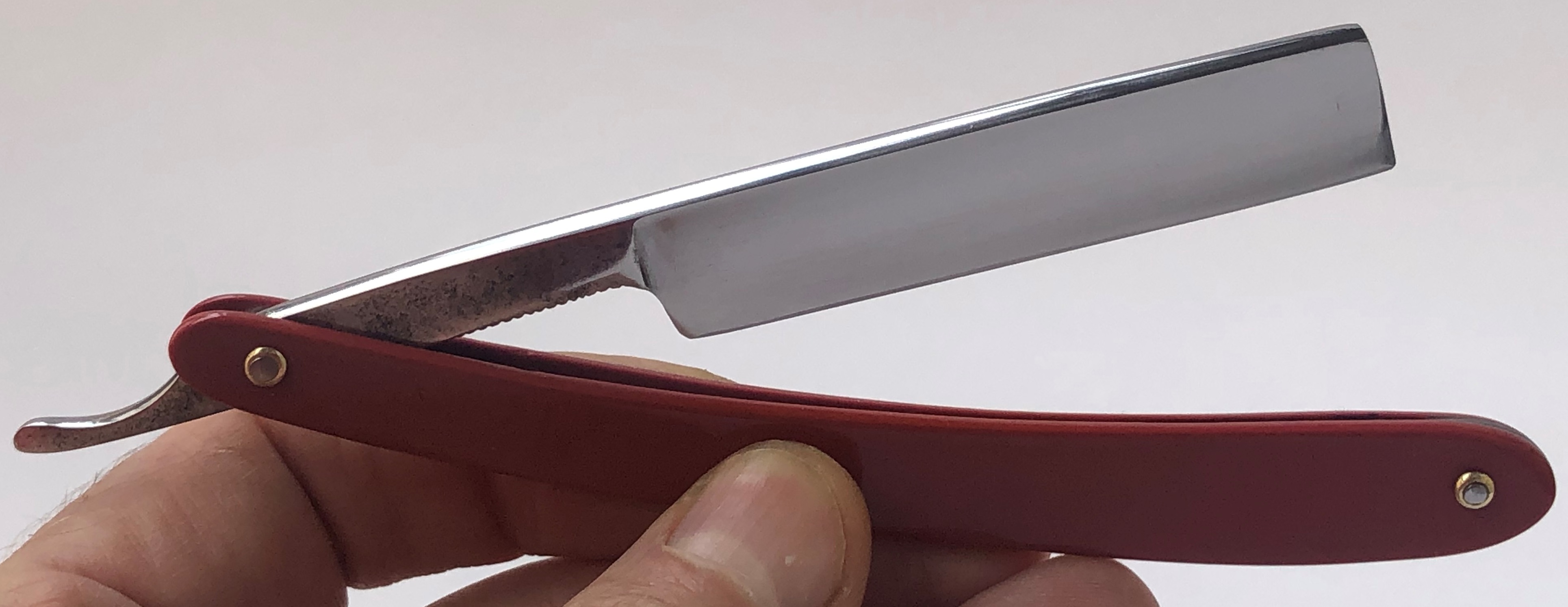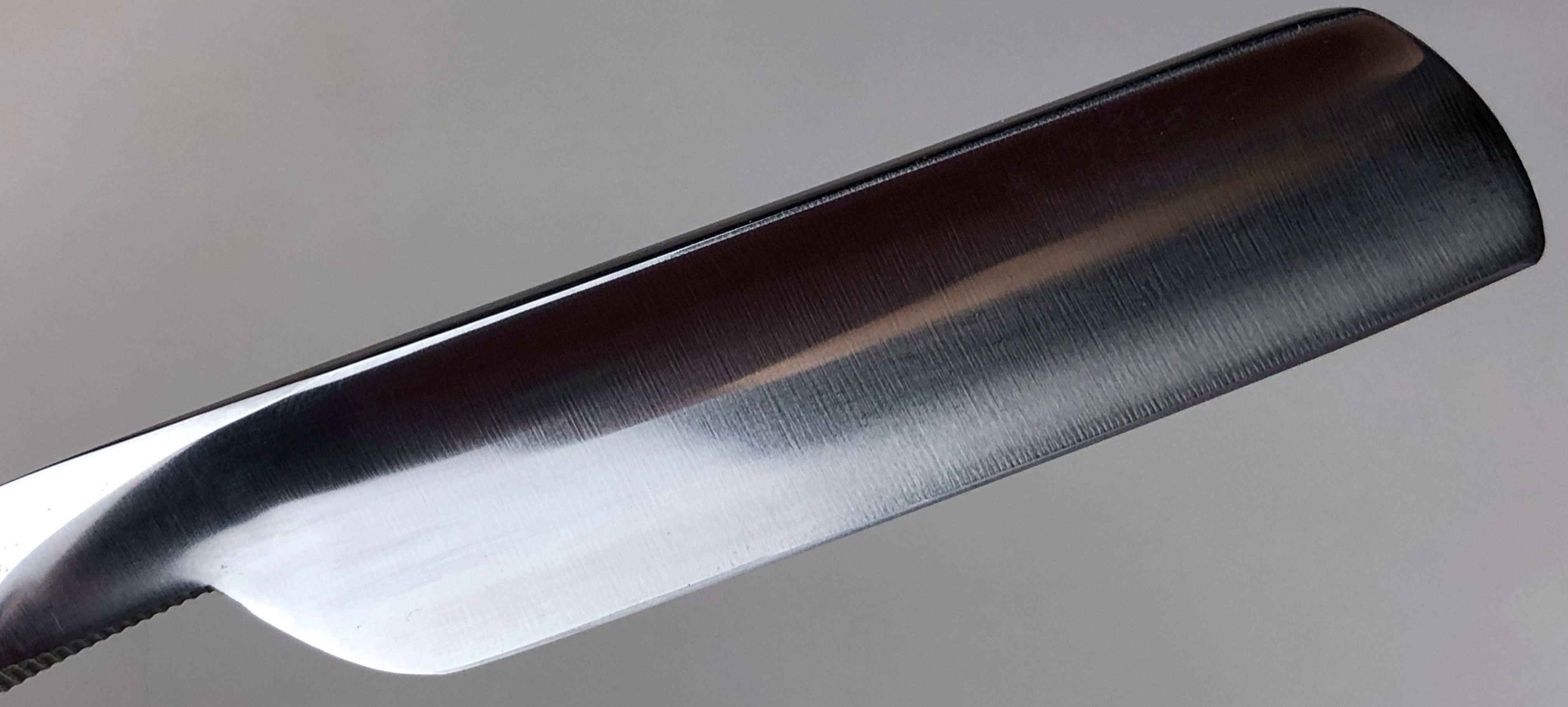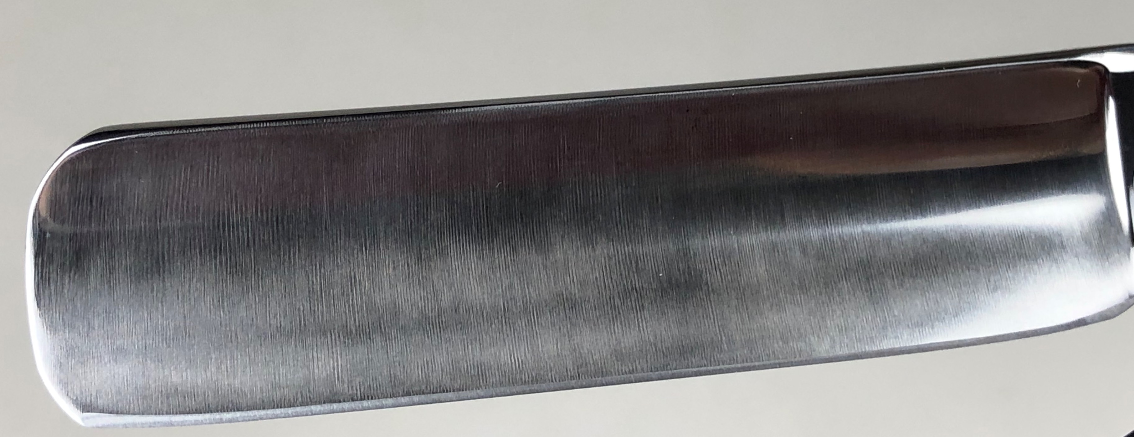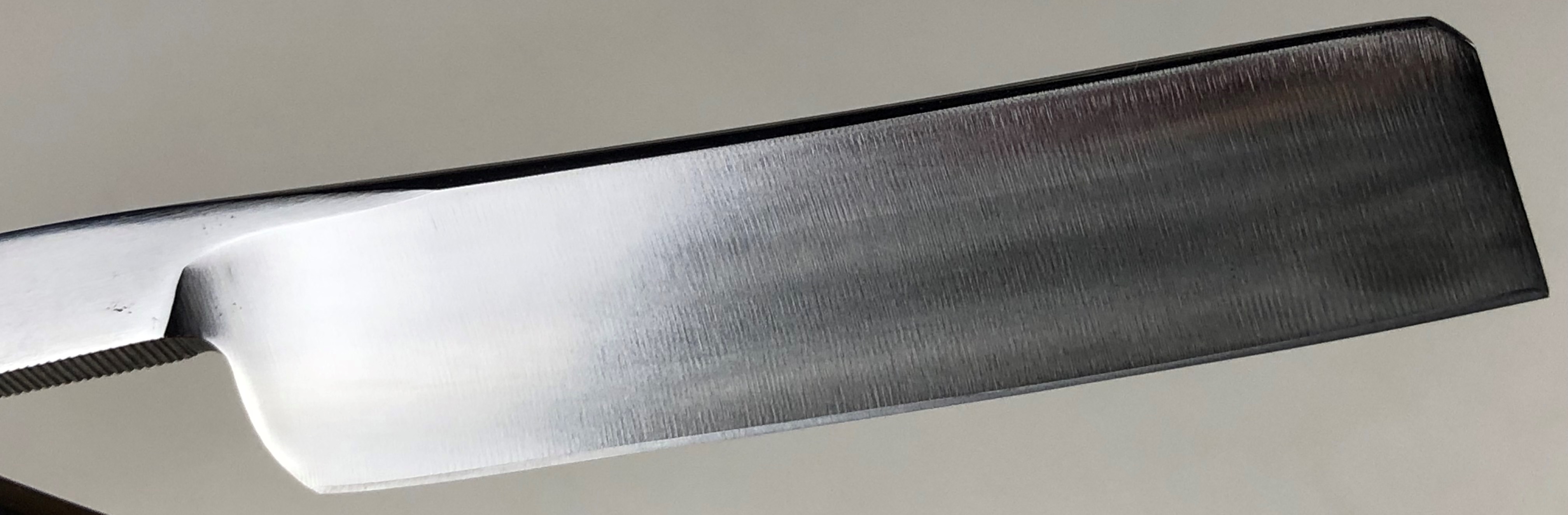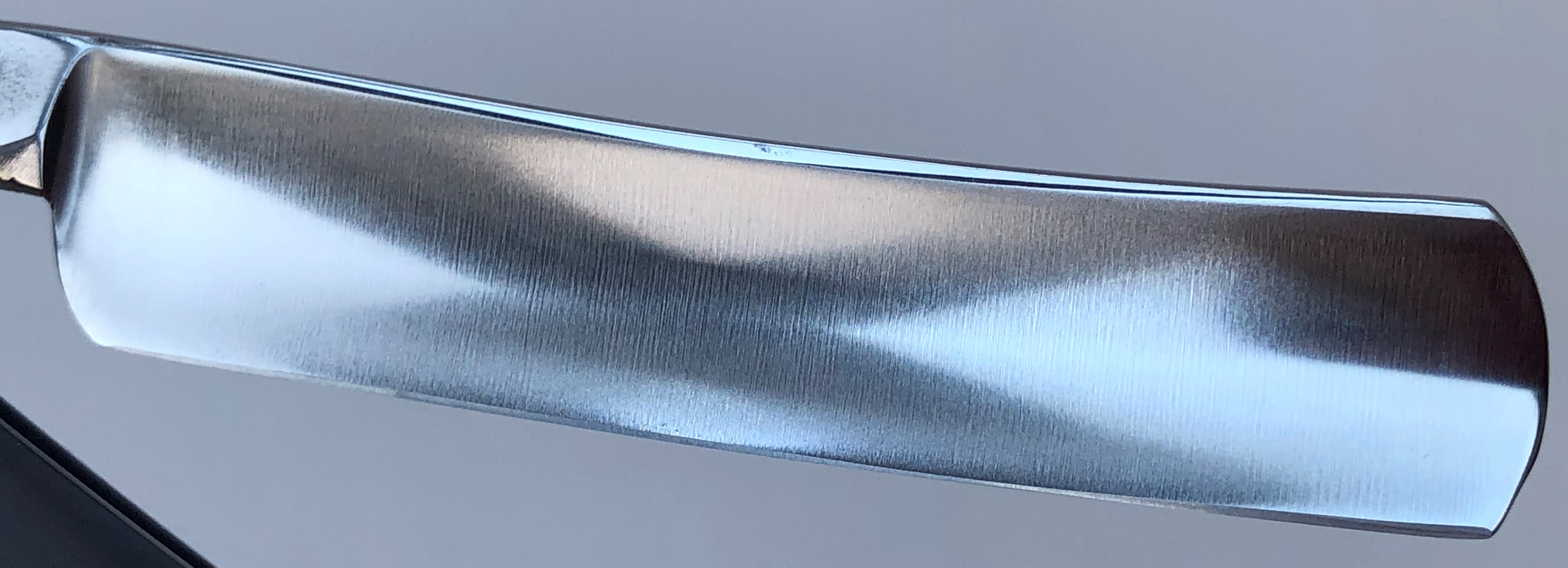 Бритва не разбиралась и не ремонтировалась. Все в оригинале. Заводская заточка была переделана под нормальное бритье.За исключением небольшого и малозначительного окисления с одной стороны полотно, все чисто, без дефектов. Геометрия приближена к идеальной.