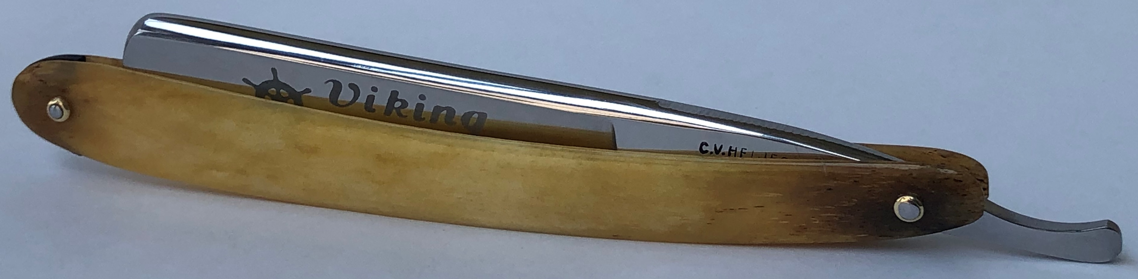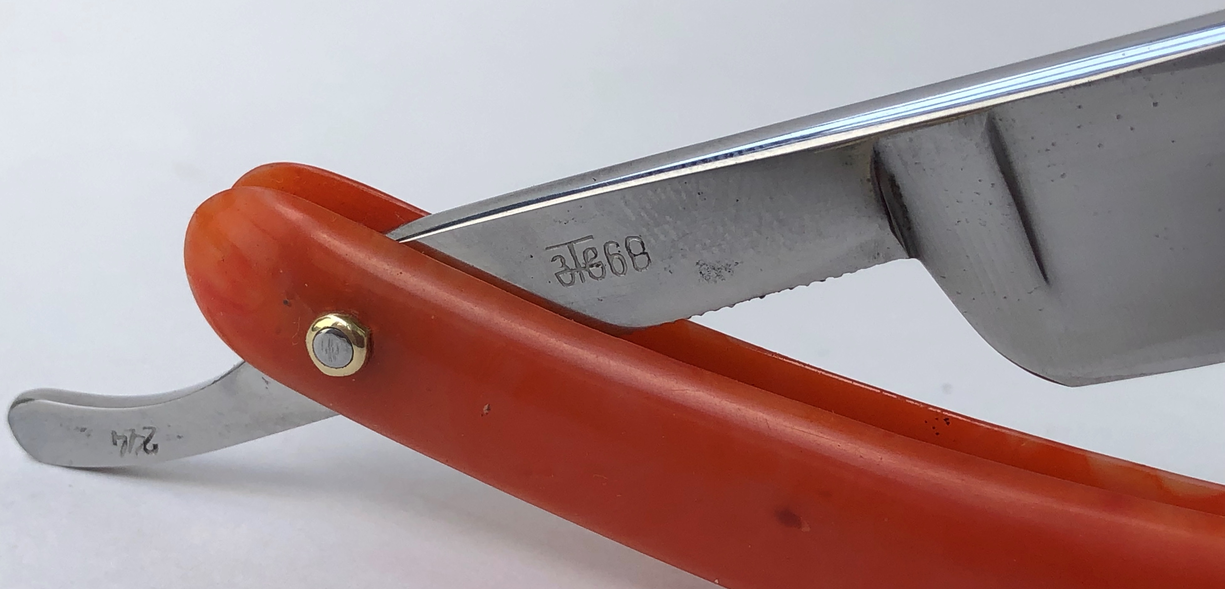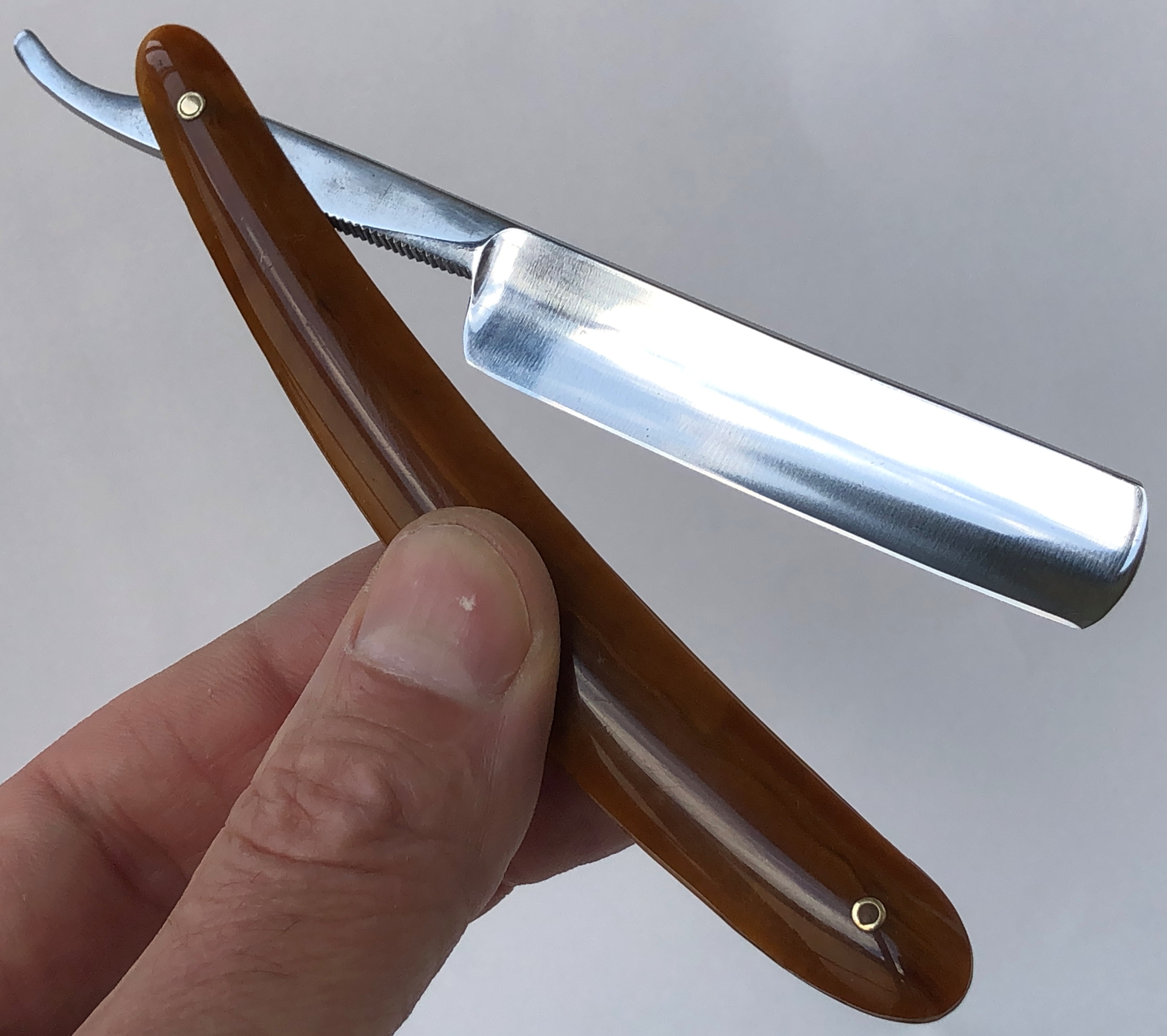 Довольно редко встречающаяся модель бритвы.Хочу обратить внимание, что форма лезвия является оригинальной, а не следствие каких то работ.(За 13 лет попадается третья и везде форма клинка была такая же).Если мне не изменяет память, то это единственная модель Хенка, с таким "гранёным" обушком.